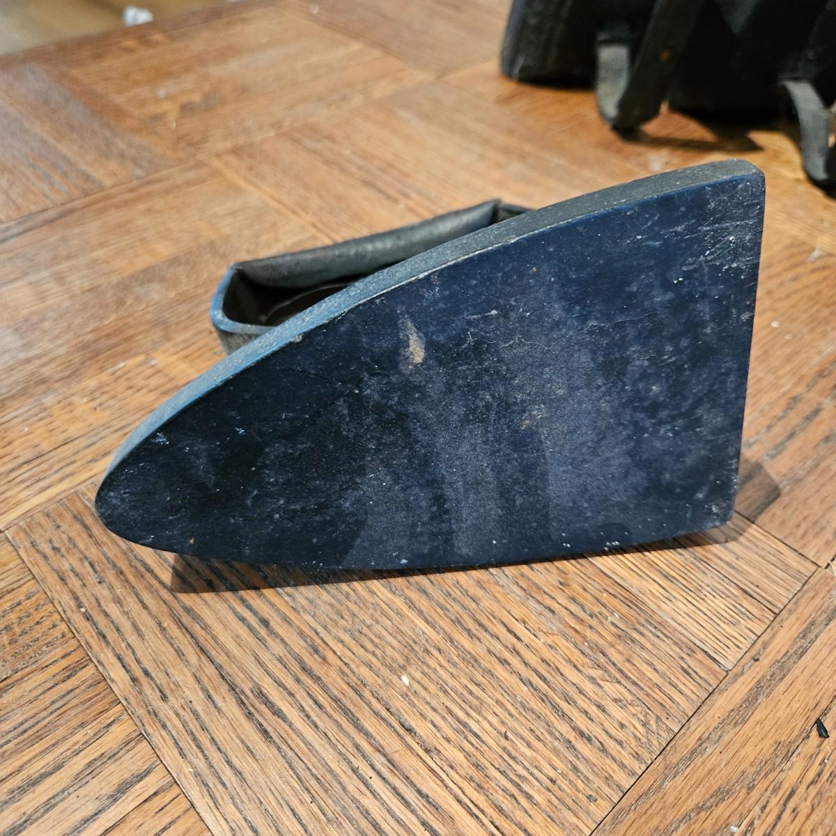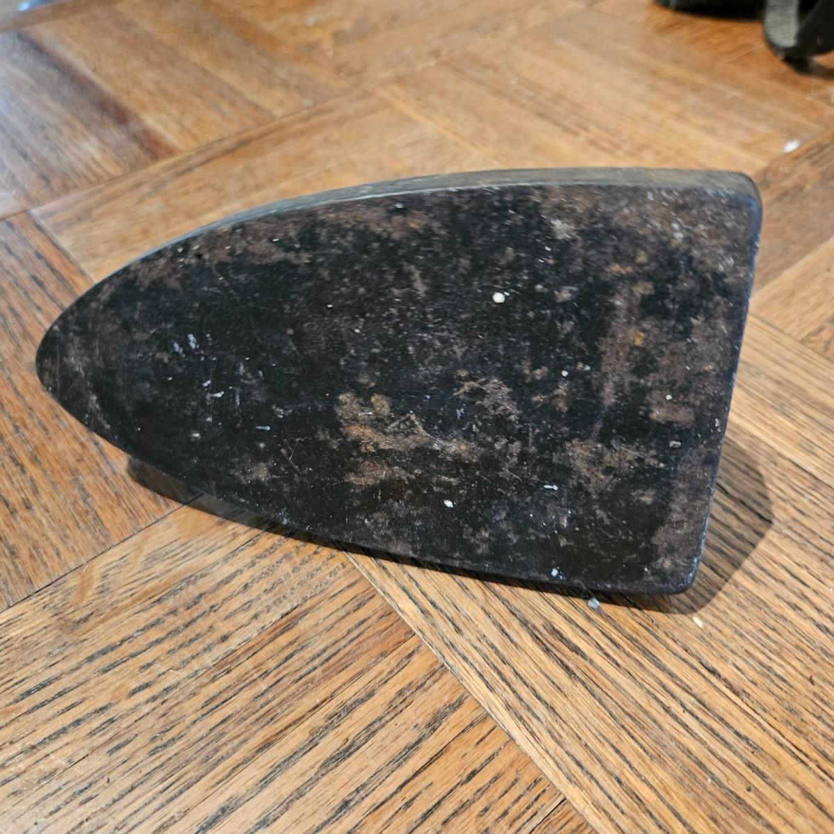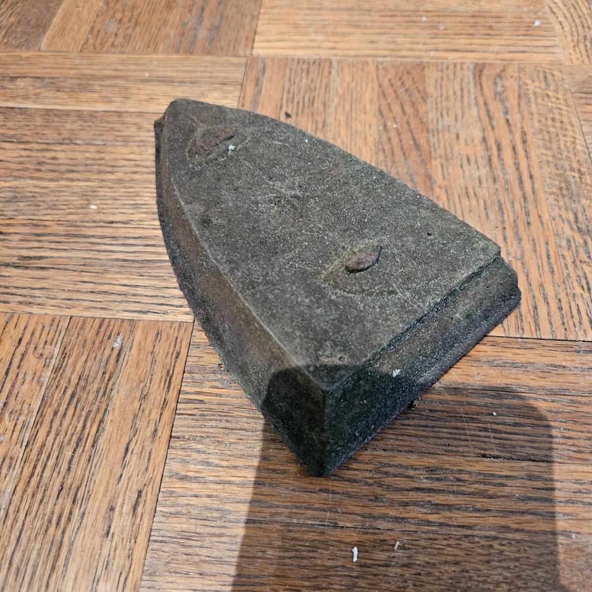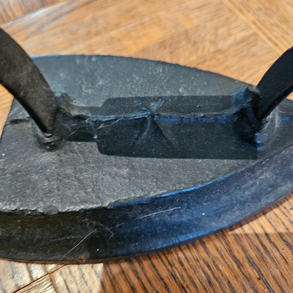 A collection of seven sadirons that appear to be cast iron. One is missing its handle and some are showing rust. They measure approximately 6.5" x 4" x 5"H. Please see photos for details. Local pickup only