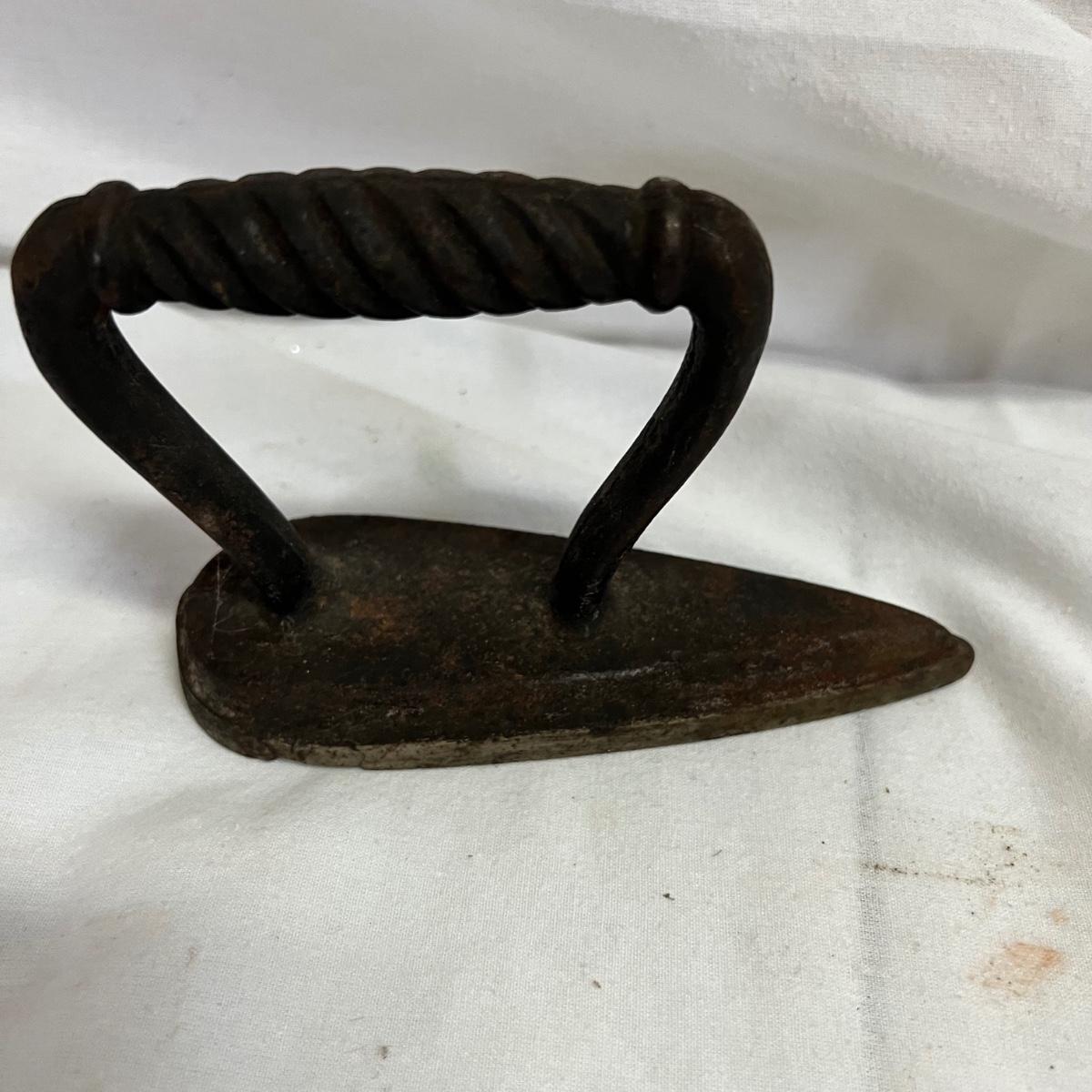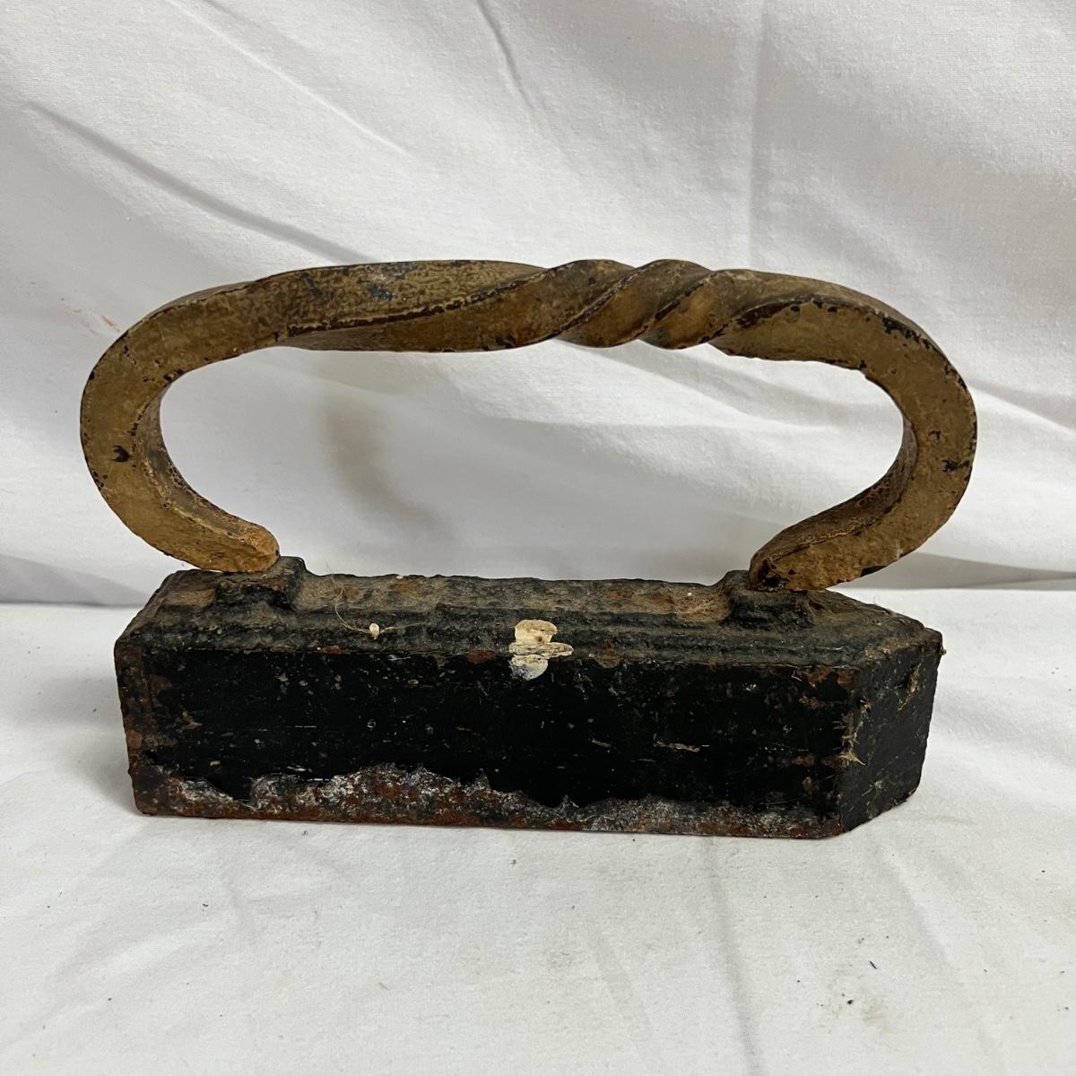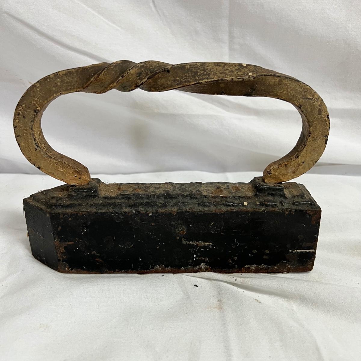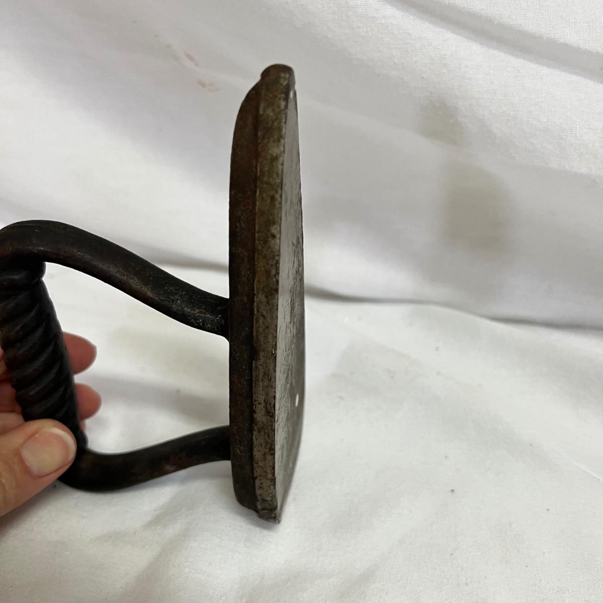 Three sadirons. The red one measures approximately 3.5” x 4.5” x 5.5”H.