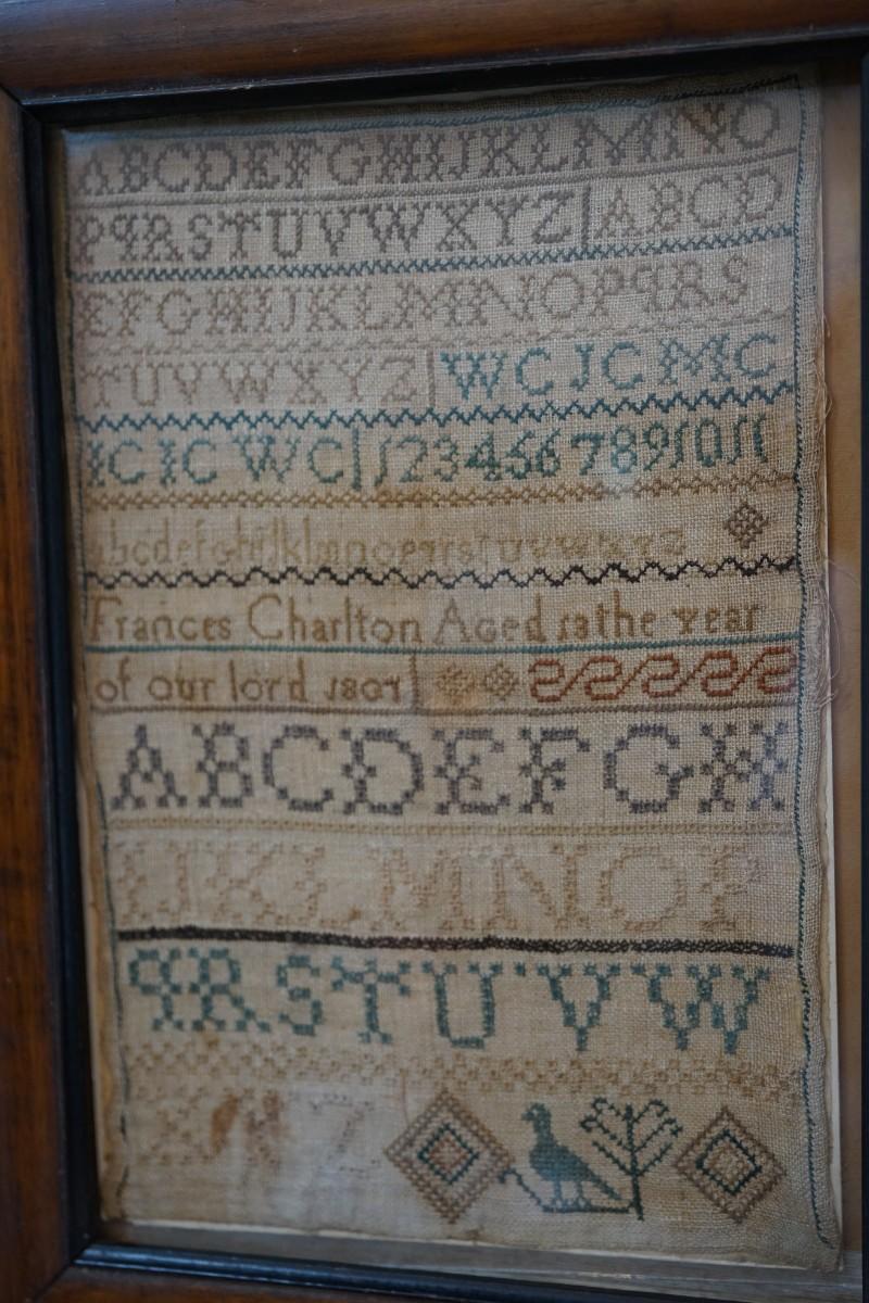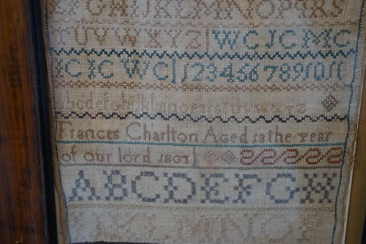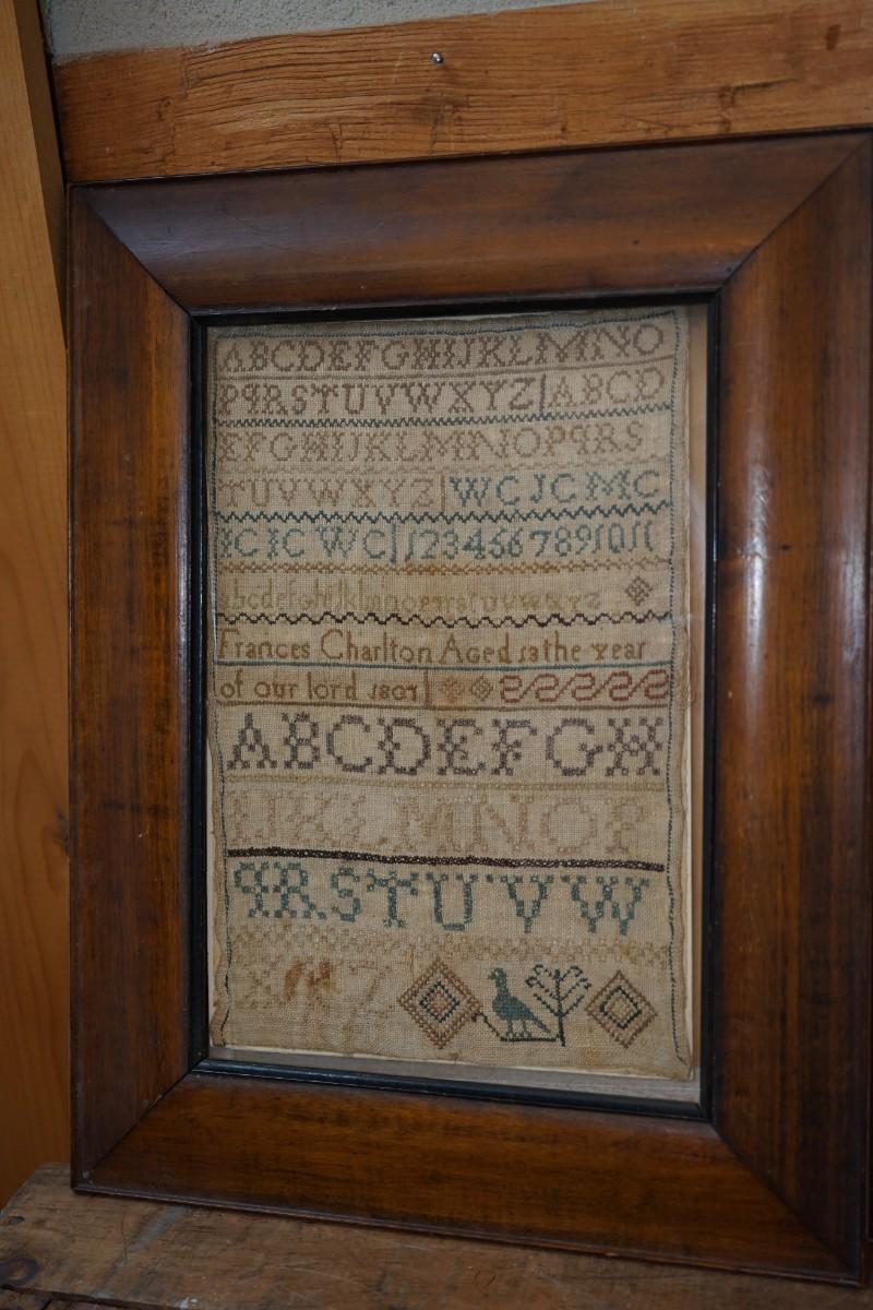 ANTIQUE SAMPLER DATED 1807 FRANCIS CARLTON ALPHABET IN ANTIQUE FRAME
