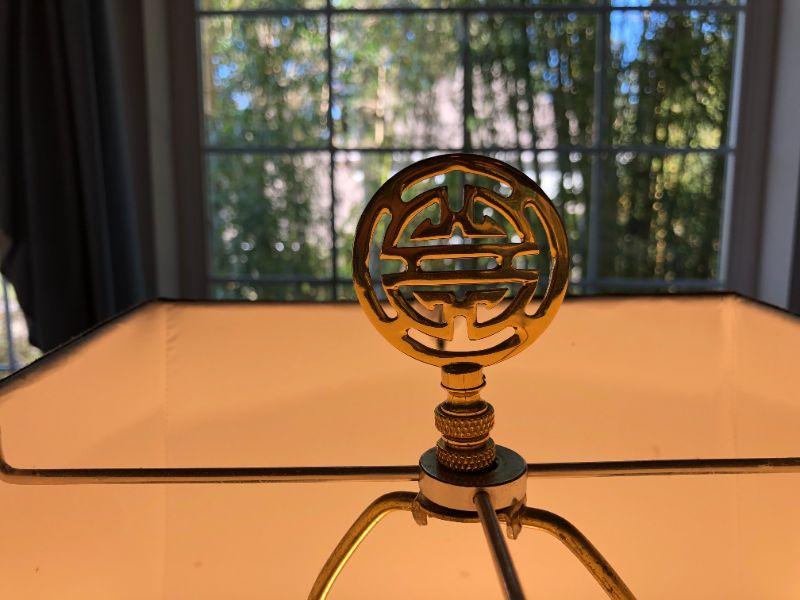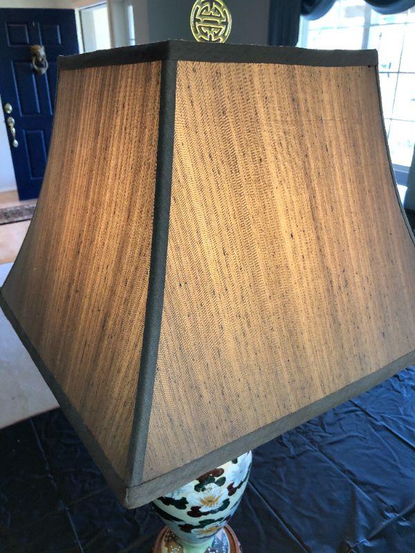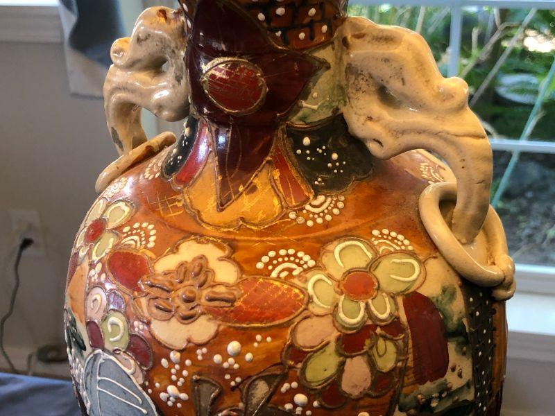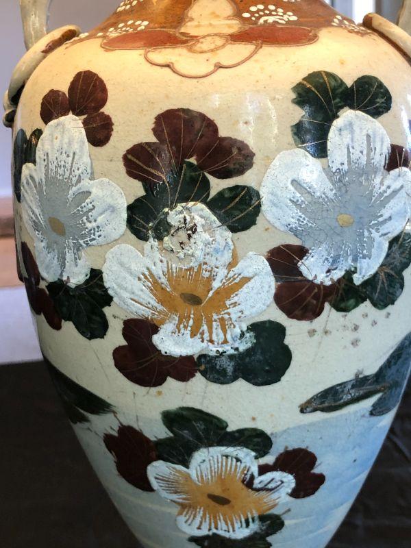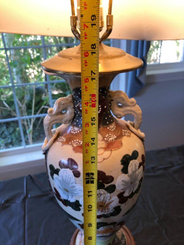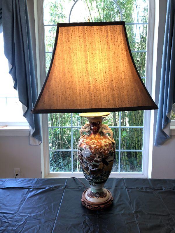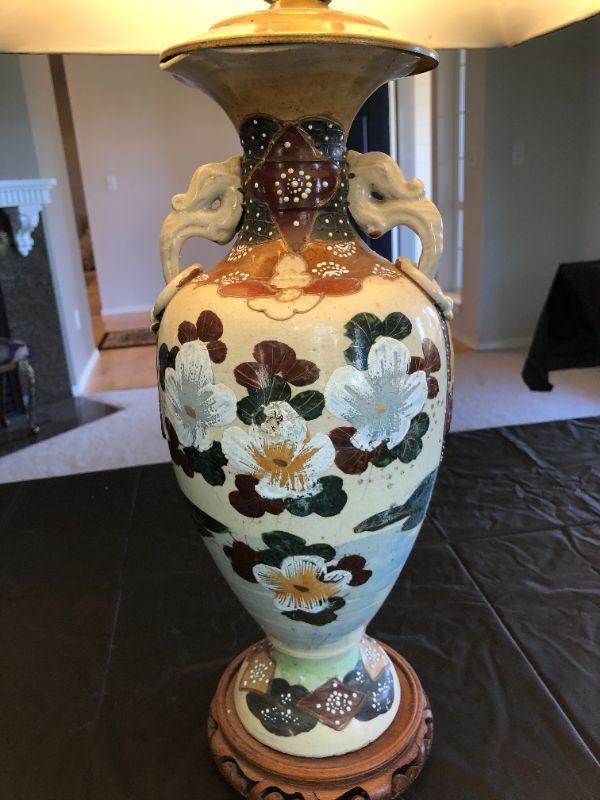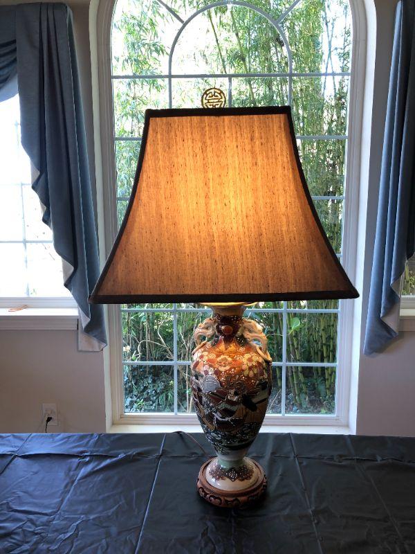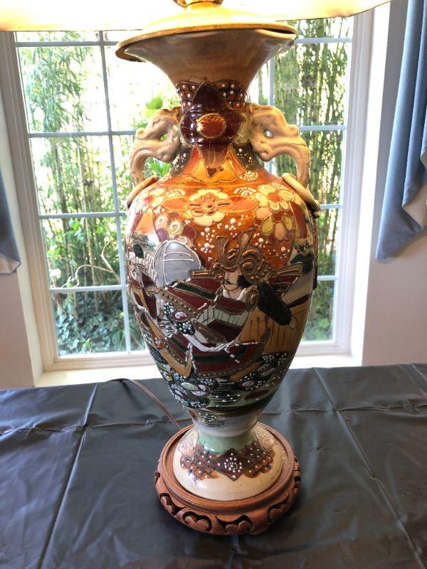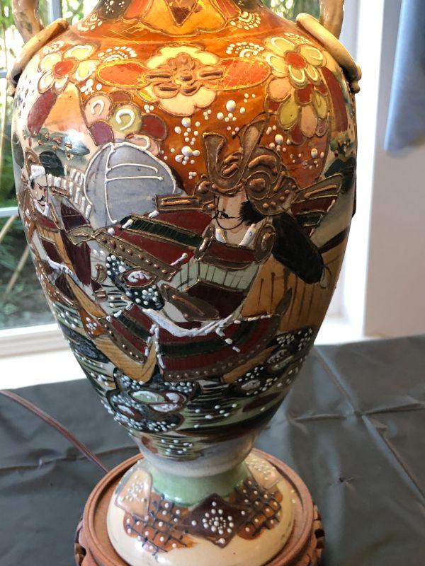 Antique Satsuma Lamp with Warrior and Flower Details Depicting War and Peace
