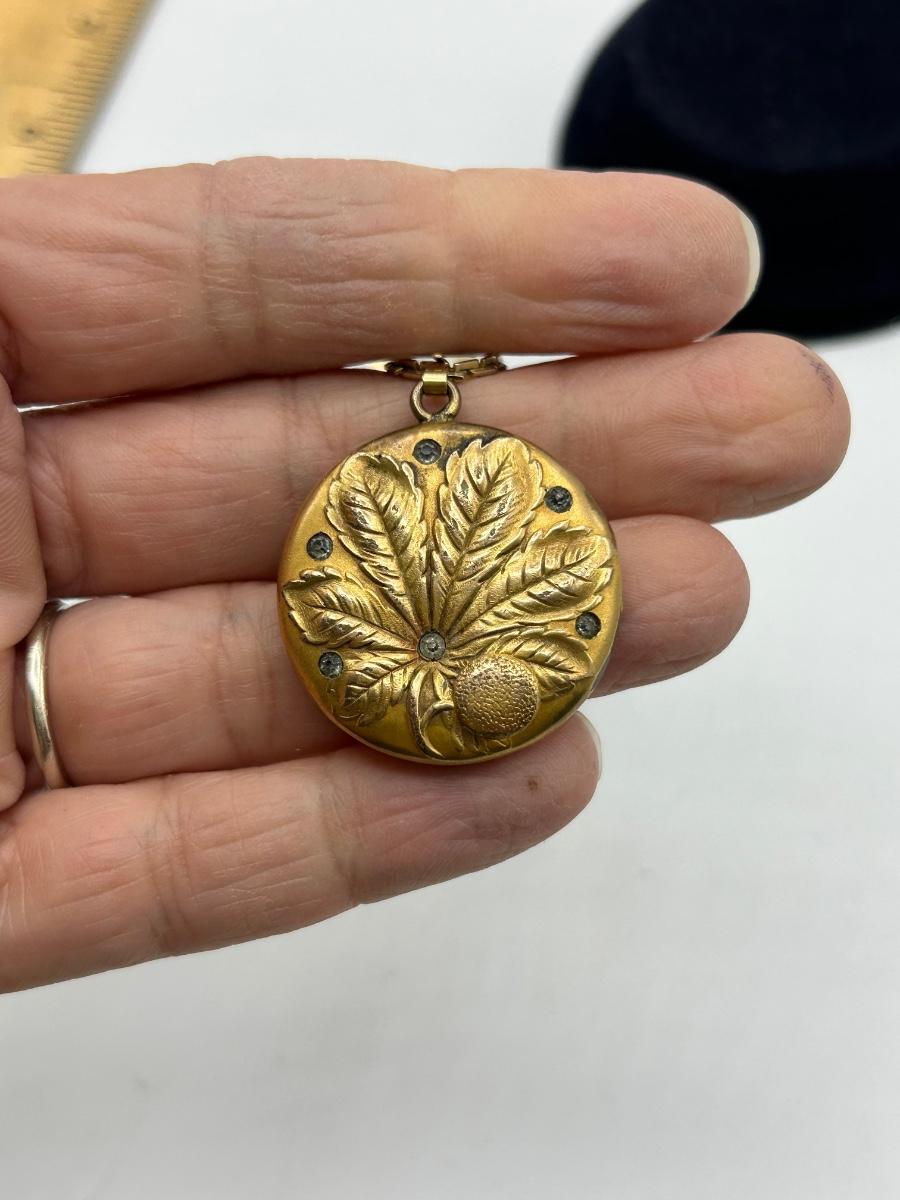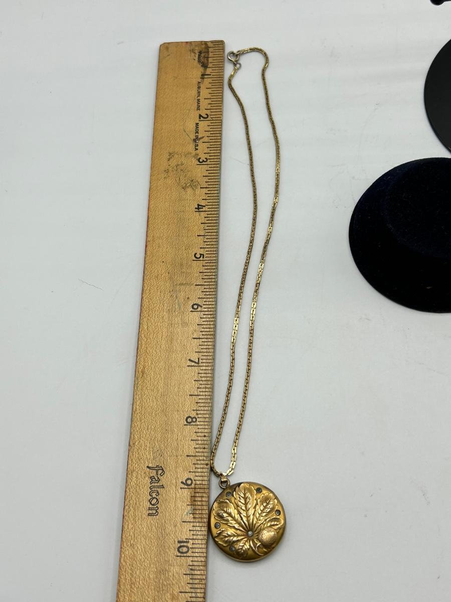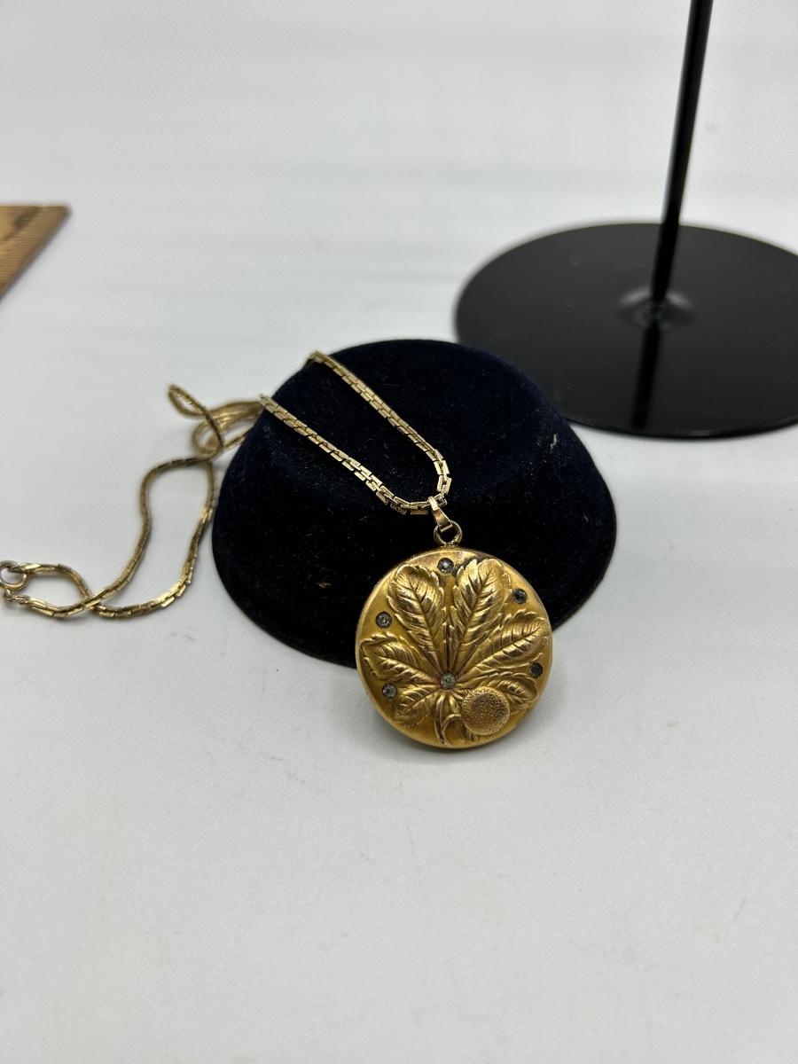 Antique S&BL Art Nouveau Gold Tone Locket with Rhinestones Pendant Charm Necklace