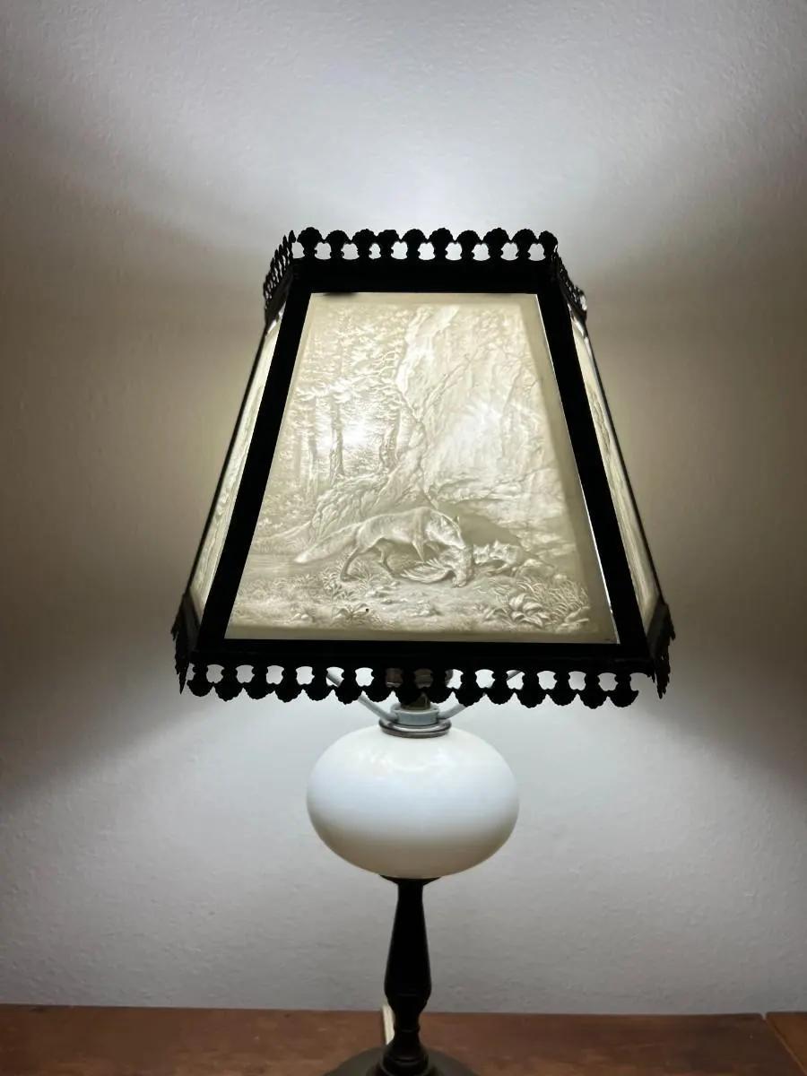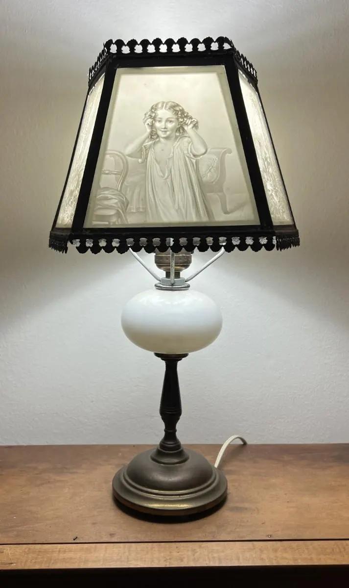 Antique Scarce Small Lithophane Slag Glass Lamp c1870's in VG Preowned Condition as Pictured. $20.00 DOMESTIC SHIPPING.
