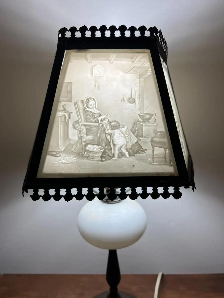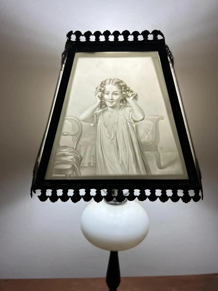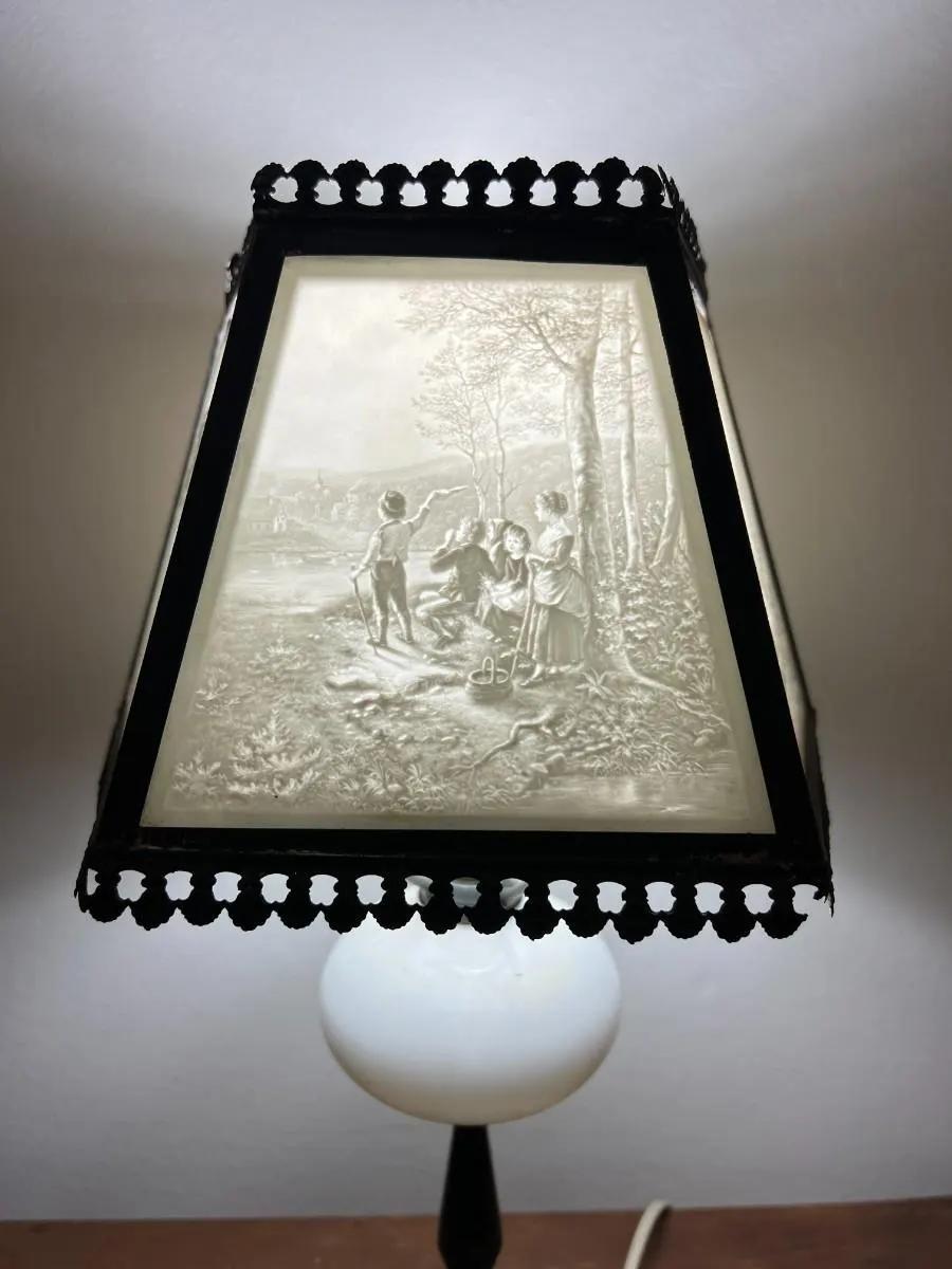 Antique Scarce Small Lithophane Slag Glass Lamp c1870's in VG Preowned Condition as Pictured.