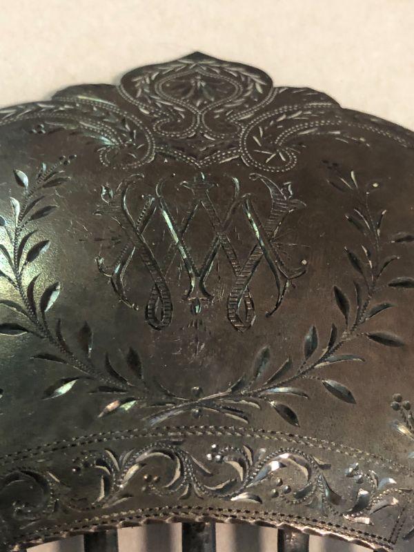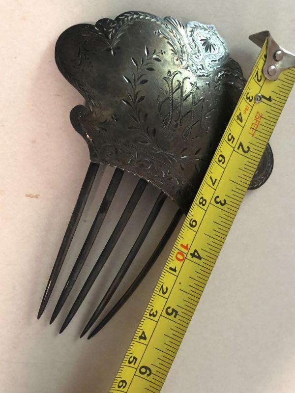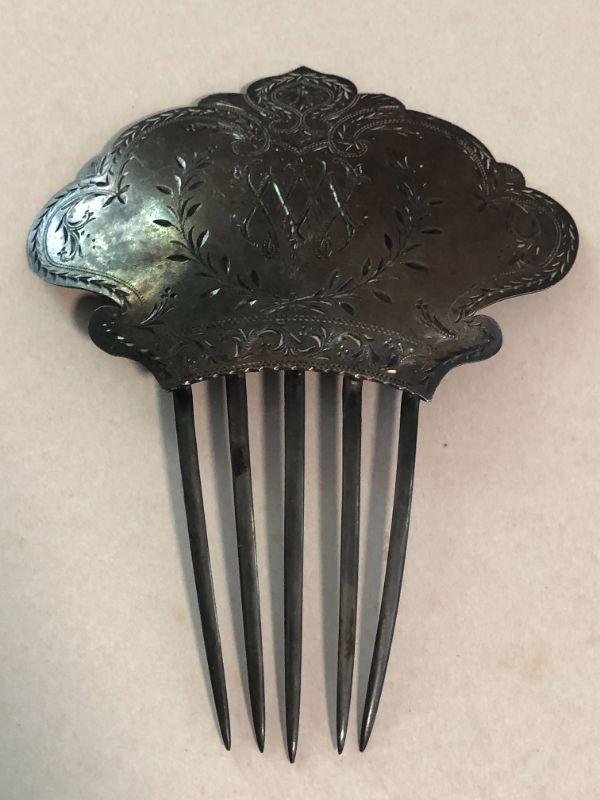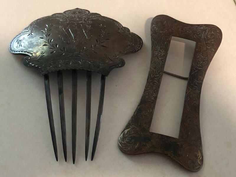Antique Scarf Pin and Silver Plated Hair Comb 1878