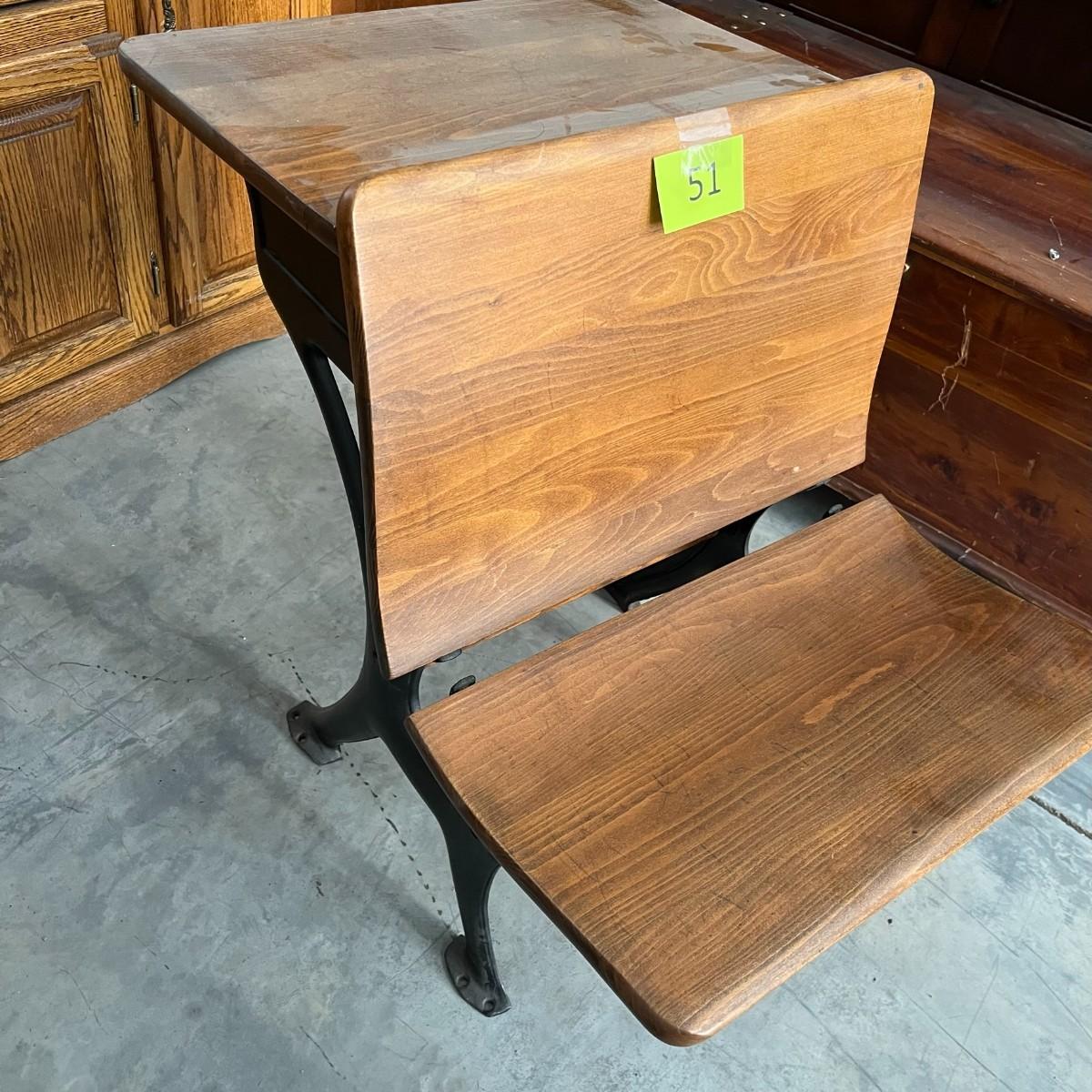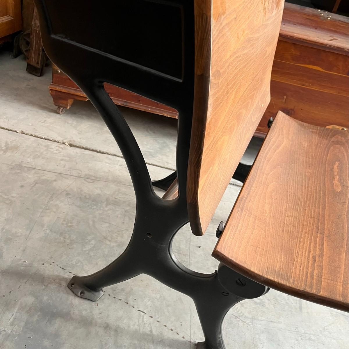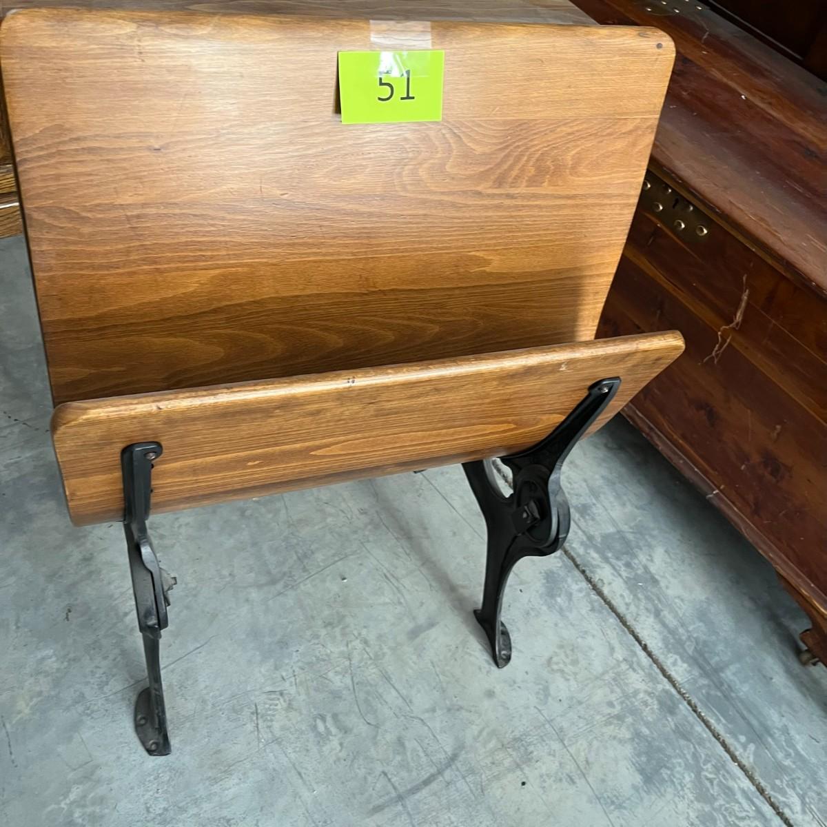 Antique School Desk Cast Iron Wood Seat folds