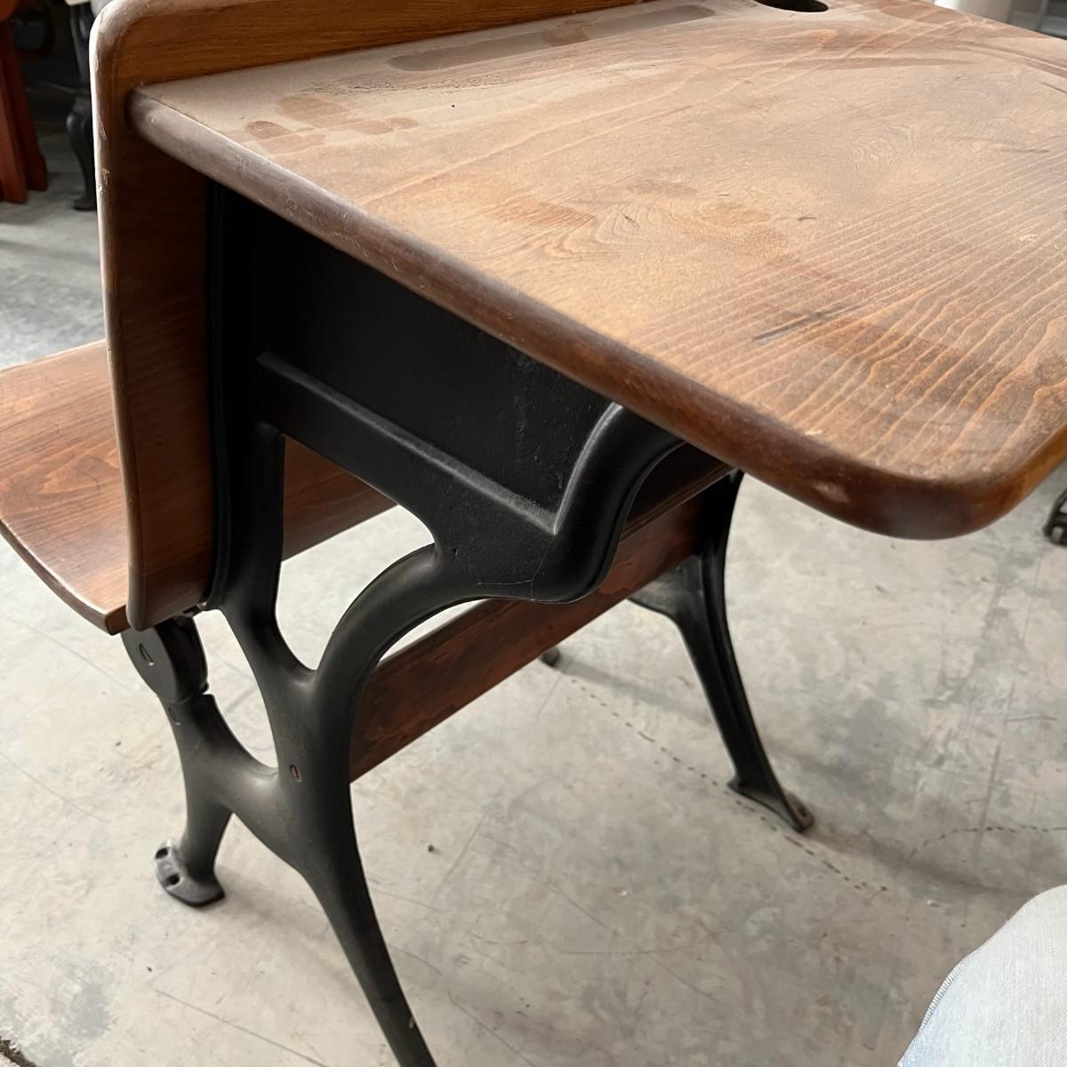Antique School Desk Cast Iron Wood