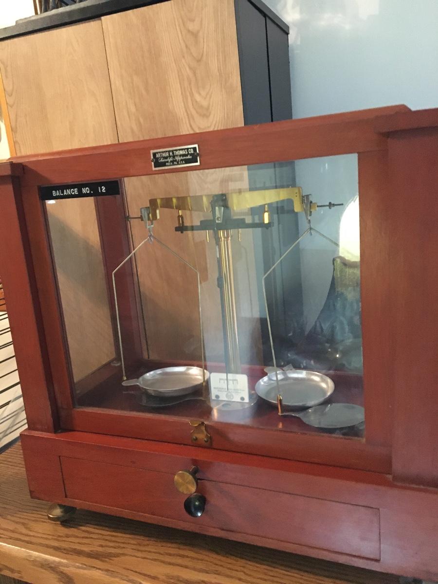 Antique Scientific Pharmacy Scale Complete with weights.