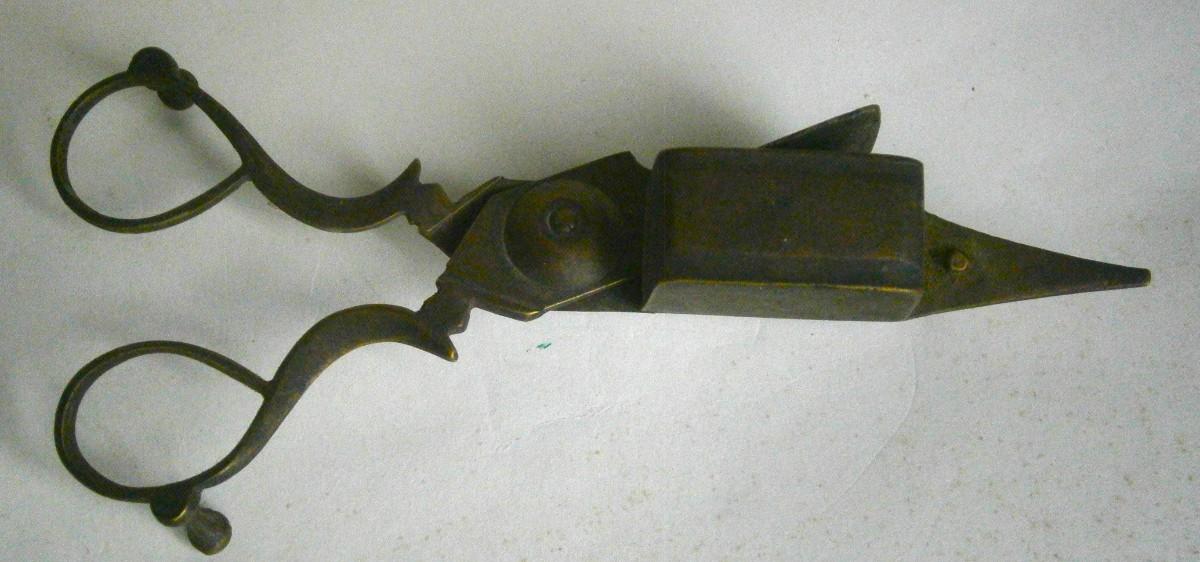 Antique Scissor Candle Snuffer, 6 in. long, cast brass, good old timer.