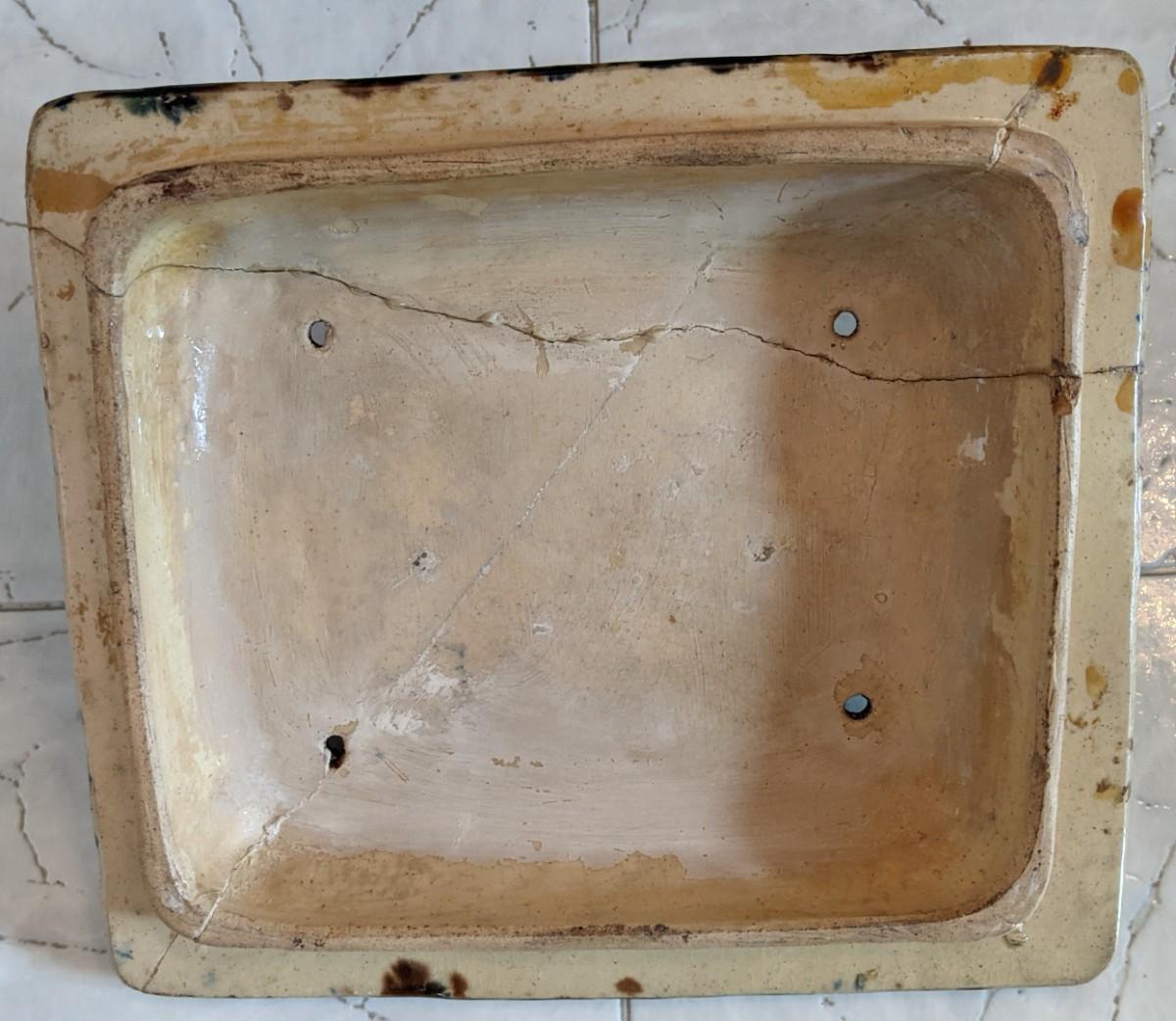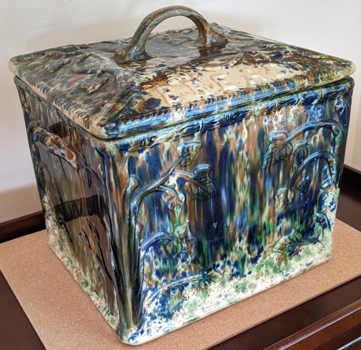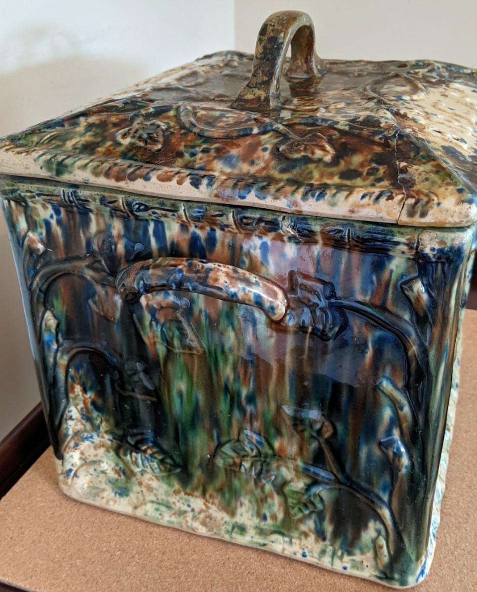 Antique Scottish majolica Yellow ware bread box ,“˜bread safe’ or larder box