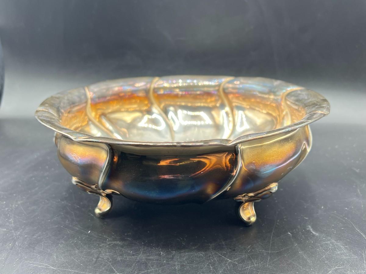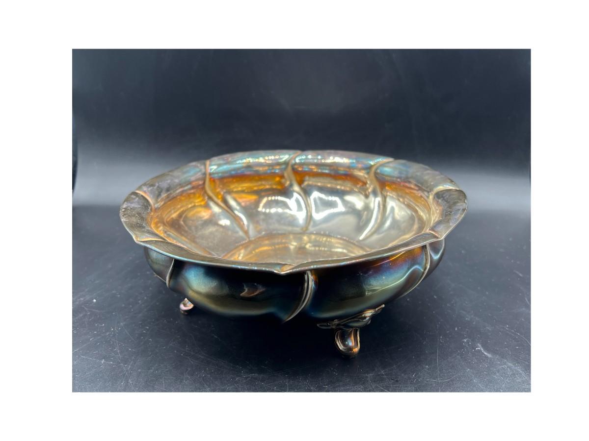 Antique Scottish Rampant Lion Hallmarked Sterling Silver Footed Serving Bowl