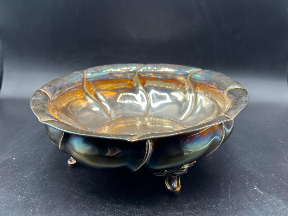 Antique Scottish sterling silver serving bowl. Hallmarked and numbered on bottom, no name. The lion hallmark is known as a rampant lion used on Scottish sterling. See photos.