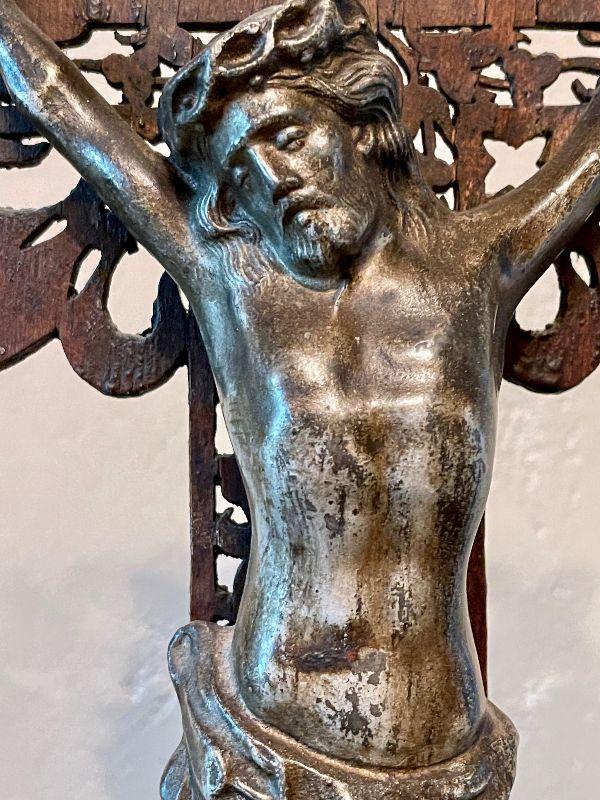 Antique scroll cut Folk Art Crucifix with Gilt Christ