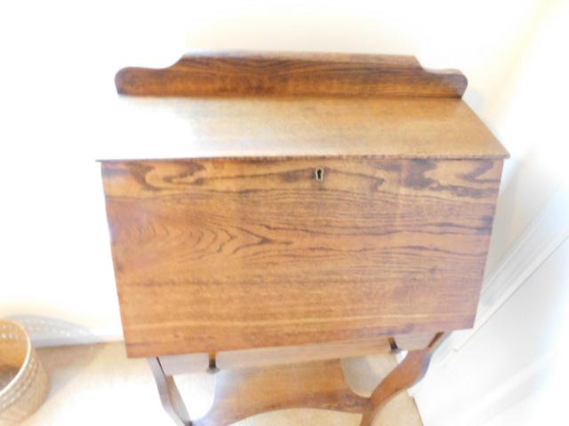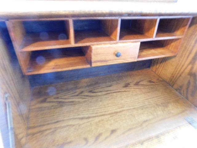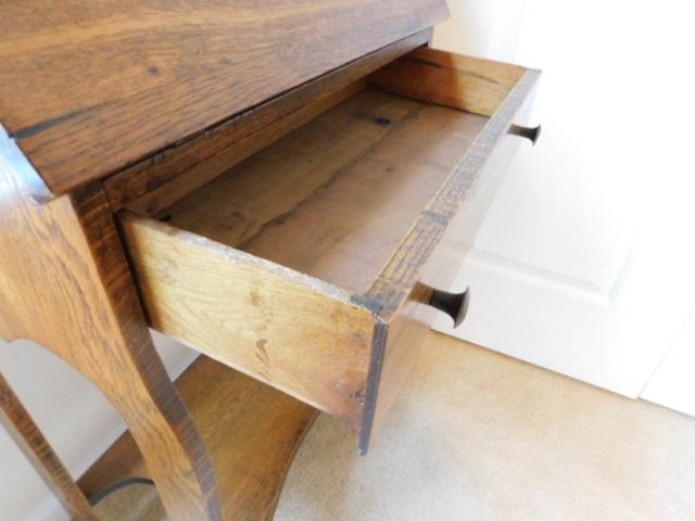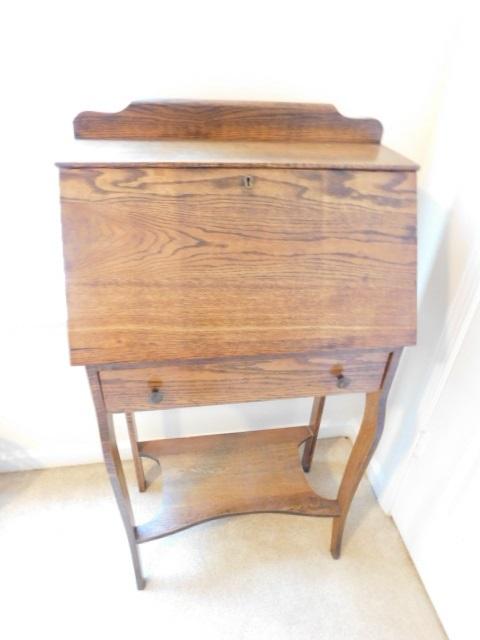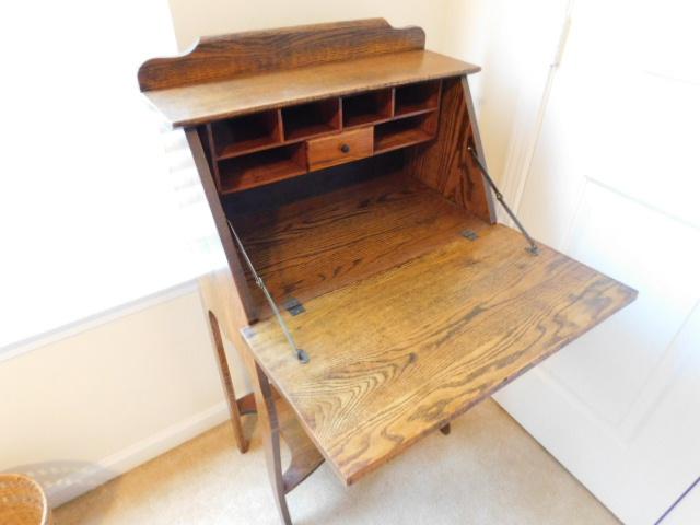 Antique Secretary Desk with Stretcher Shelf and Interior Gallery