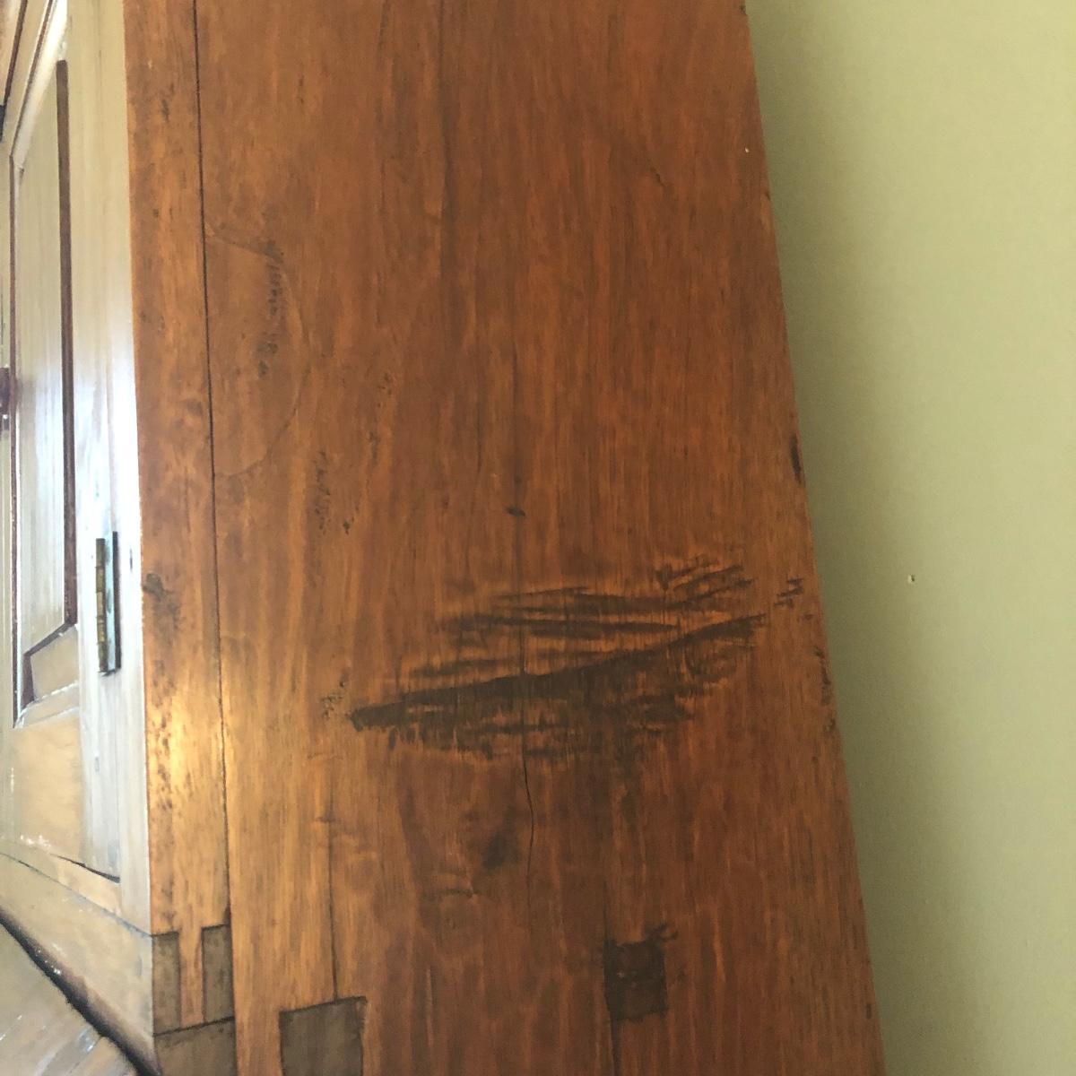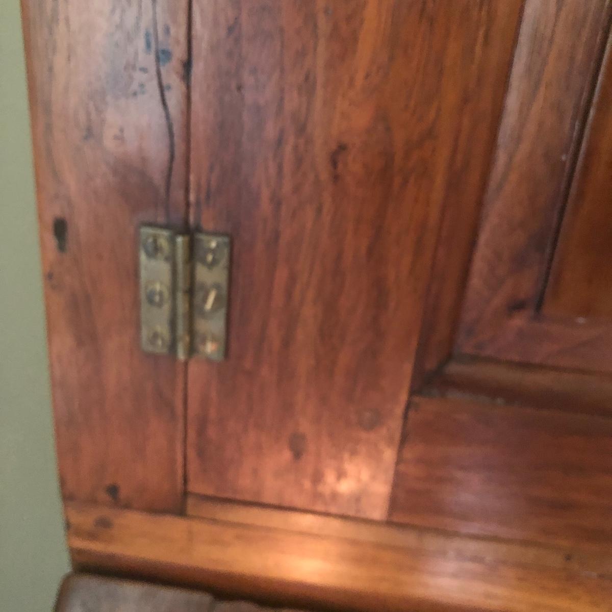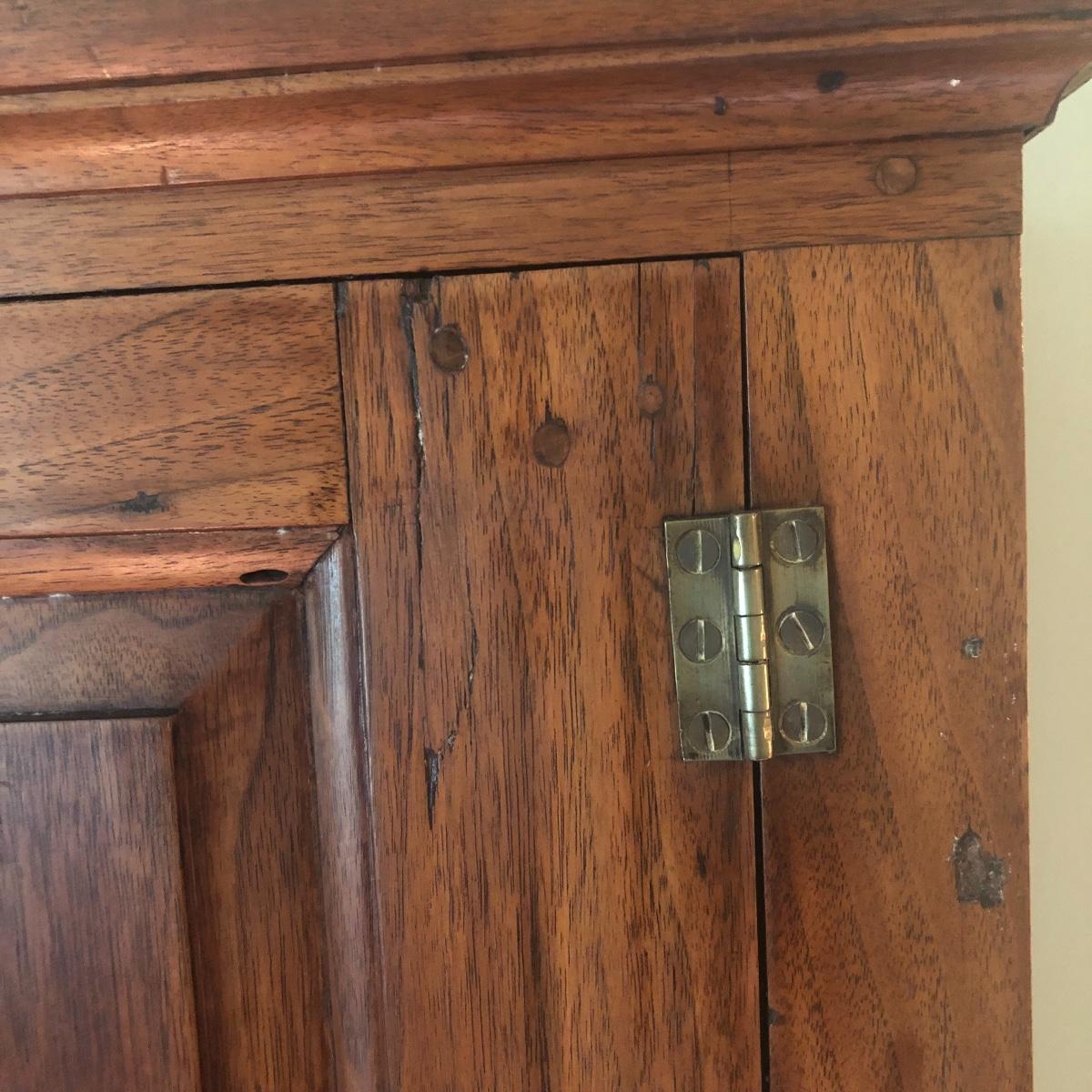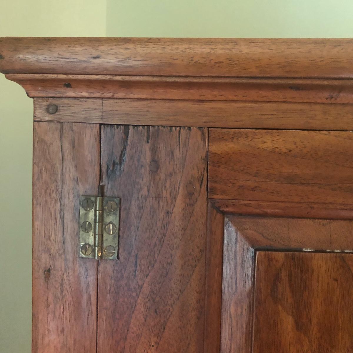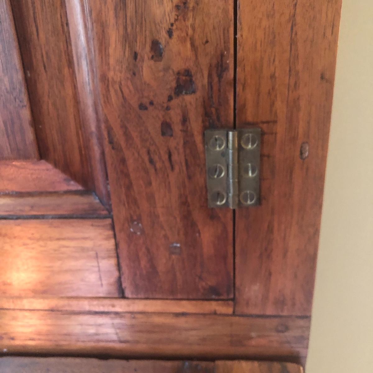 This piece measures 34” x 23.5” x 64”. There are cracks in the sides. Note outside and inside latches and craftsmanship. This piece is heavy; please bring help to load it. Local pick up only.