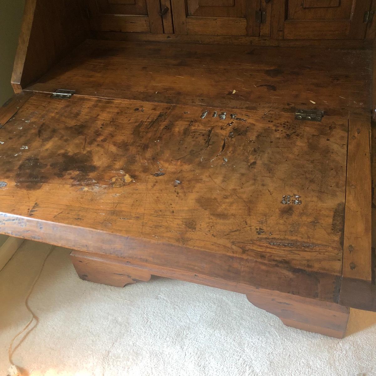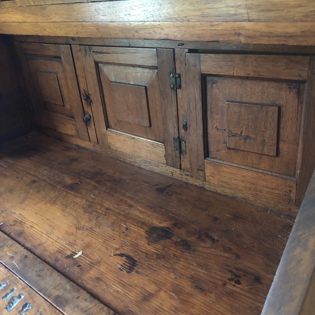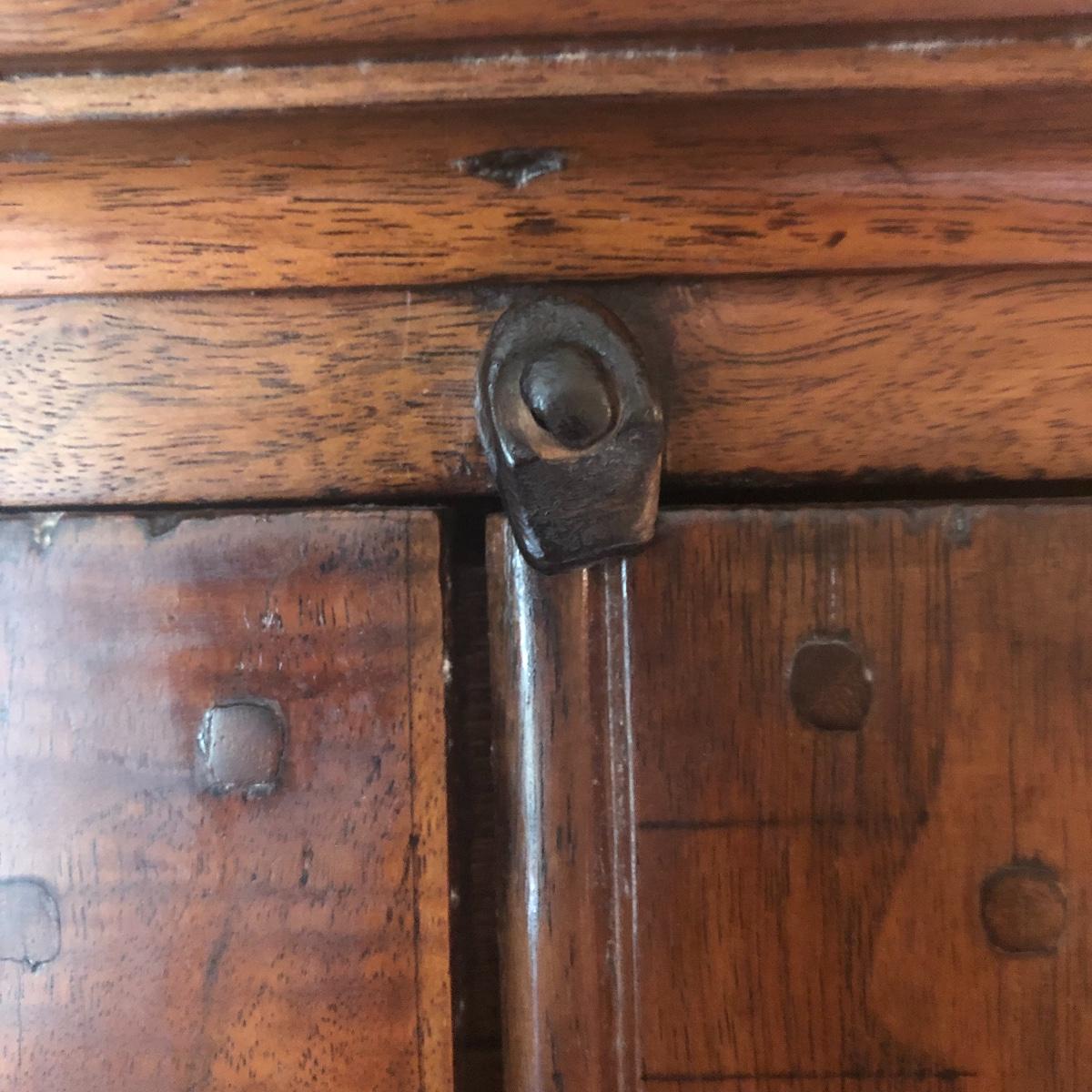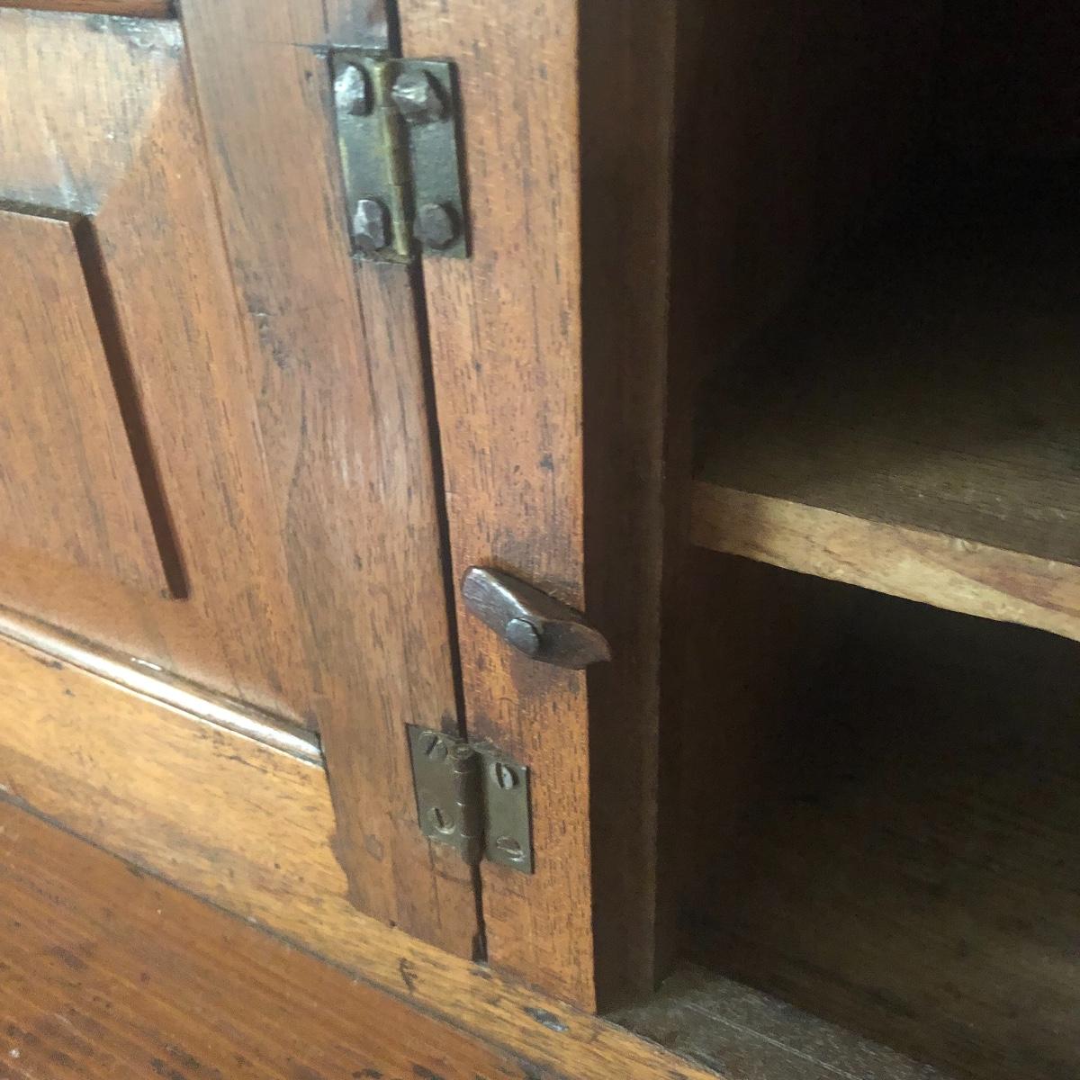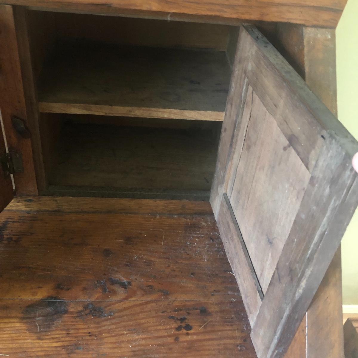 This piece measures 34” x 23.5” x 64”. There are cracks in the sides. Note outside and inside latches and craftsmanship. This piece is heavy; please bring help to load it. Local pick up only.