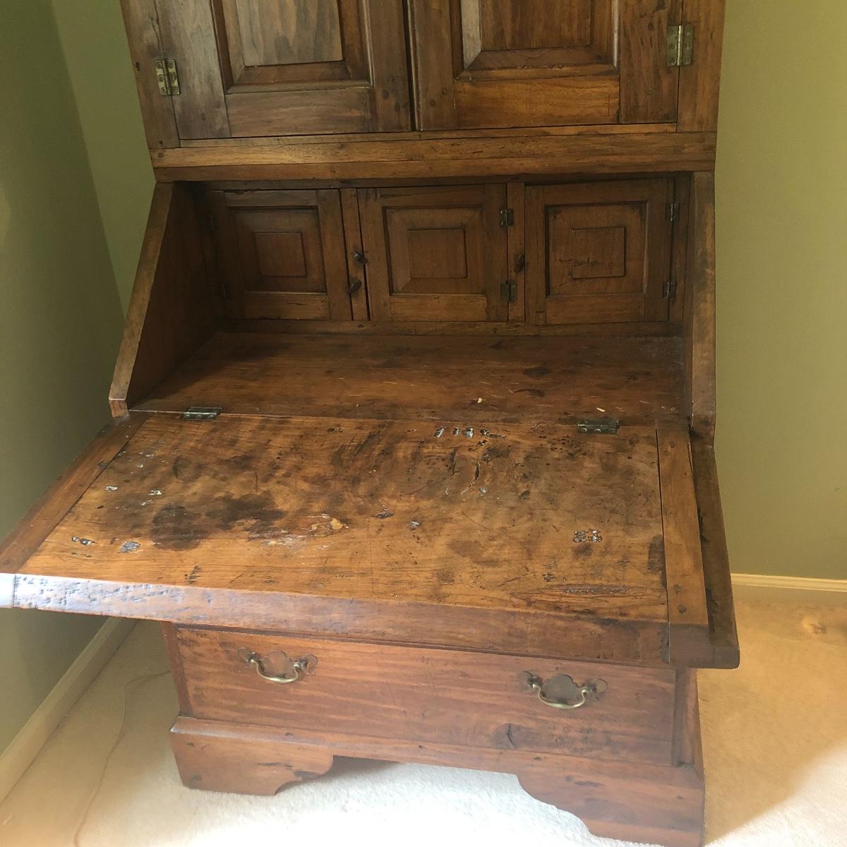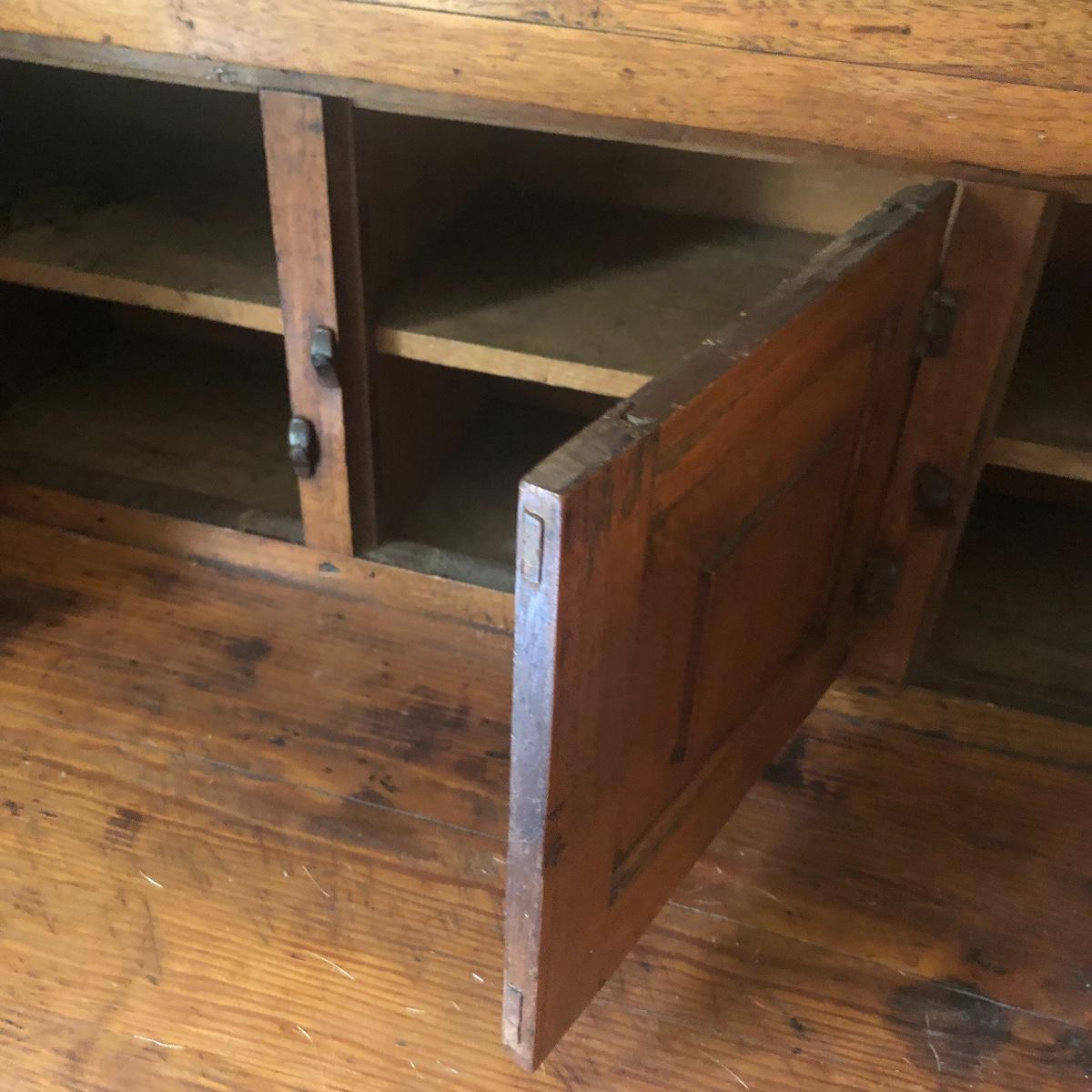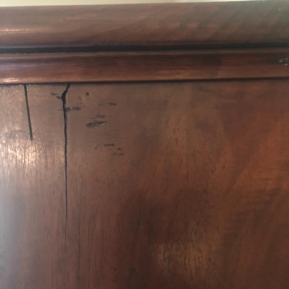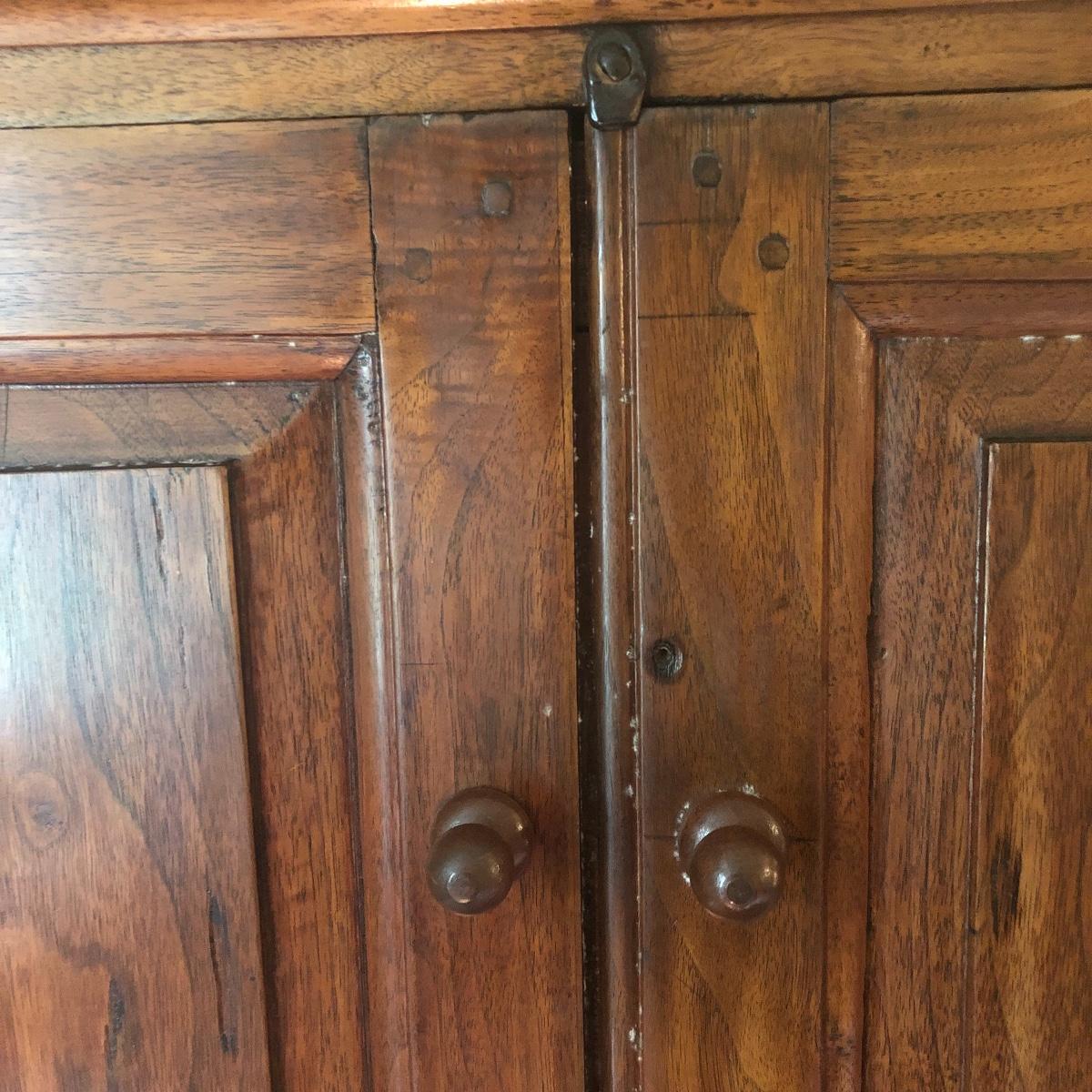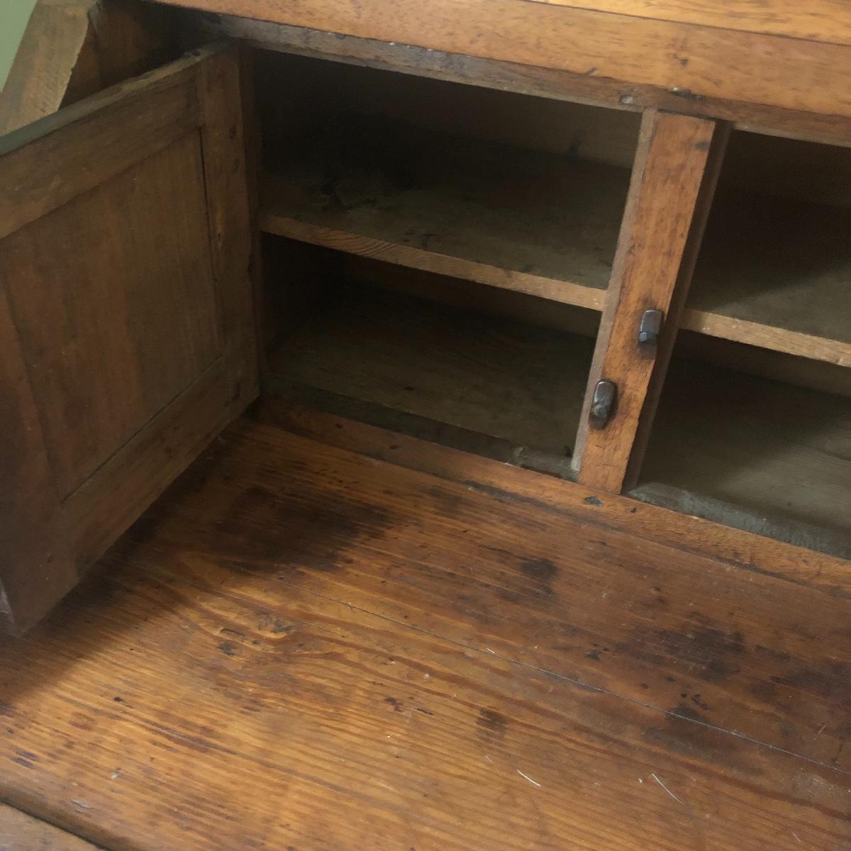 This piece measures 34” x 23.5” x 64”. There are cracks in the sides. Note outside and inside latches and craftsmanship. This piece is heavy; please bring help to load it. Local pick up only.