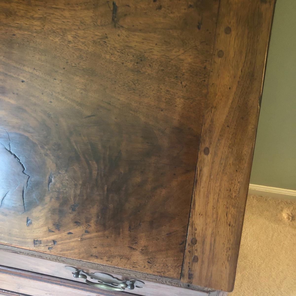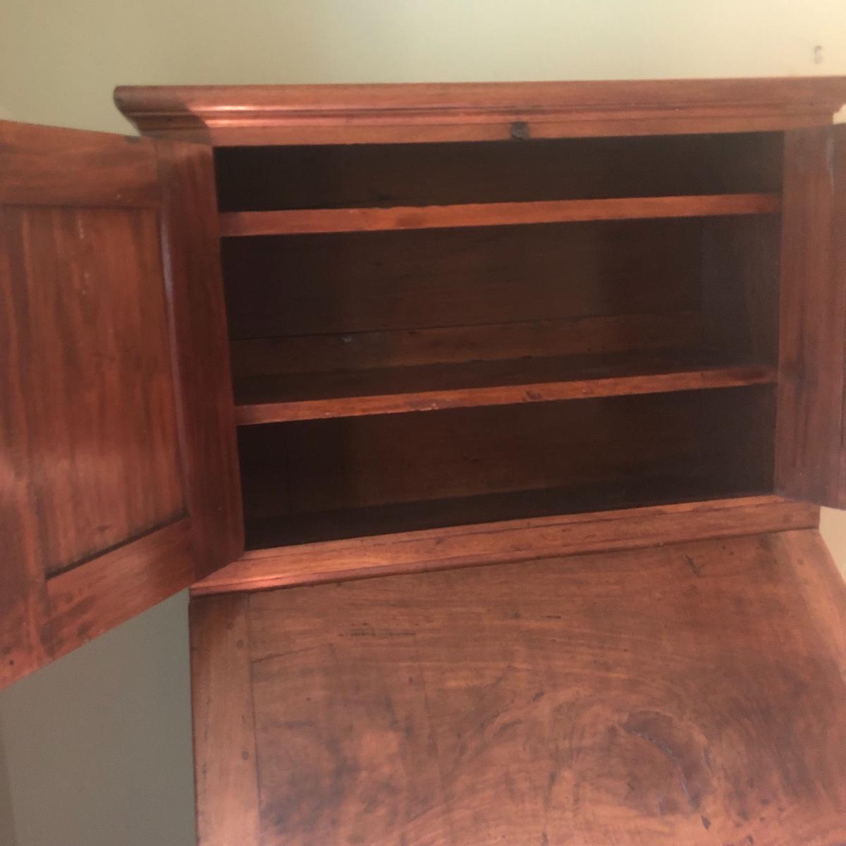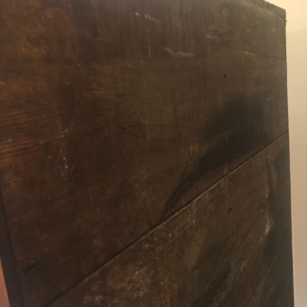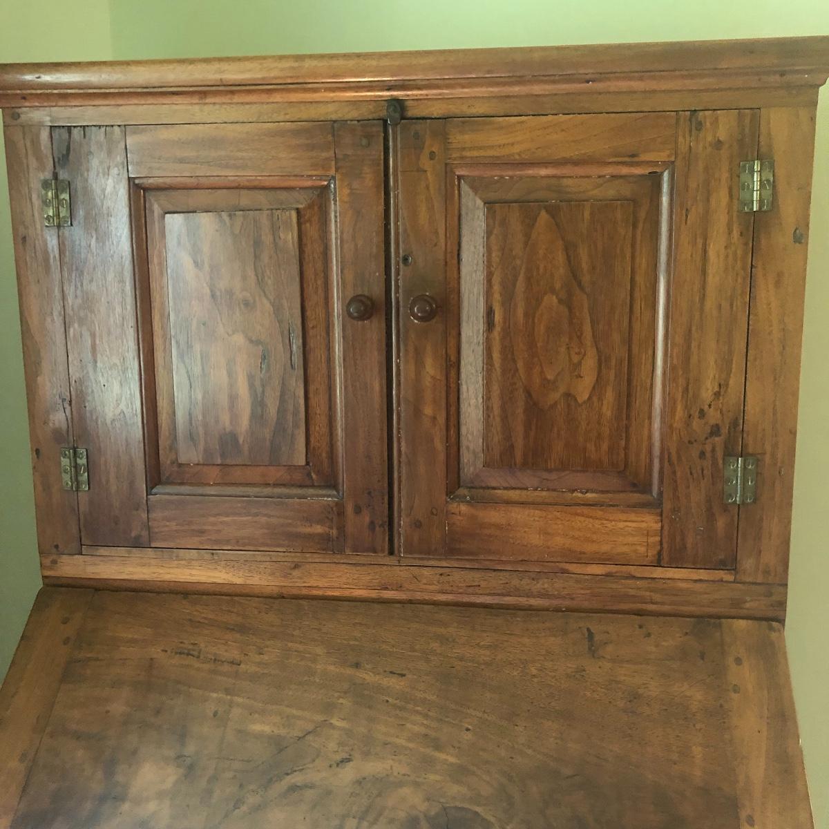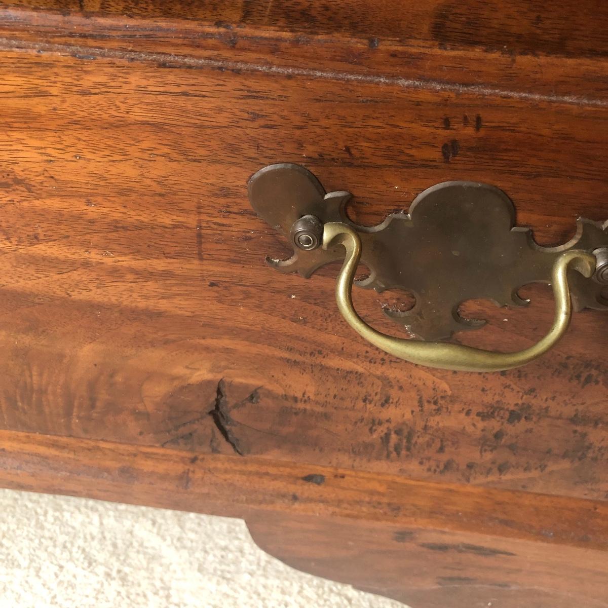 This piece measures 34” x 23.5” x 64”. There are cracks in the sides. Note outside and inside latches and craftsmanship. This piece is heavy; please bring help to load it. Local pick up only.