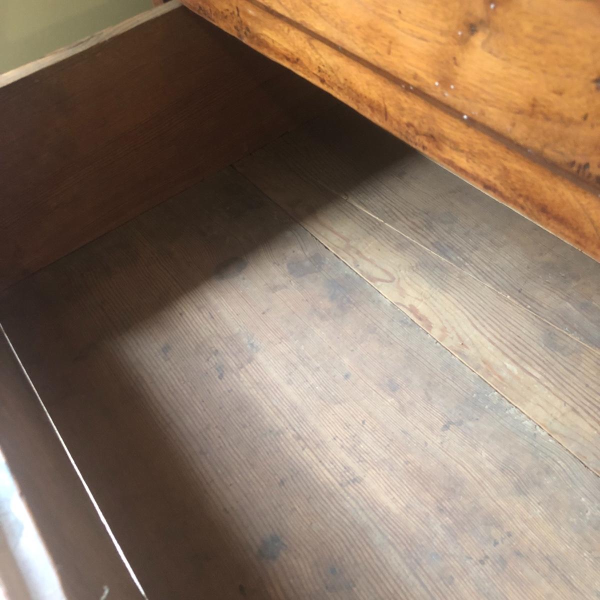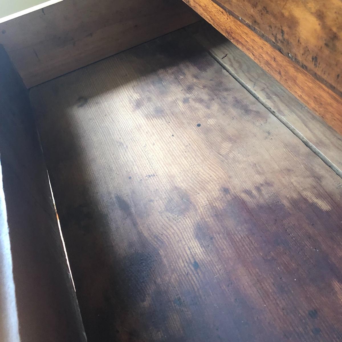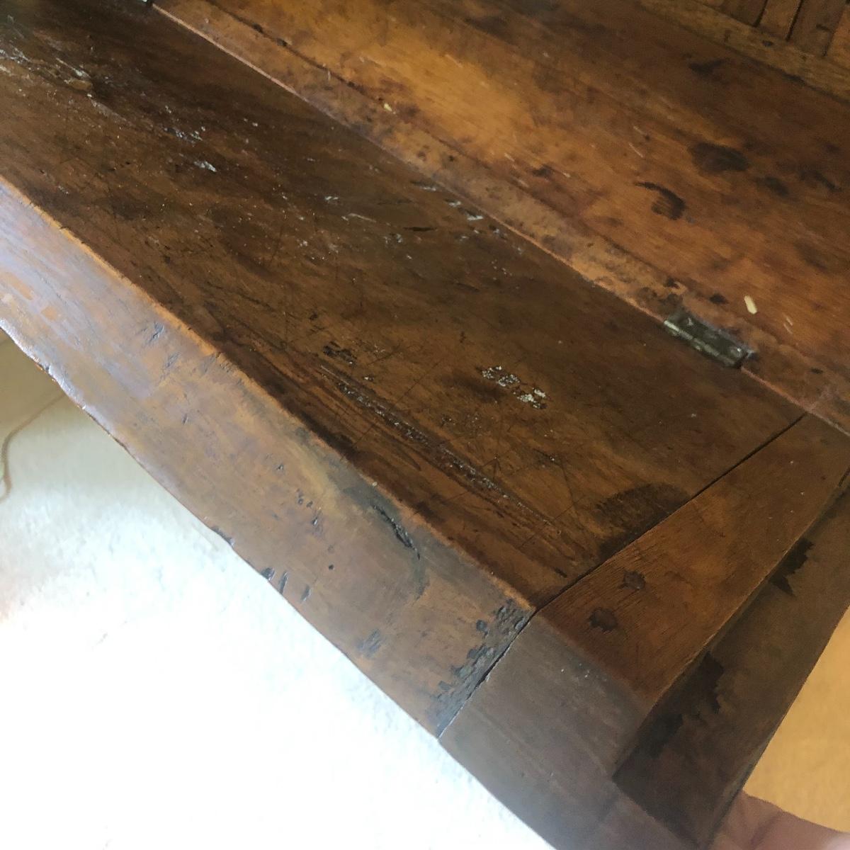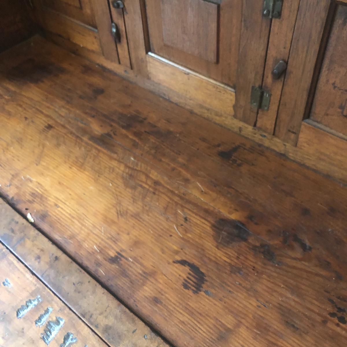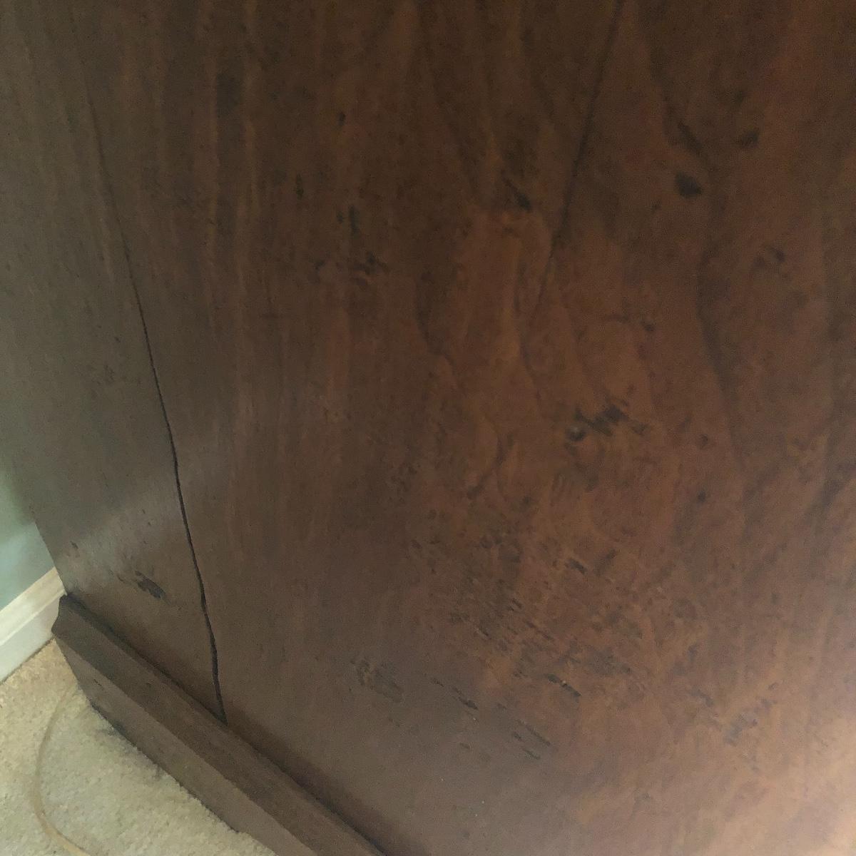 This piece measures 34” x 23.5” x 64”. There are cracks in the sides. Note outside and inside latches and craftsmanship. This piece is heavy; please bring help to load it. Local pick up only.