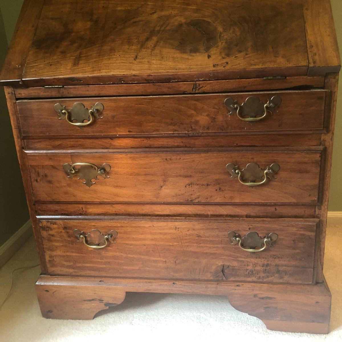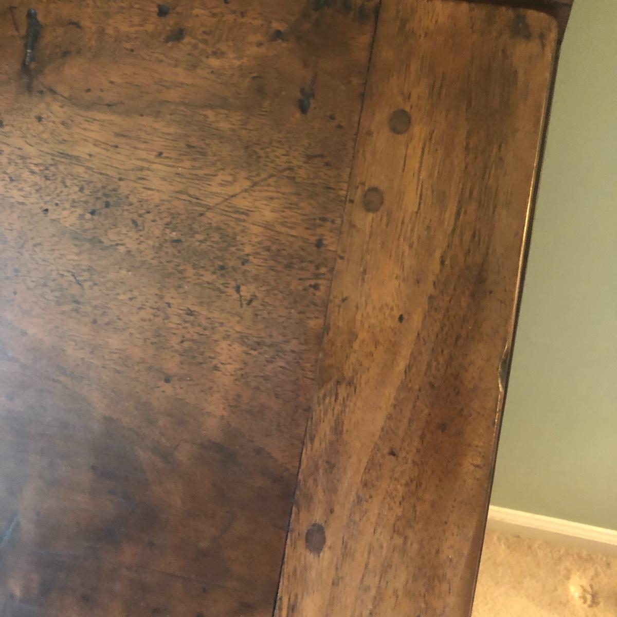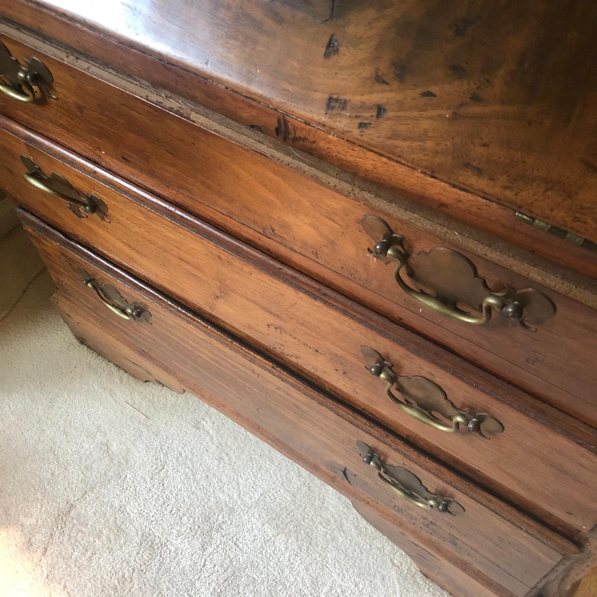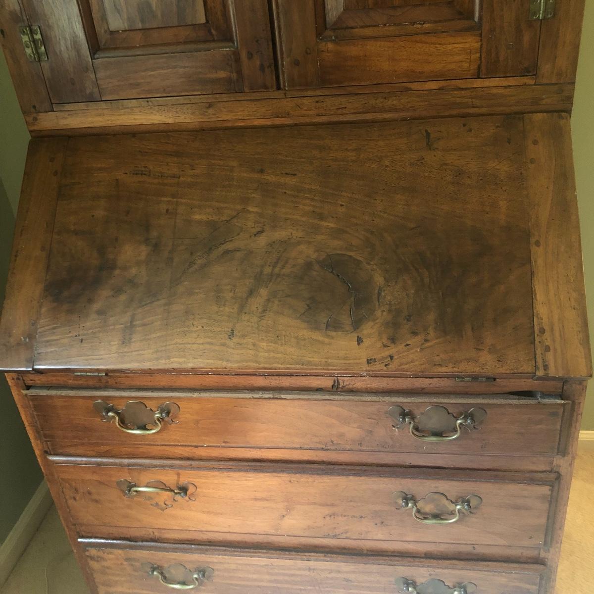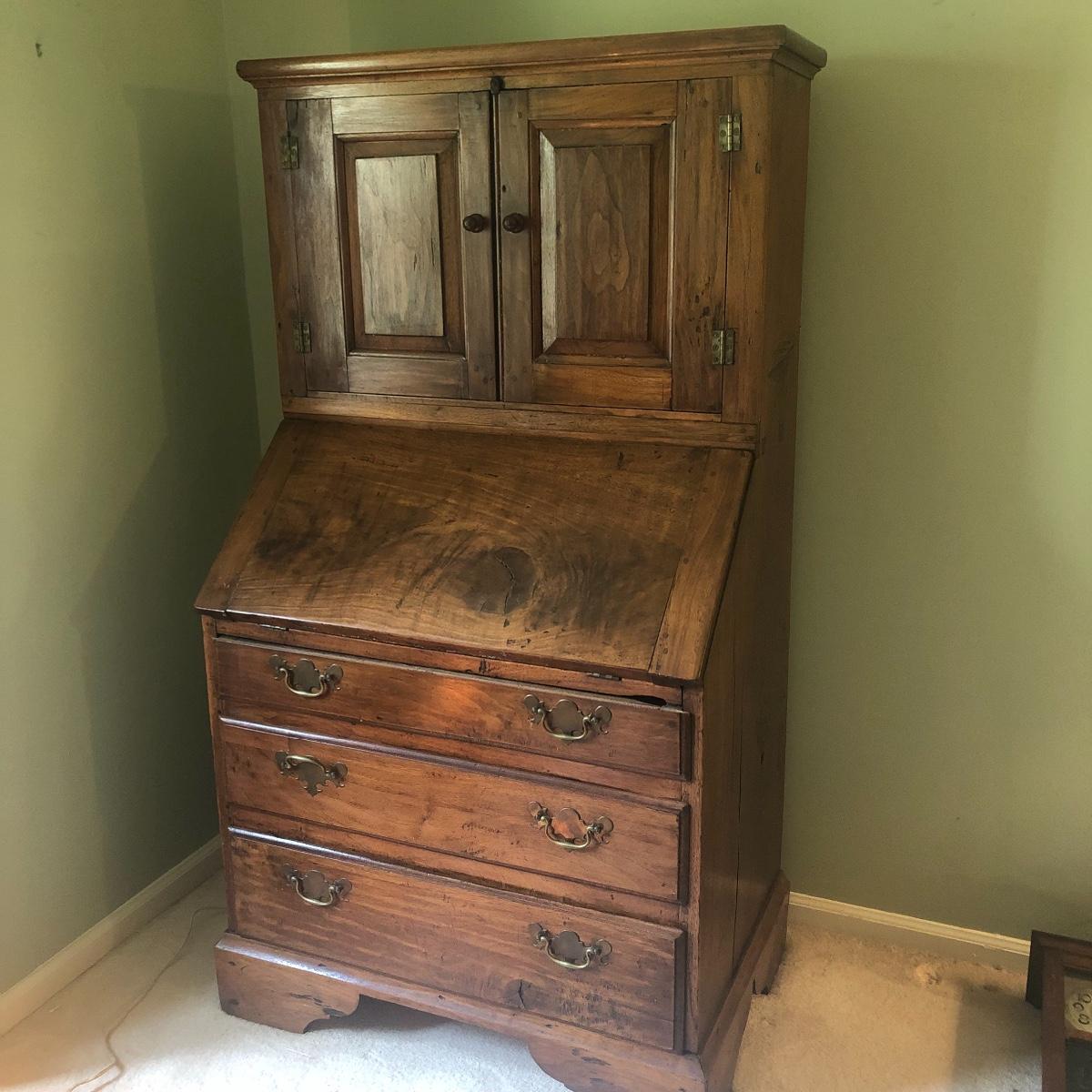 This piece measures 34” x 23.5” x 64”. There are cracks in the sides. Note outside and inside latches and craftsmanship. This piece is heavy; please bring help to load it. Local pick up only.