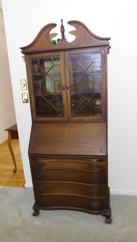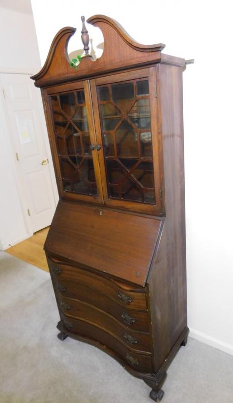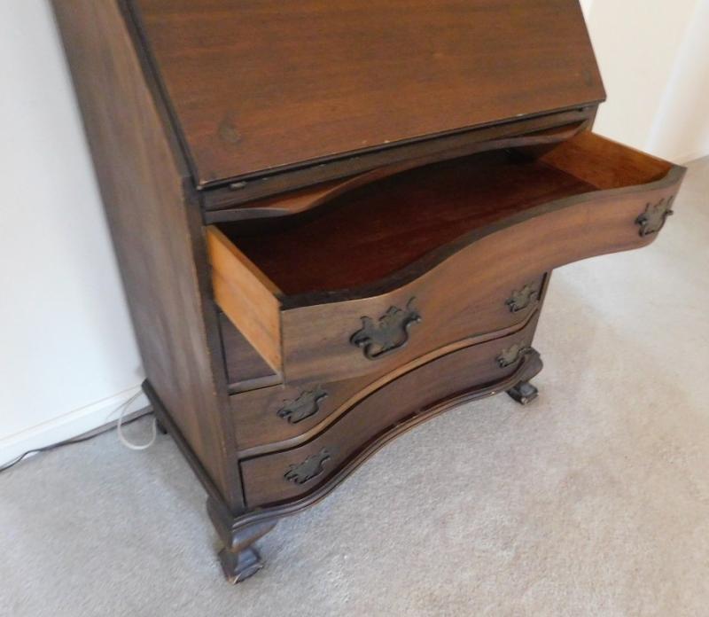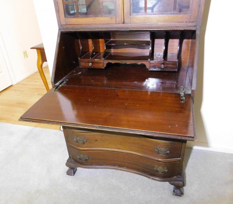 Antique Slant Front Desk with Hutch and 4 Serpentine Drawers 34" x 78"h