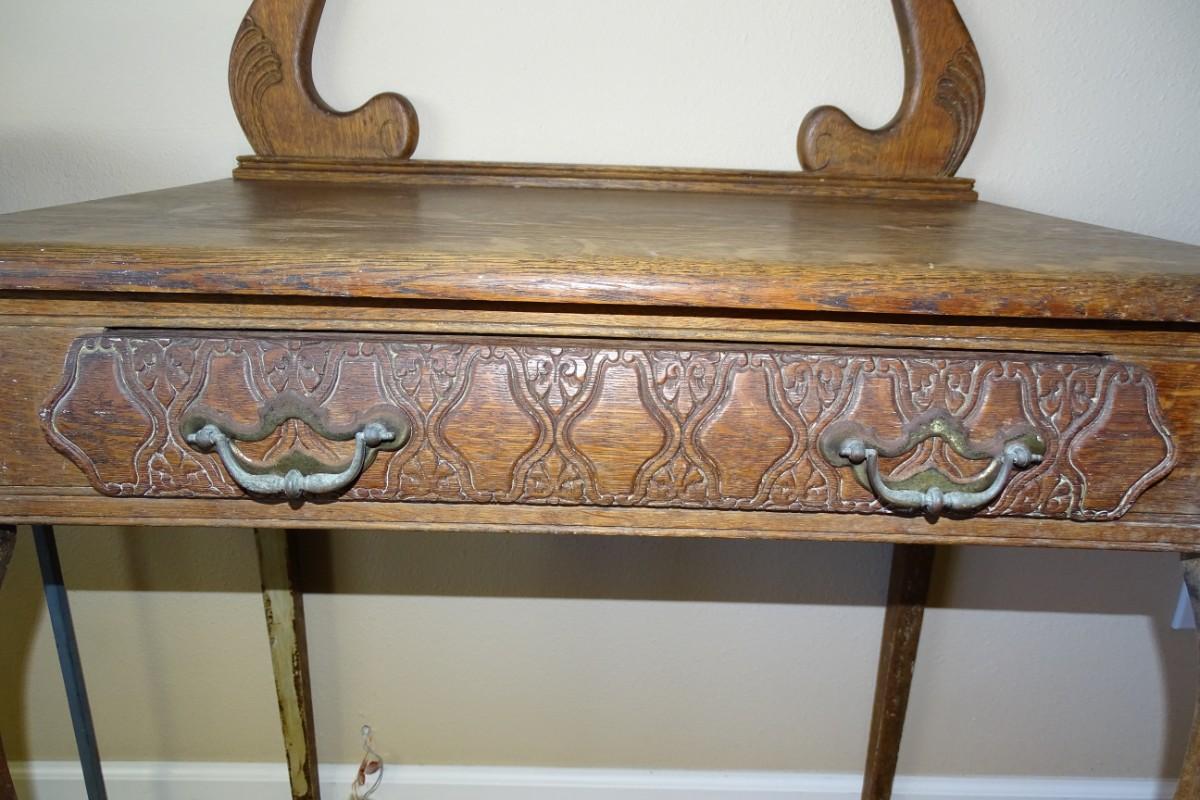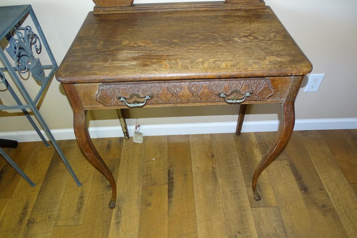Antique Single Drawer Vanity with Oval Mirror