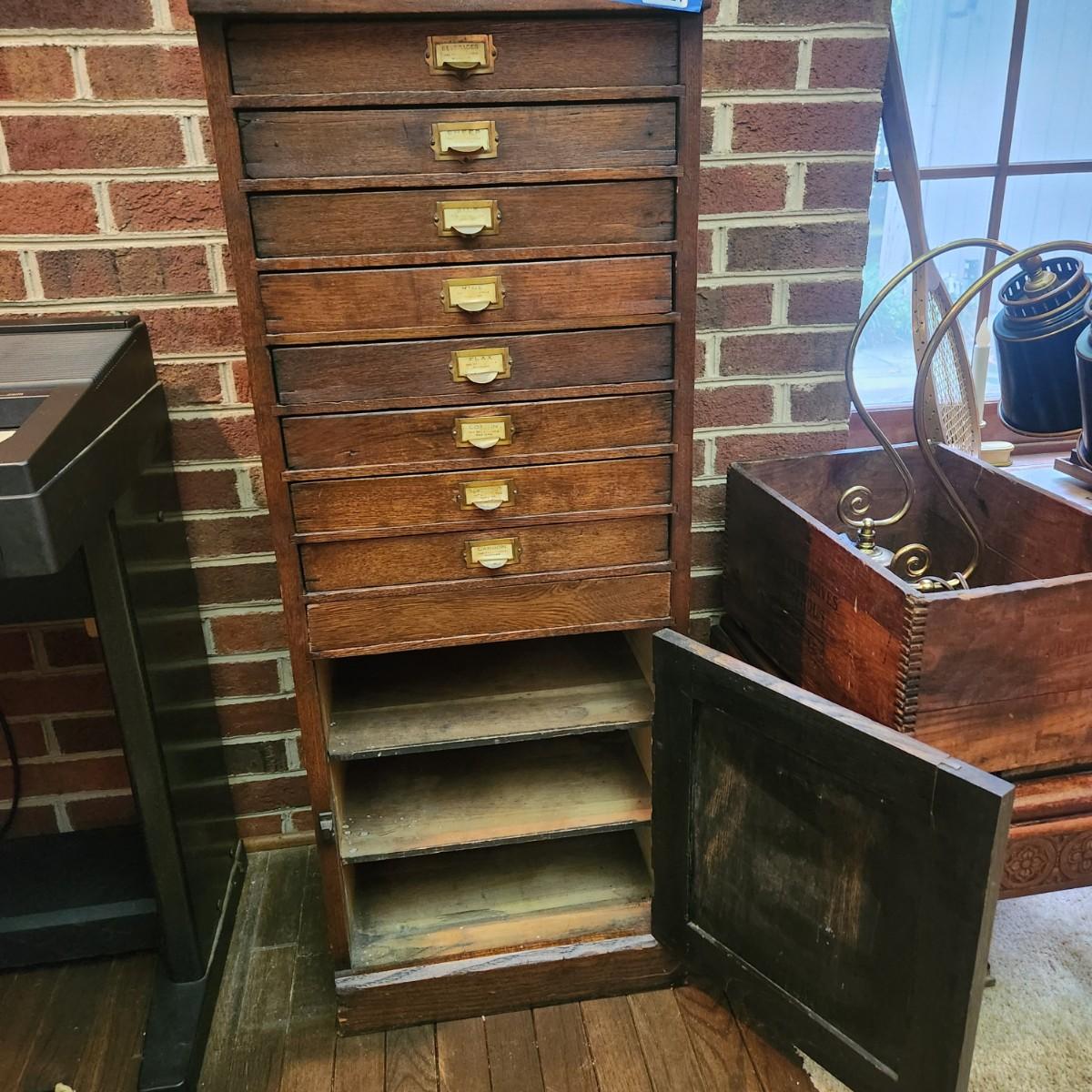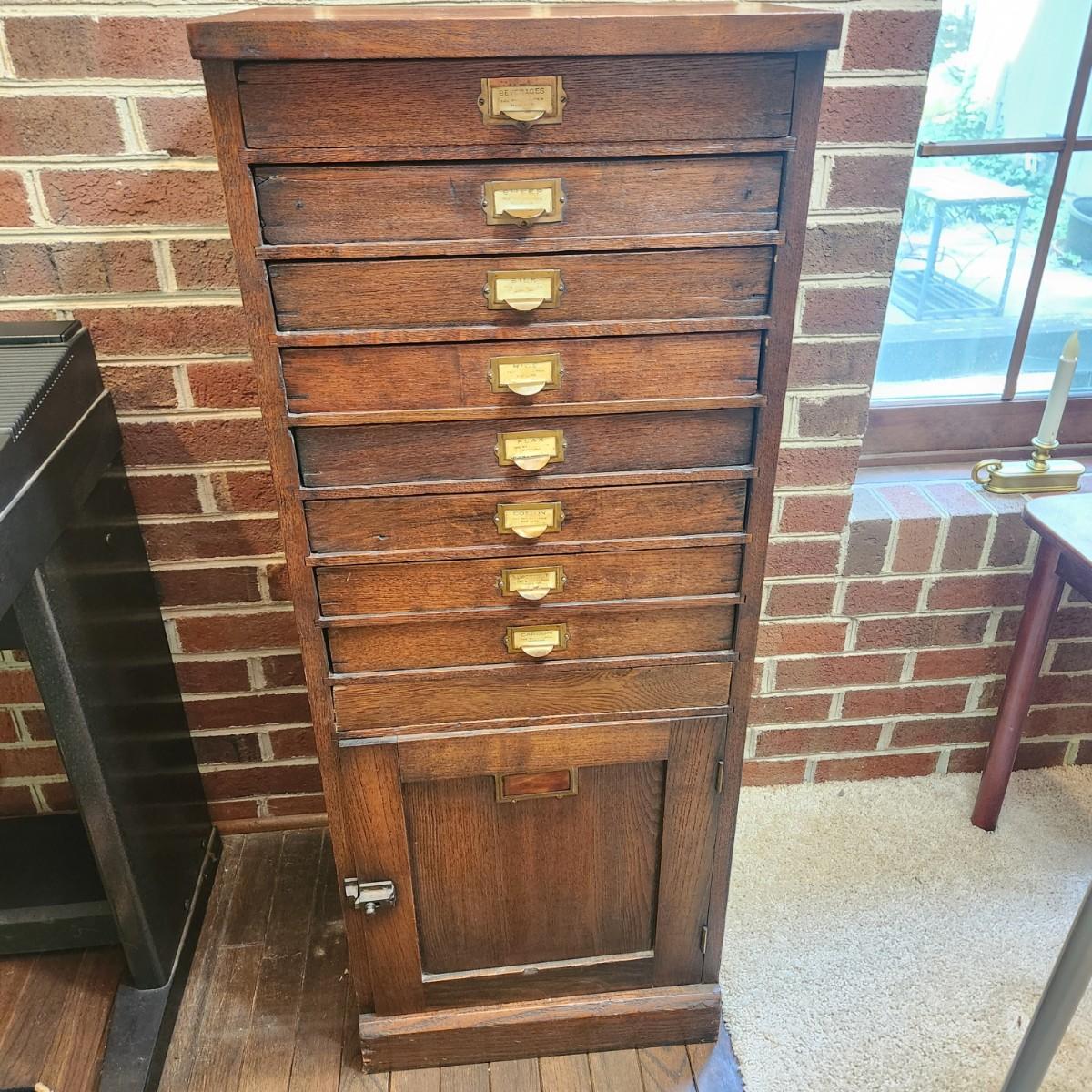 Antique Seed Cabinet 8 Drawers 16"x12"x42"