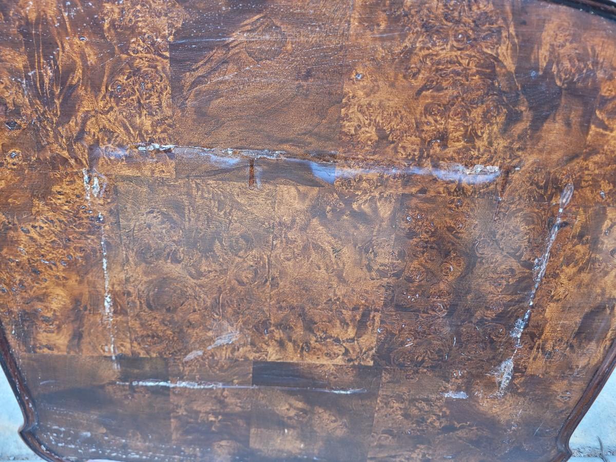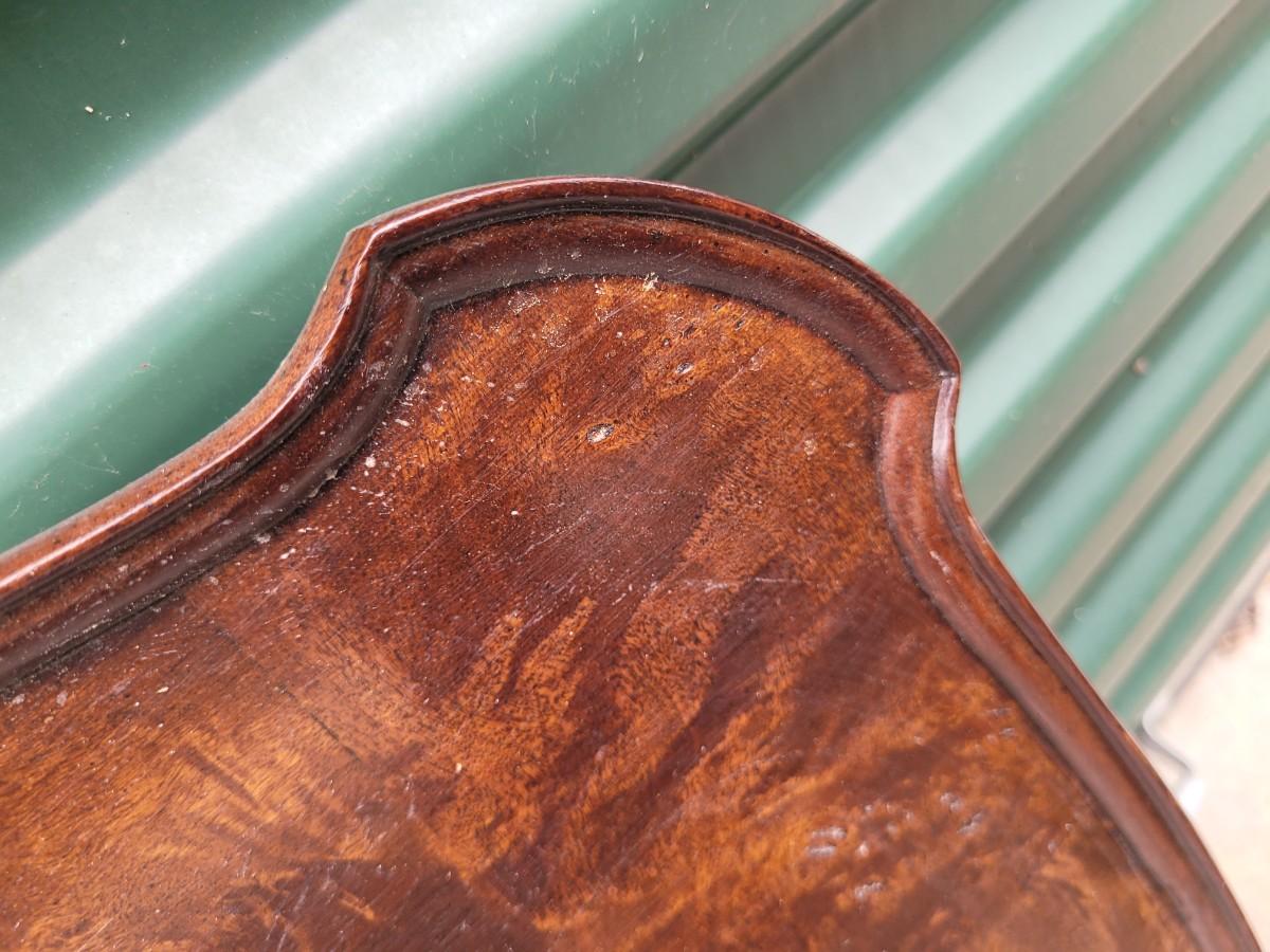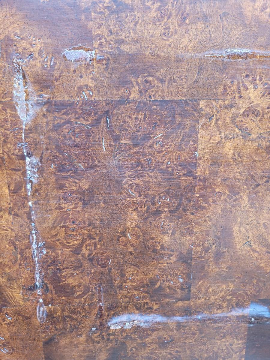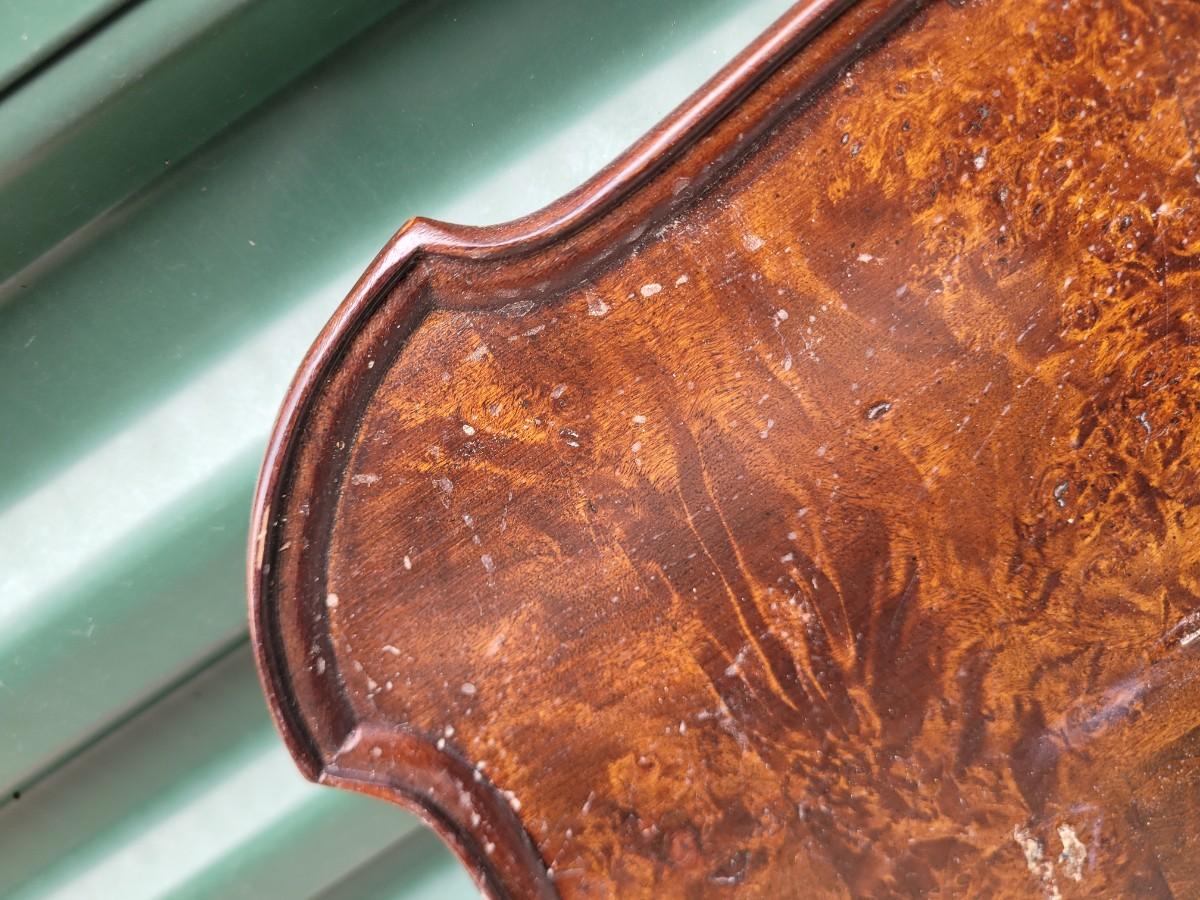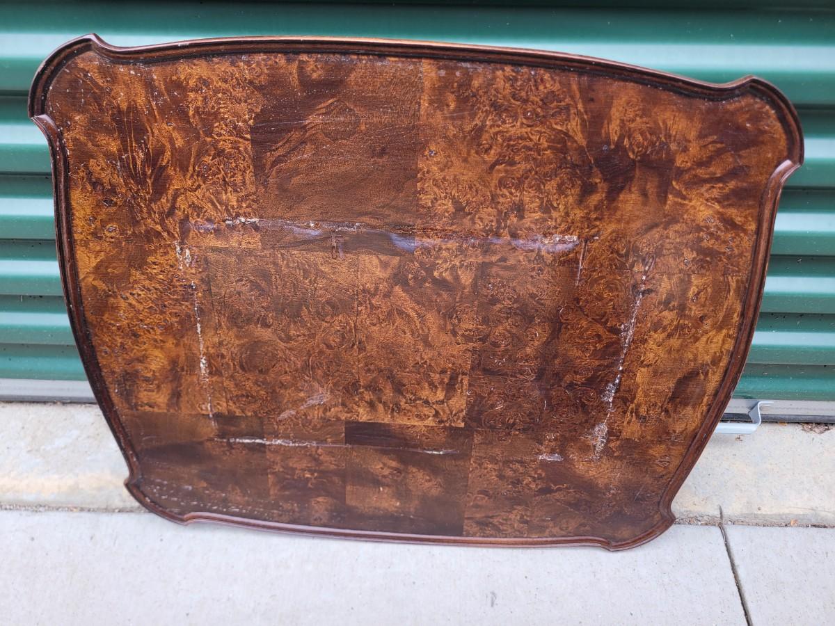 Measures 26" x 22" and is solid with inlays. I thought it was a serving table bit they had something stuck to it and it's set up to hang on a wall. Hard carved and very nice