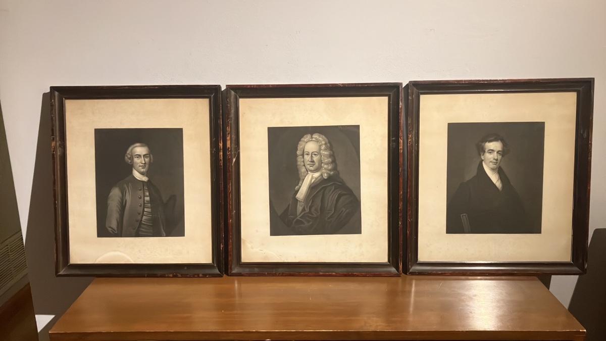 - Flanking portraits: Other distinguished historical figures in period attire.