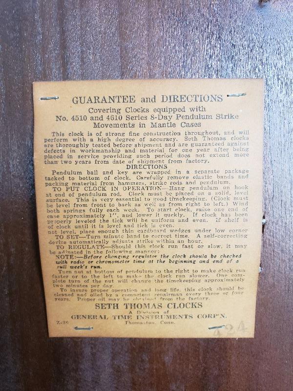 Antique Seth Thomas Mantle Clock, No. 4510 and 4610 Series 8-day Pendulum Strike
