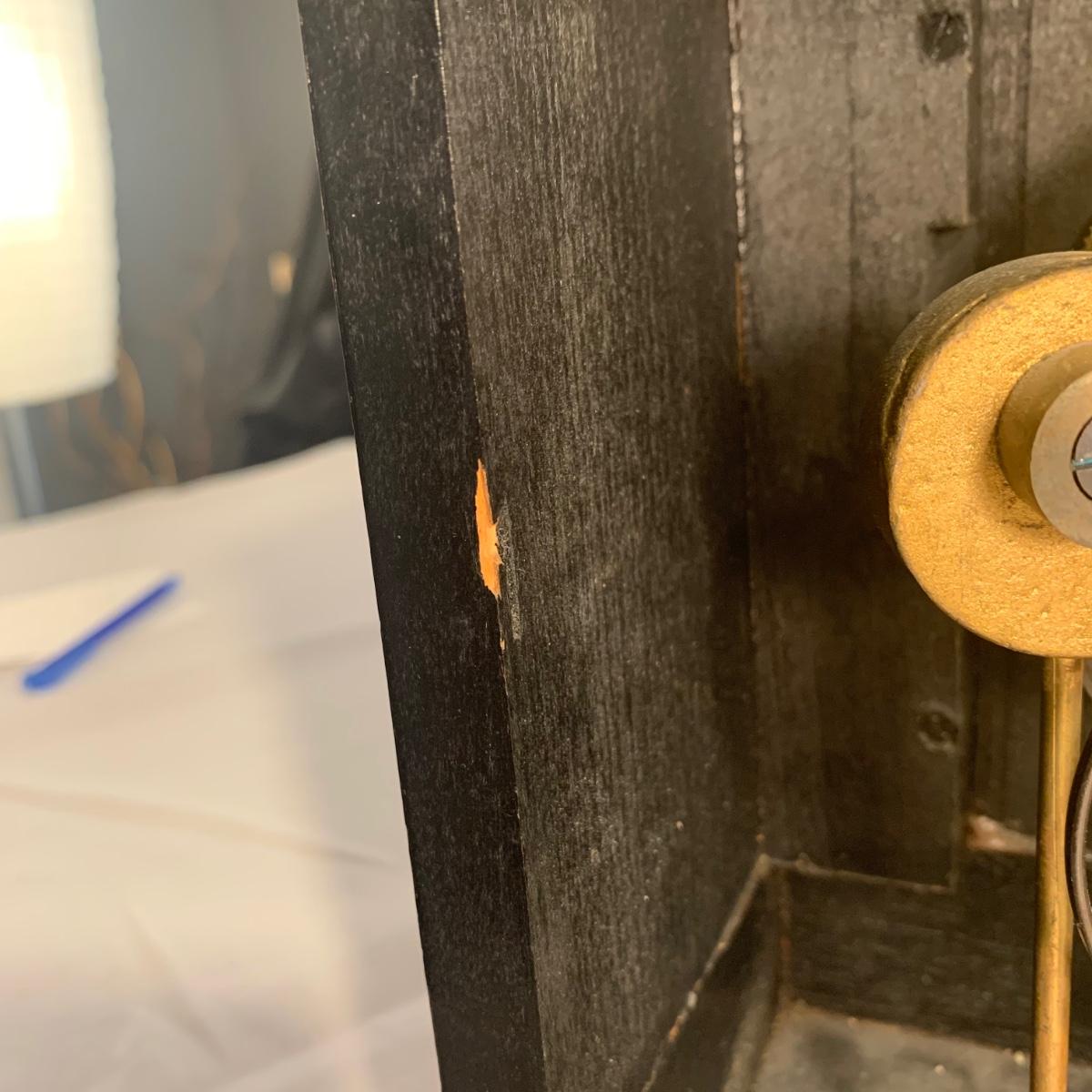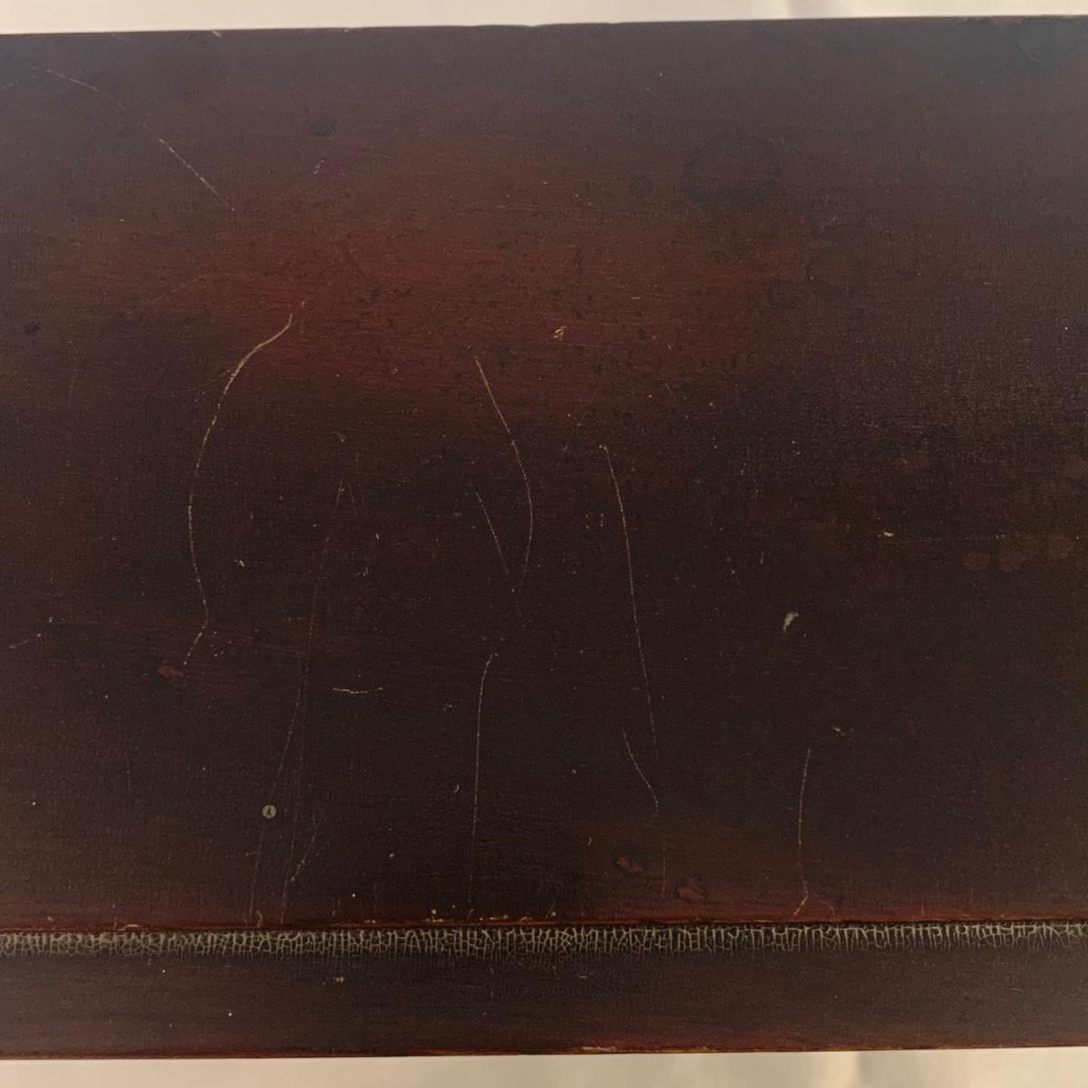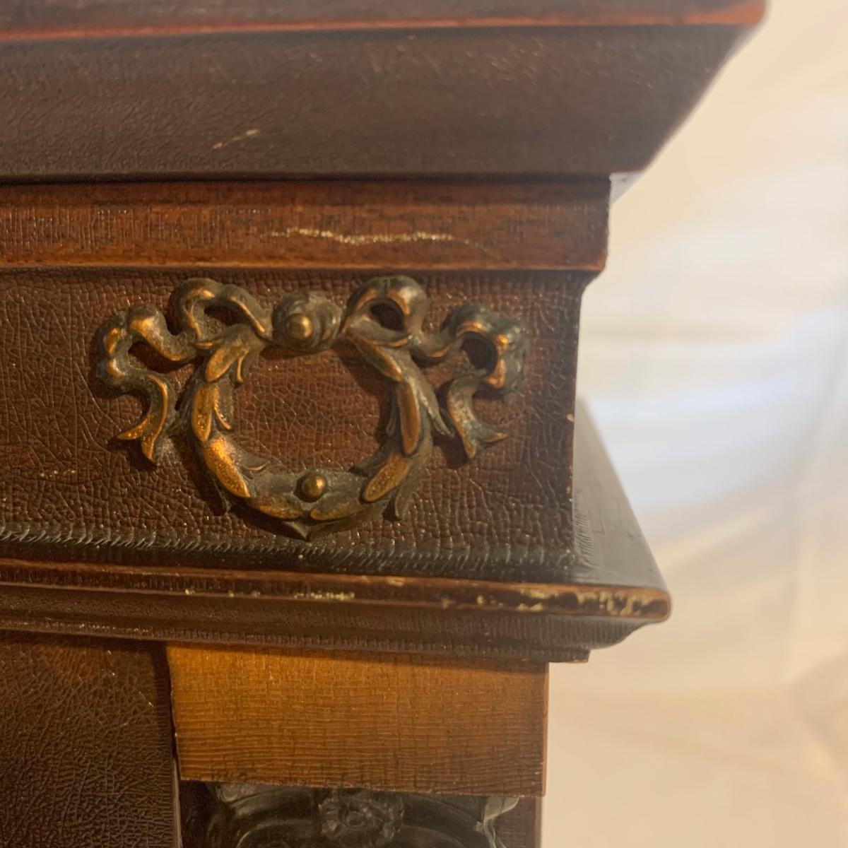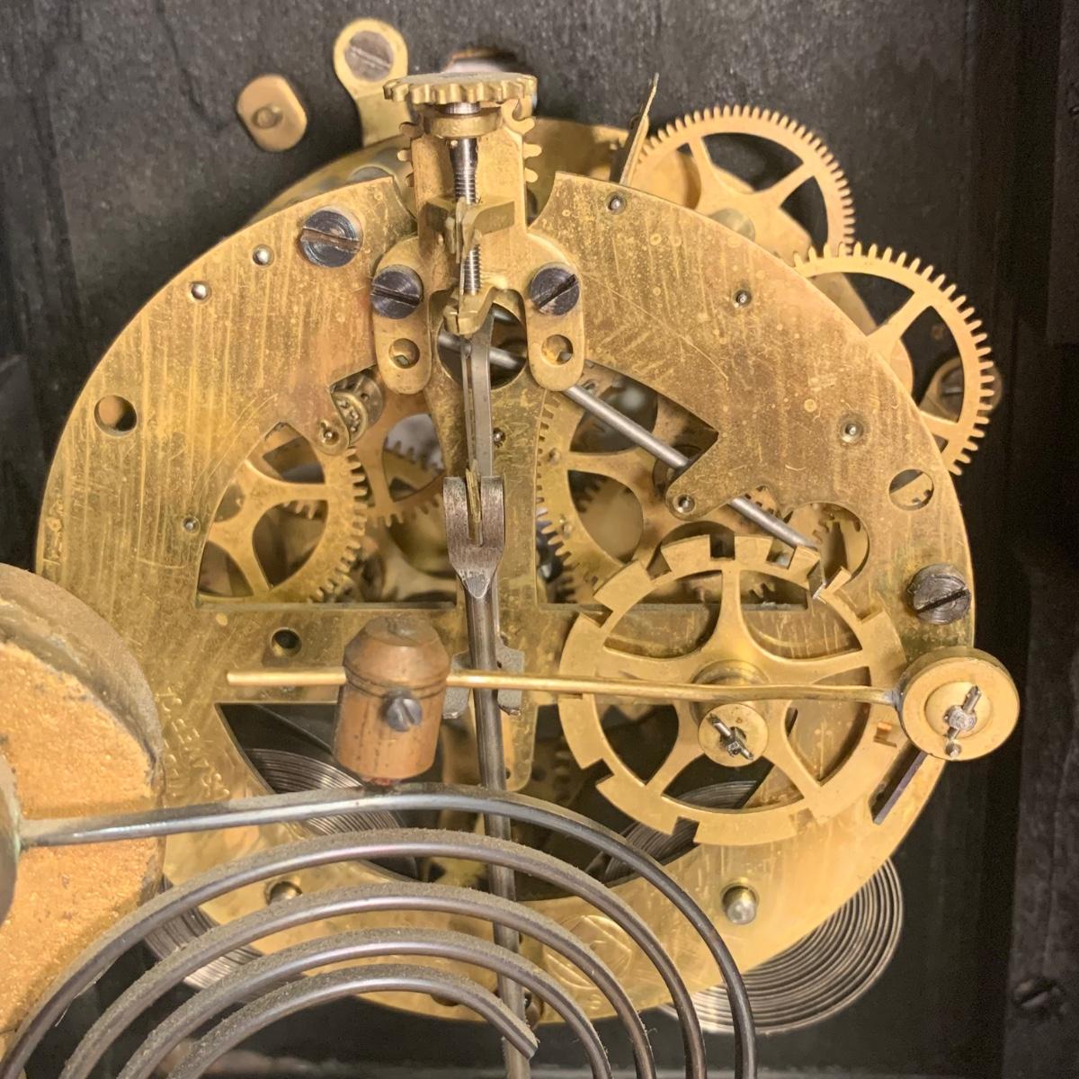 Lovely 1900’s Seth Thomas brand wooden clock with original purchase card from 1939. Face cover is glass and the clock face is porcelain. This clock does have some blemishes and scratches, however it winds up and chimes beautifully. It appears to be in good condition and would add charm and character to any mantle. This item measures 10”L x 5.5”W x 10.5”H.