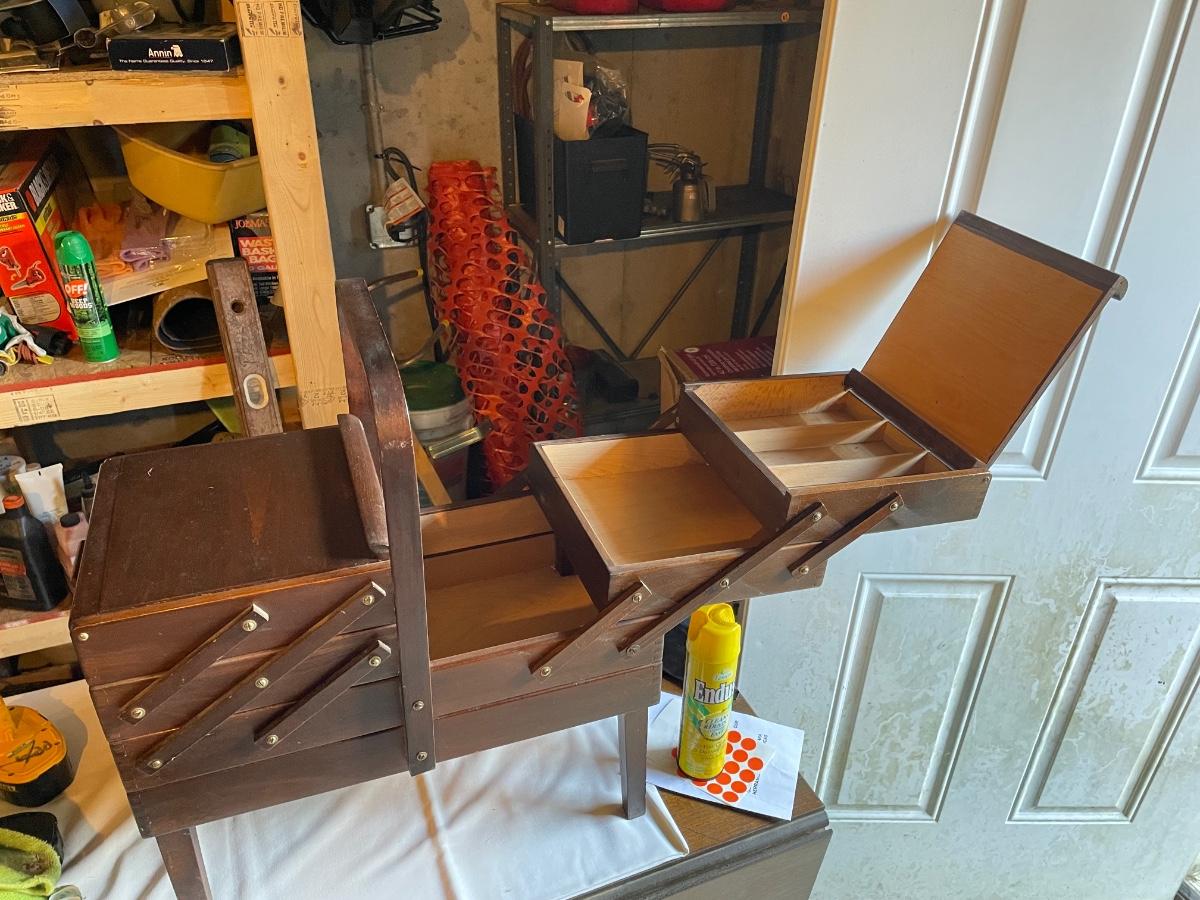 Antique Sewing Basket. Good Condition! Measures 19w x 12d x 24h