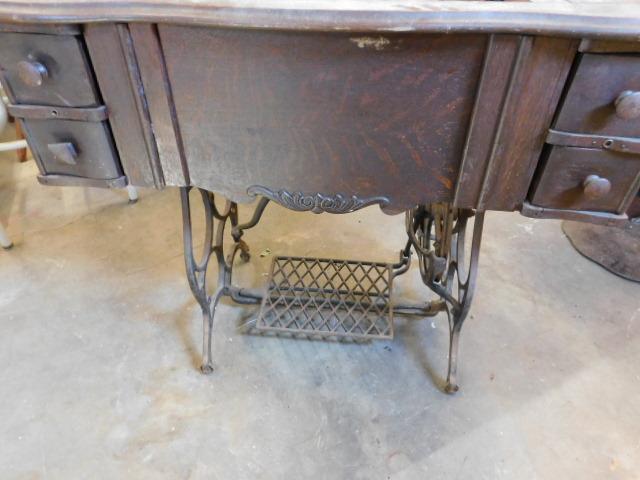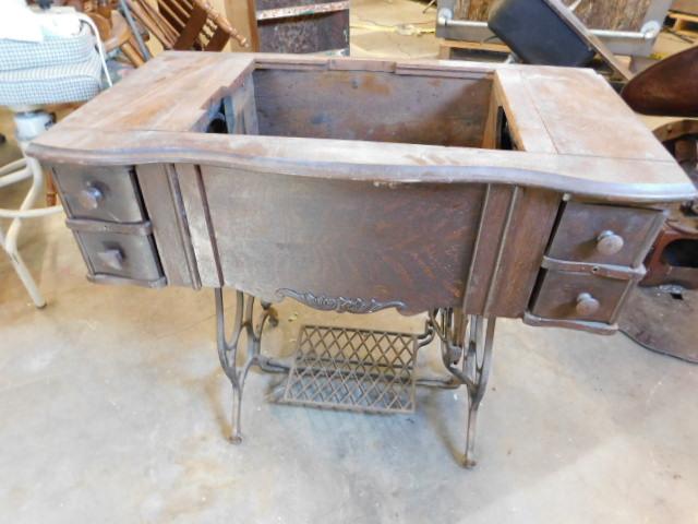 Antique Sewing Machine Cabinet with Cast Treadle Base
