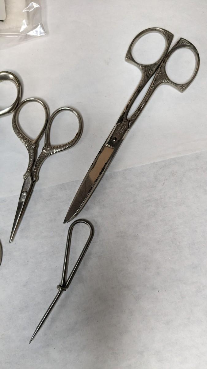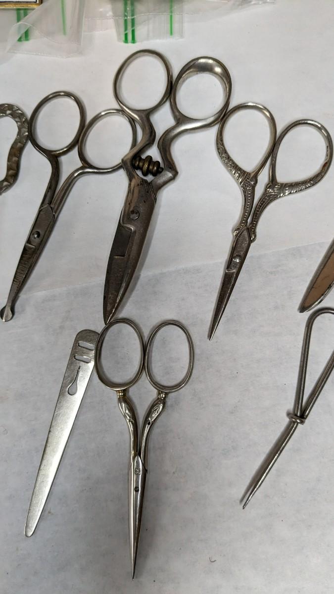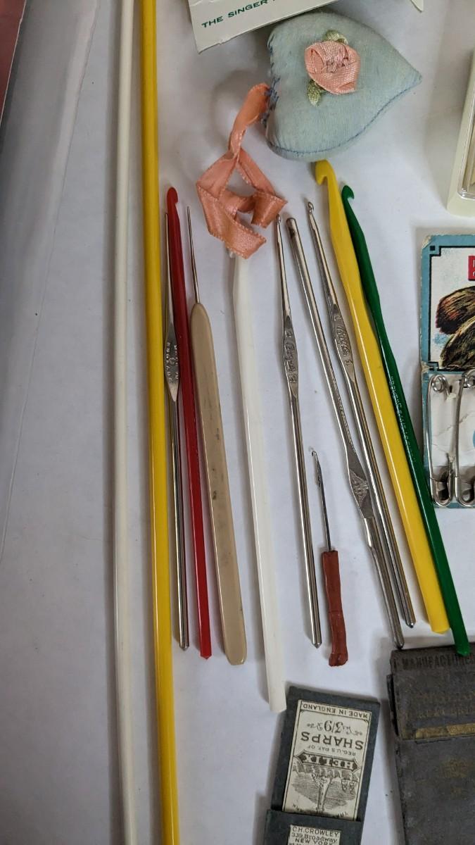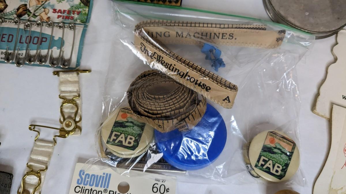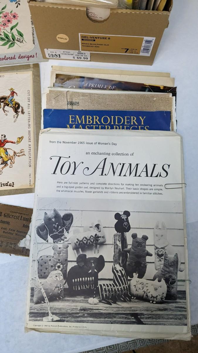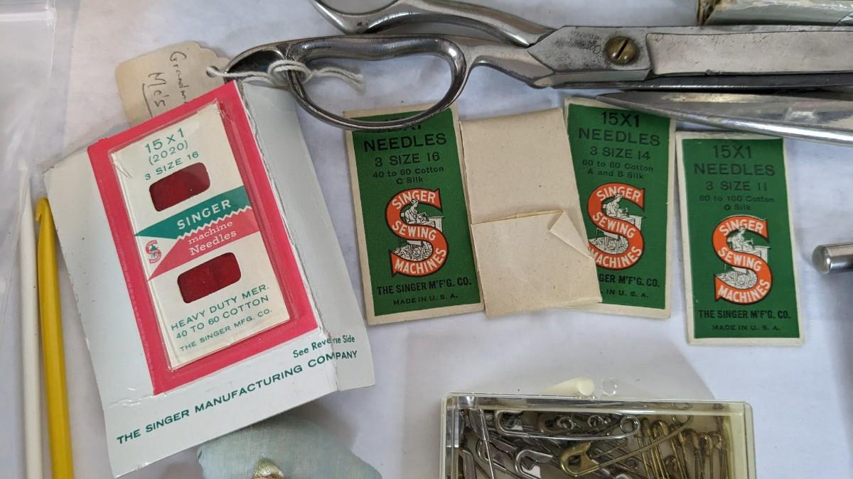 This is one of the most painstakingly well kept sewing collections and assortment we've ever encountered. This lot features pre-1900 pieces all the way through the 1970s. You'll find needles, shears, scissors, and iron on transfers. Quilt, embroidery, crewel, and needlepoint patterns with the earliest dated 1912. Glass mosaic frames, carpet braiders, new in package items, and so much more! This assortment is a wonderful reminder of how we used to be our own department store. It has a phenomenal amount of character, history, and useful potential.
