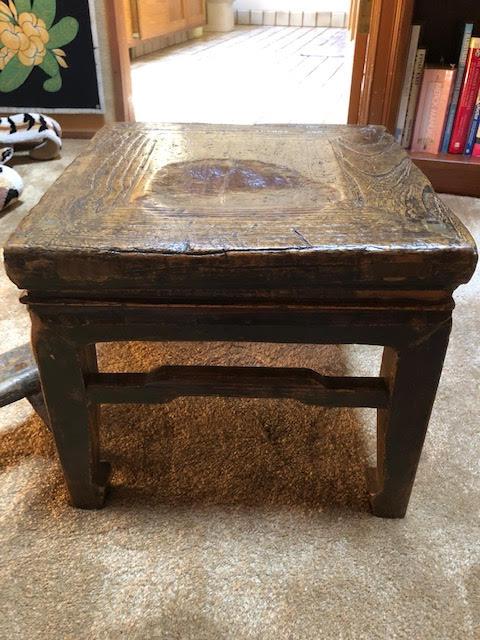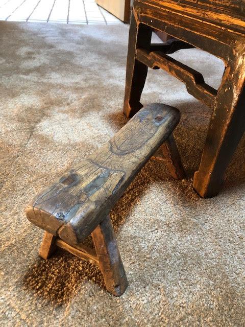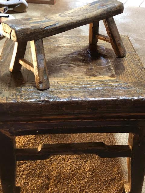 Antique Shandong Chinese Elm Wood Stool and Wood Headrest