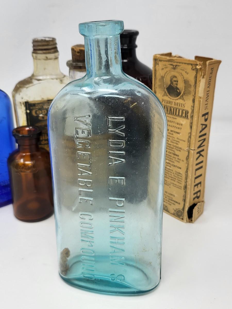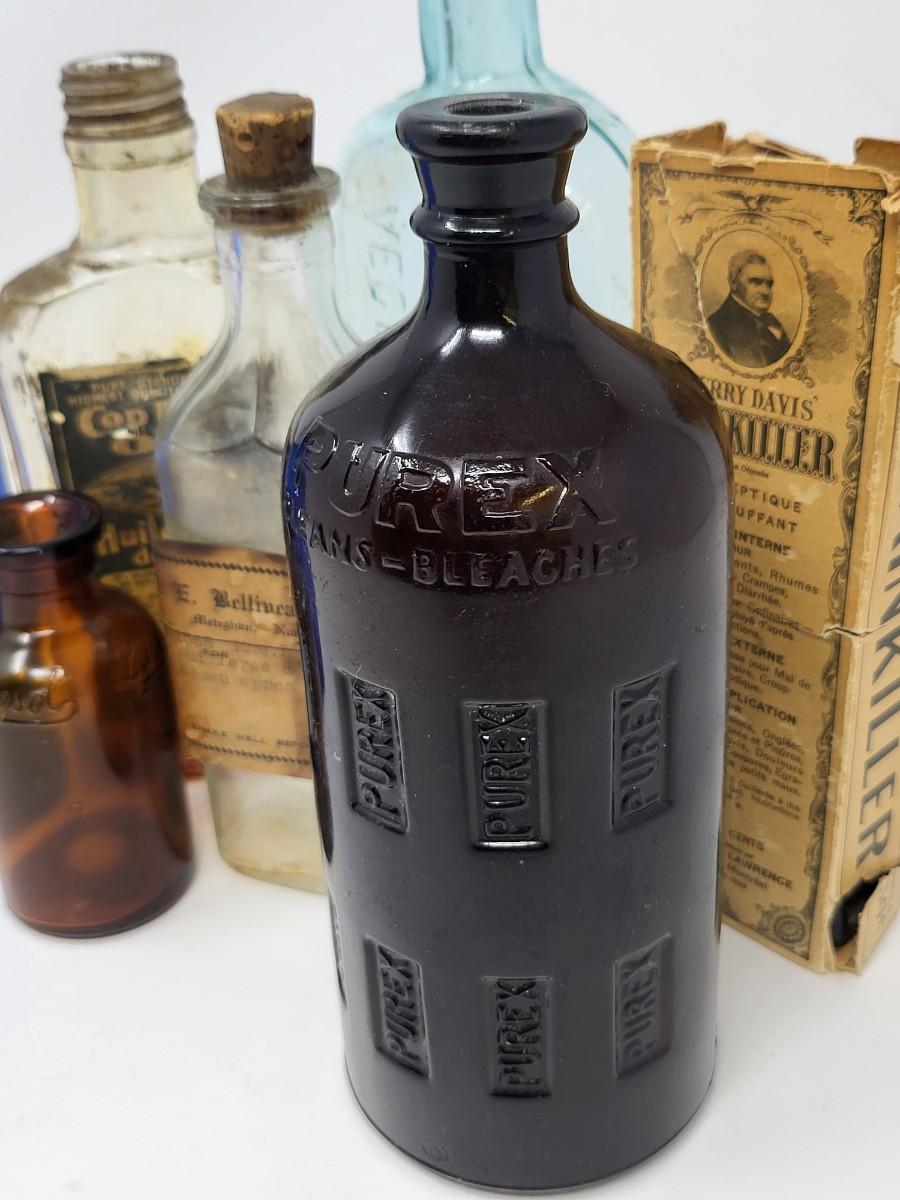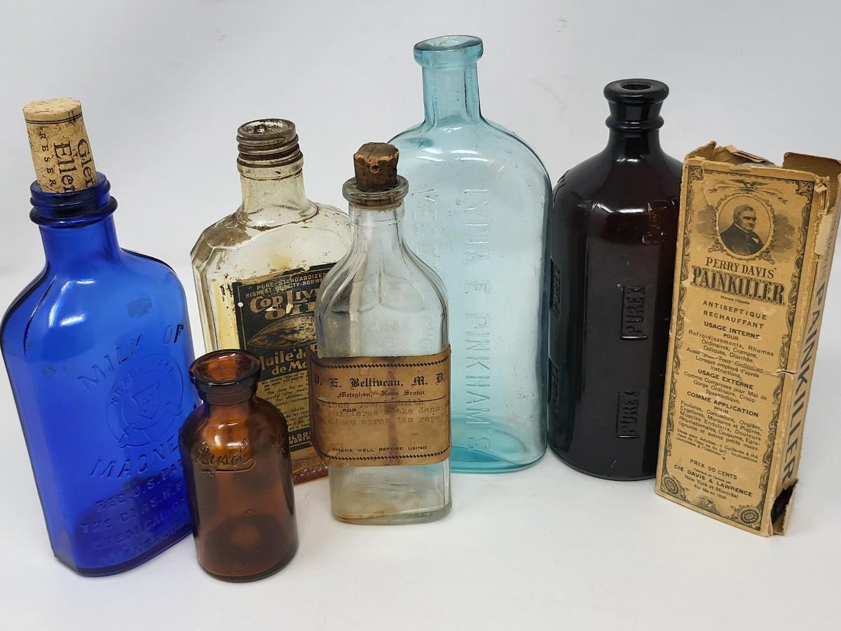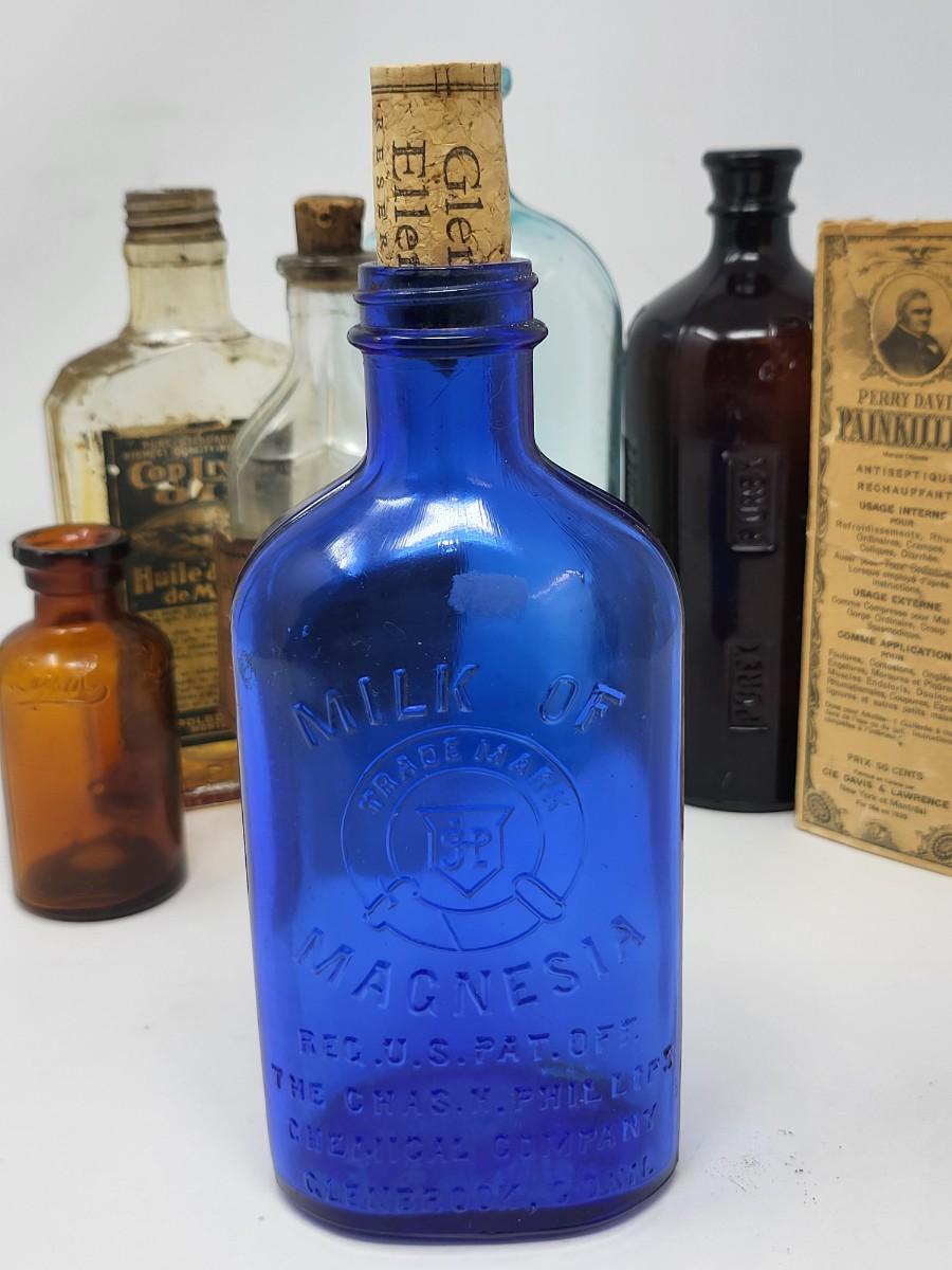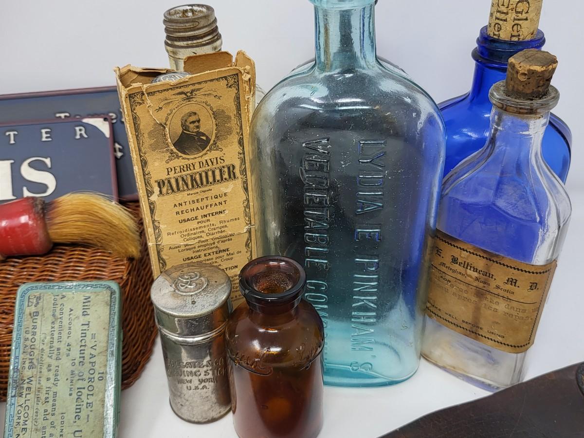 Antique razors, leather straps, tin, collectible glass bottles & more.