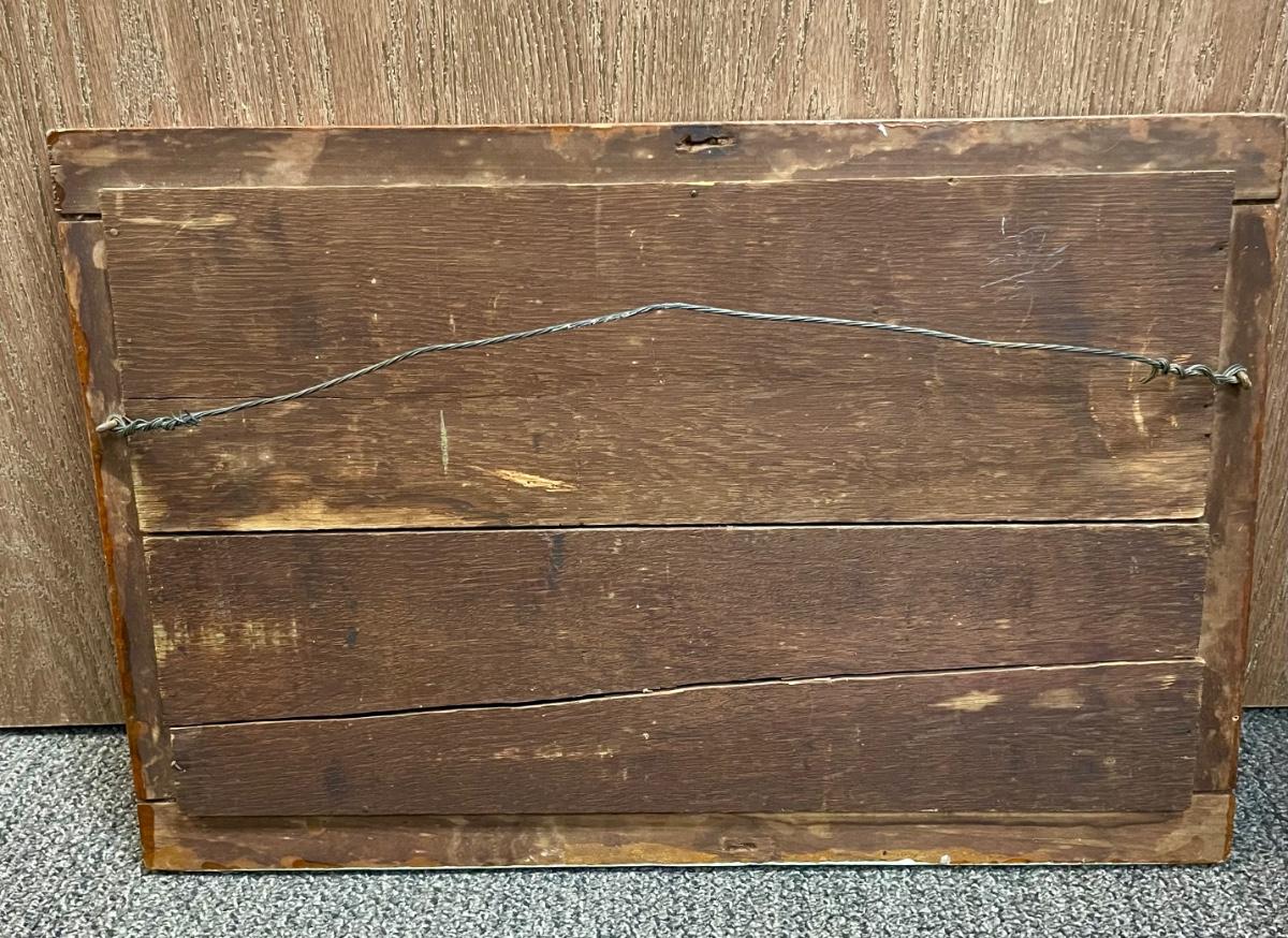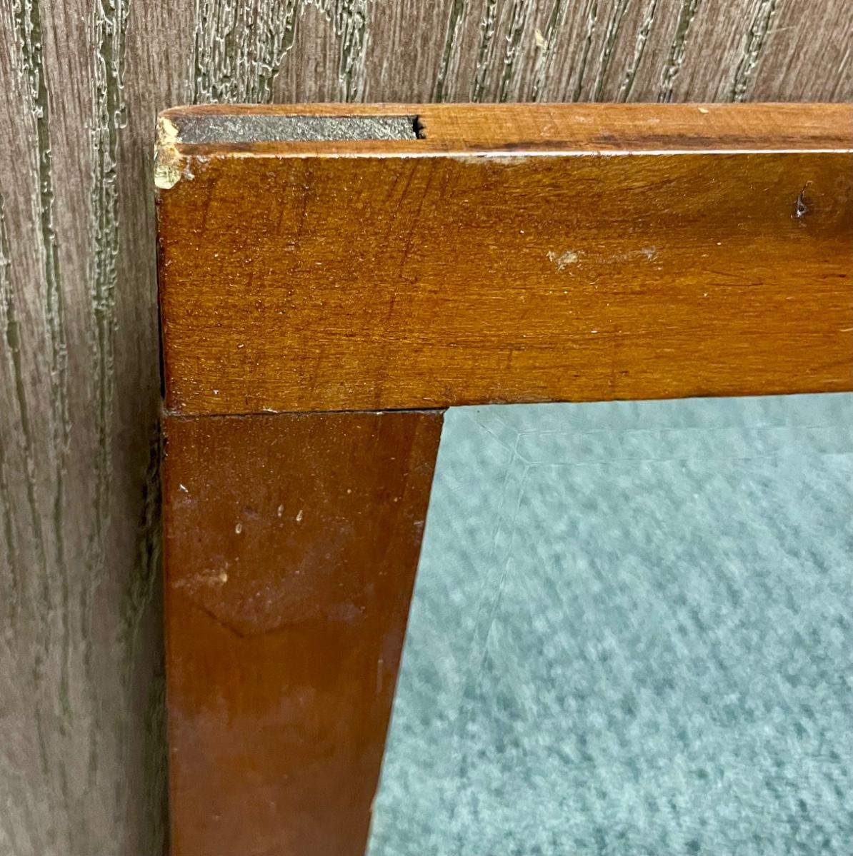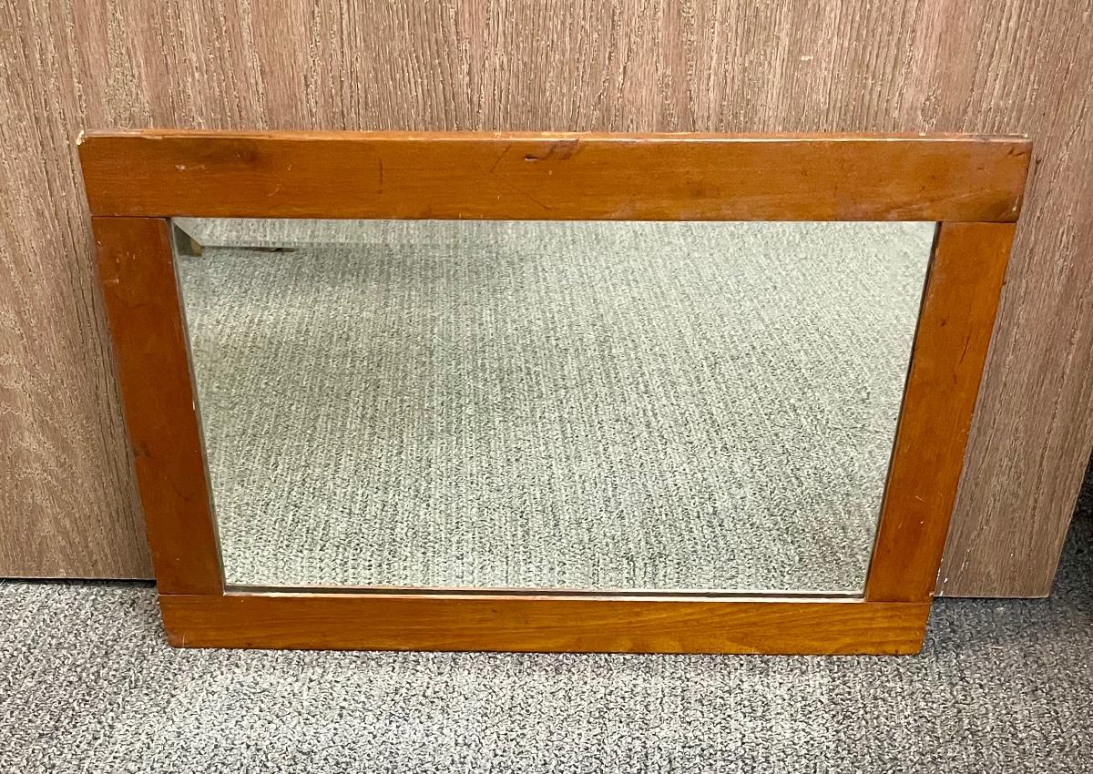 Wood frame, beveled glass. Approx 13” x 21”. Good condition.