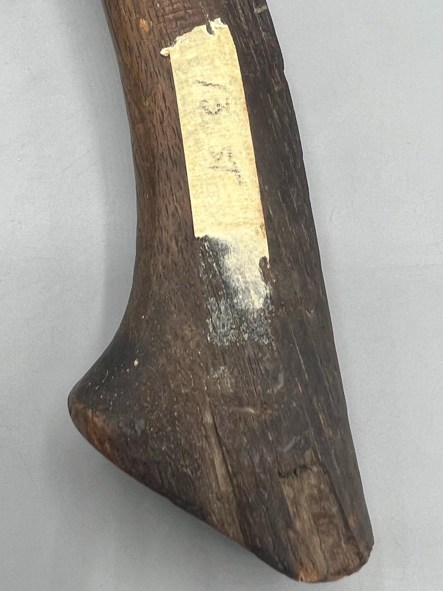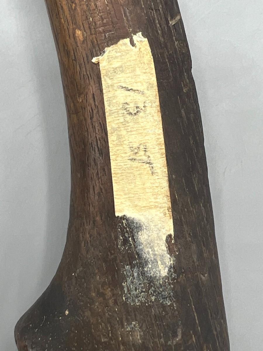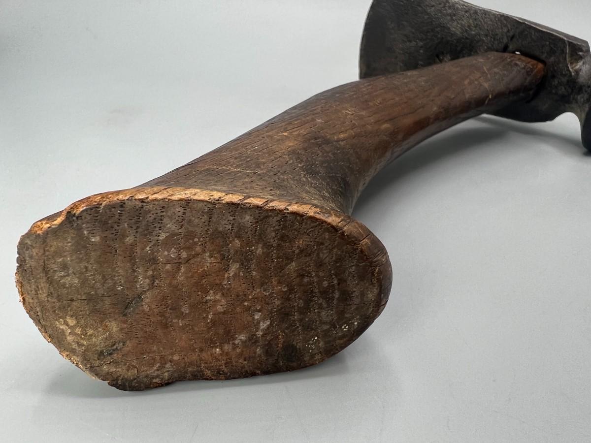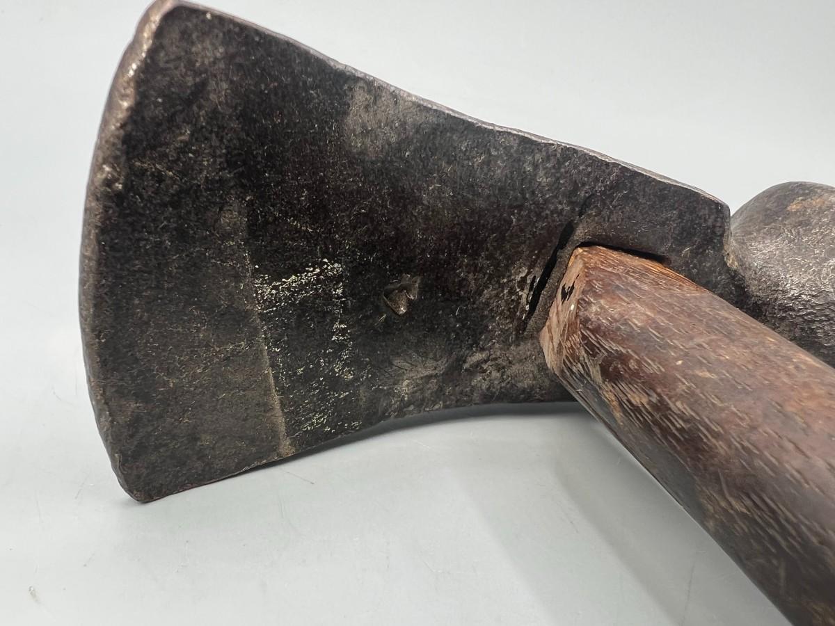 There is antique wear all around the hammer, but there is no significant damage and is in overall good collectible or displayable condition.