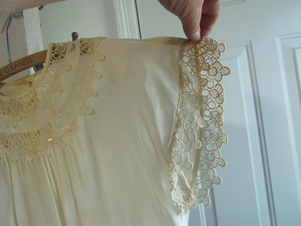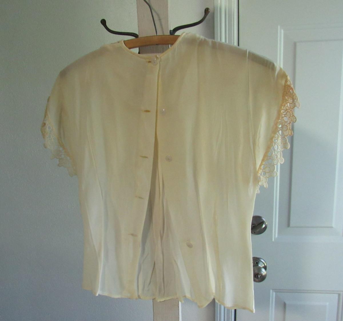 Shoulder pads, button down back. One button missing and a slight fray at one loose button. No makers labels, unknown size. 20" shoulder to hem, about 16-18" waist. Shipping is available at actual shipping cost plus $5.00 handling fee per box for supplies/labor. See our terms for details. All sales are final. Condition notes may not be all inclusive, we may miss some issues as most vintage items are not in mint condition and have some degree of wear, paint loss, etc, but we always try to note obvious damage.