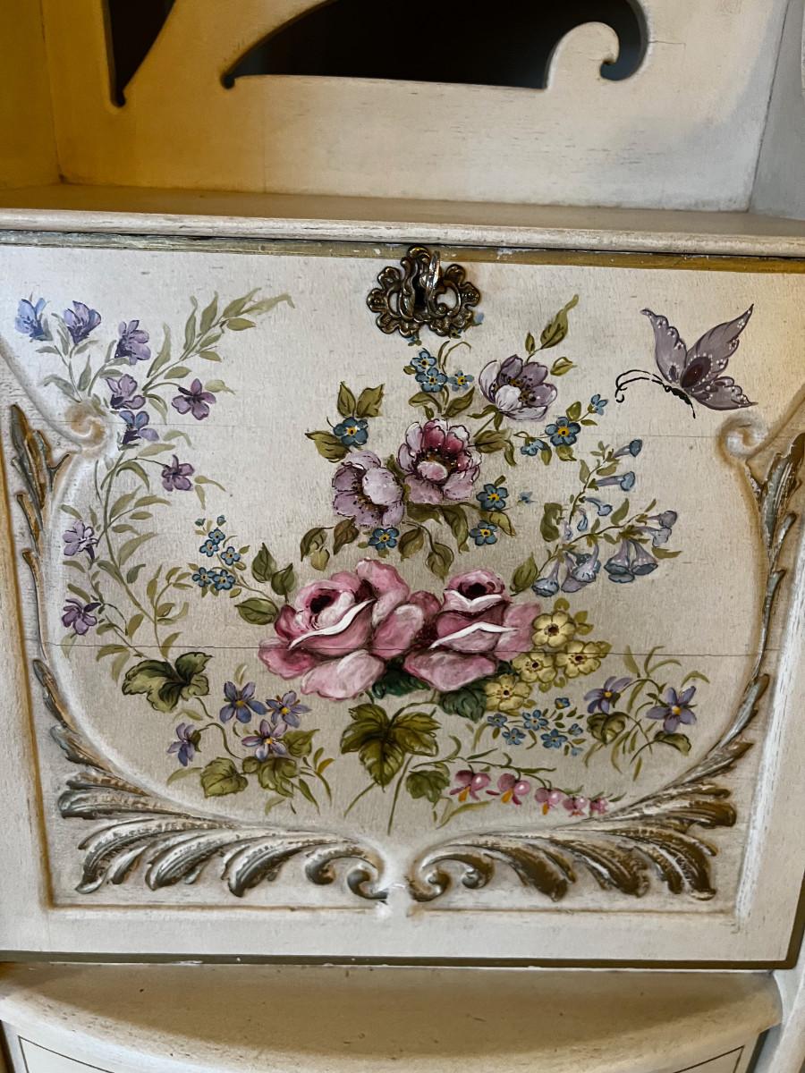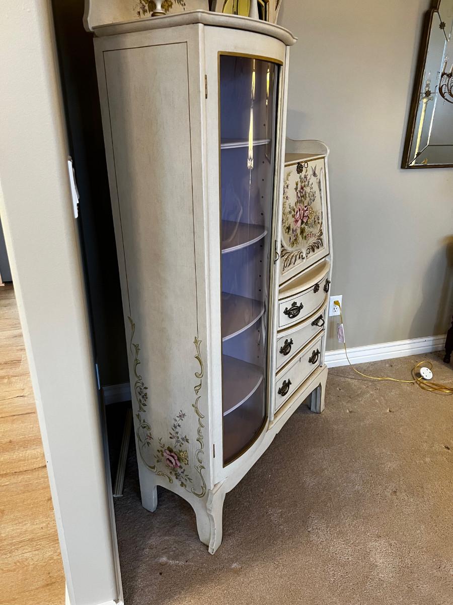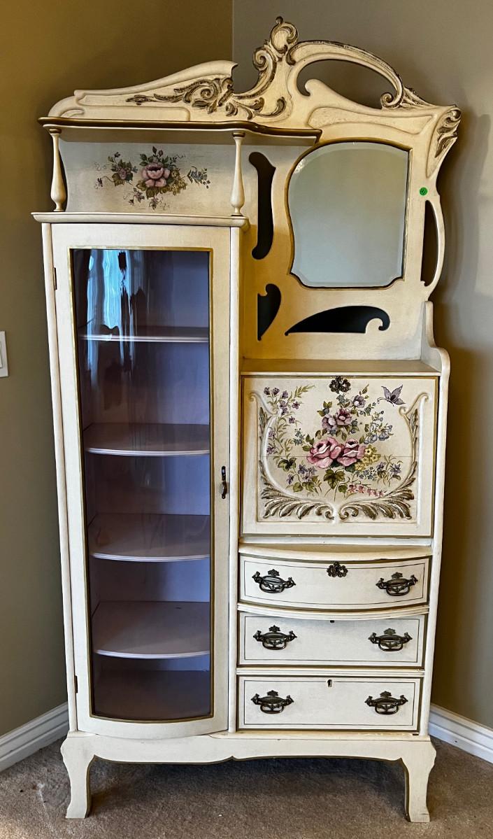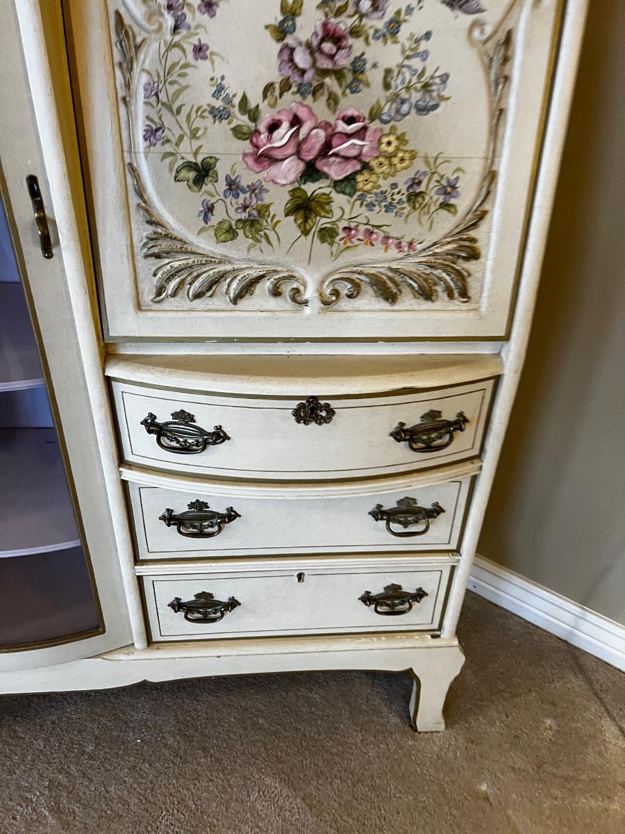 Antique Side by Side Off White Secretary with Flowers Hand Painted