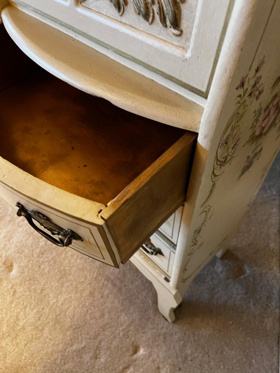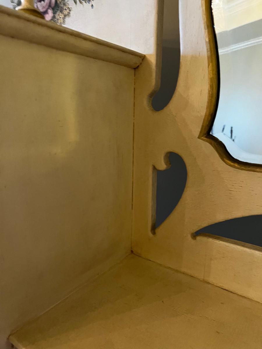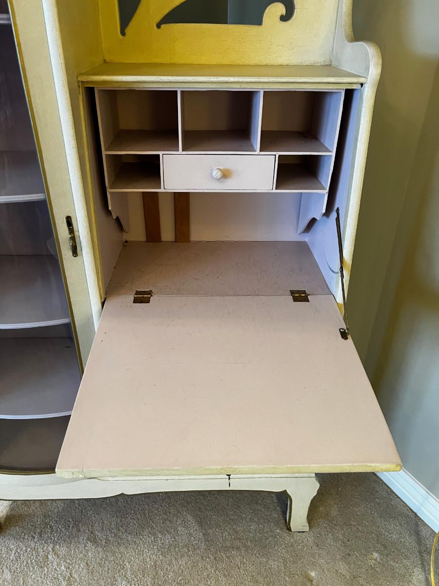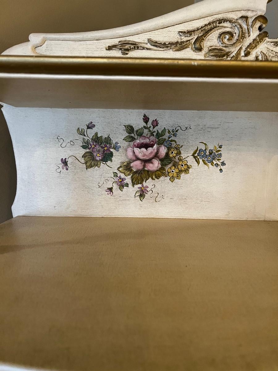 Antique Side by Side Off White Secretary with Flowers Hand Painted