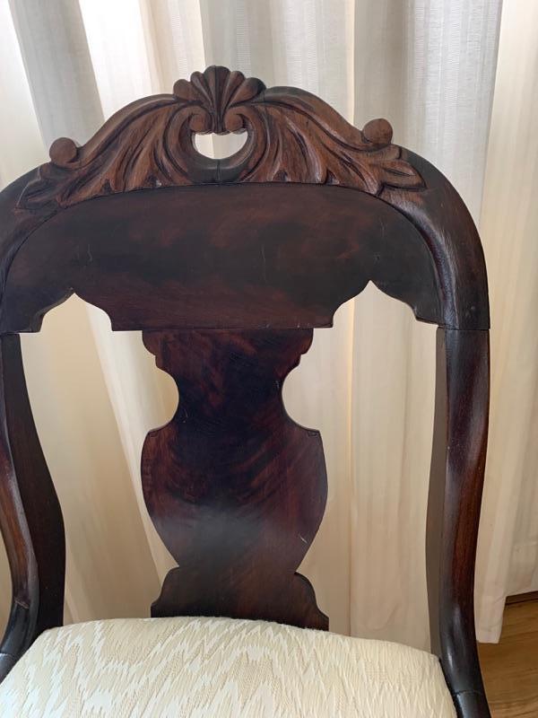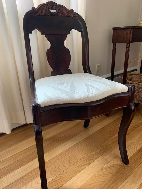 Lovely Victorian/Empire walnut side chair in ivory flame-stitch upholstery, newly re-upholstered .