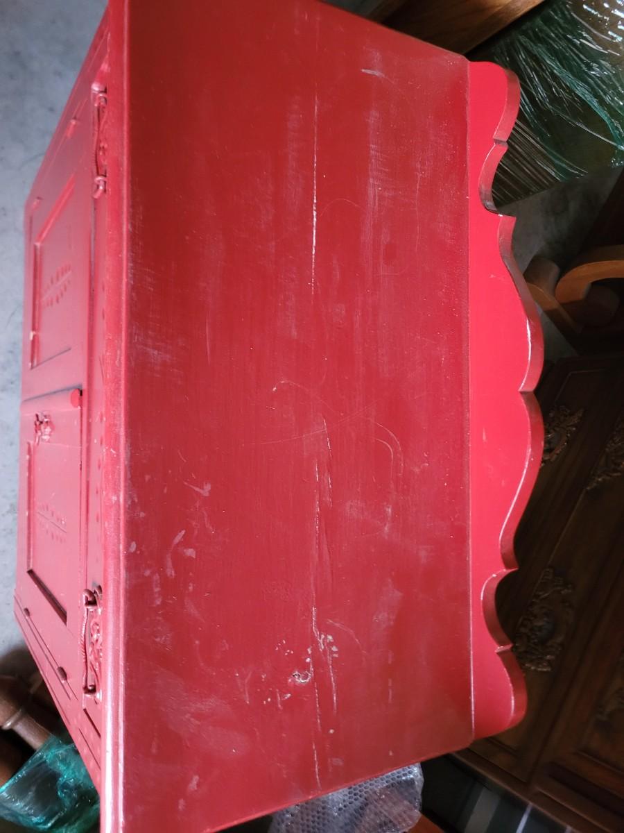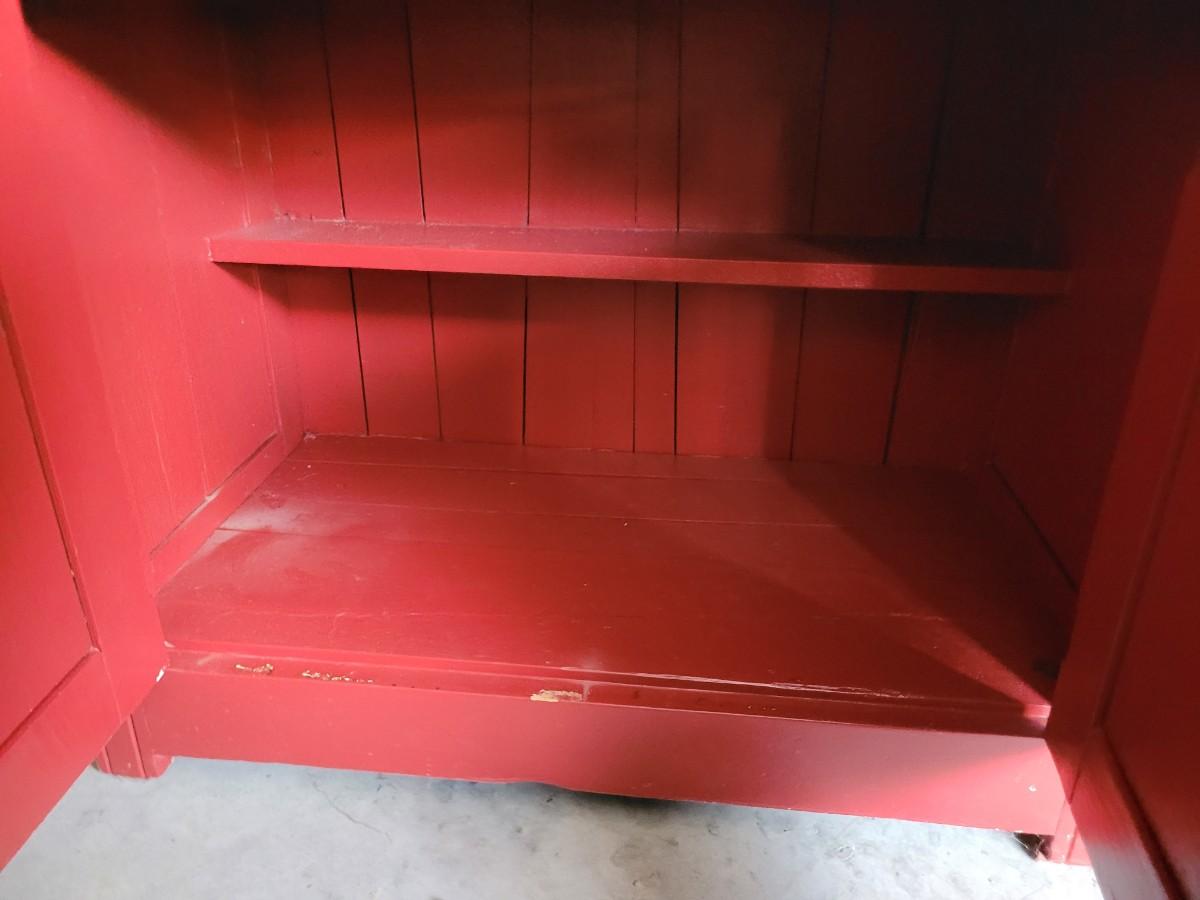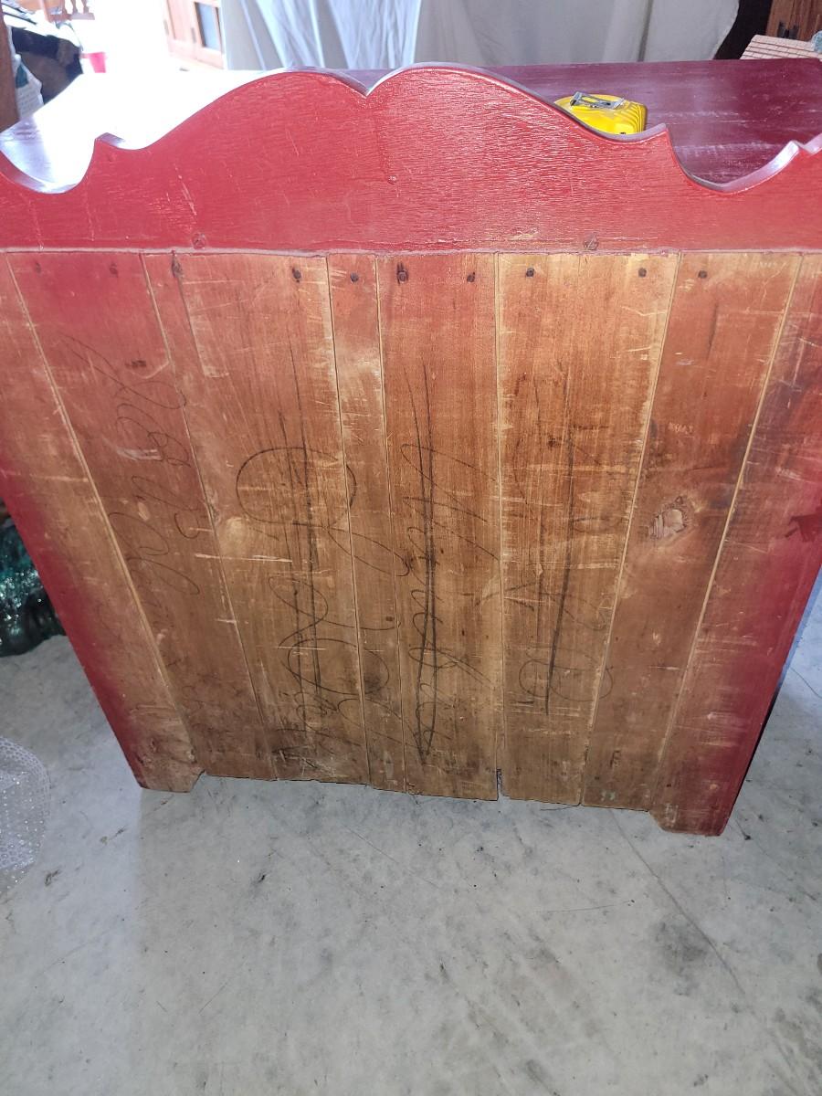 In amazing shape, 28" wide15" deep, 29" tall with interior shelves, top has small scratches on it.