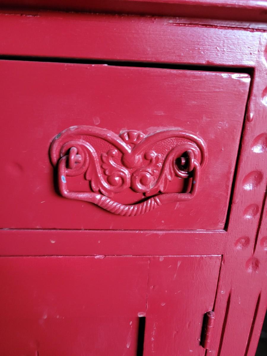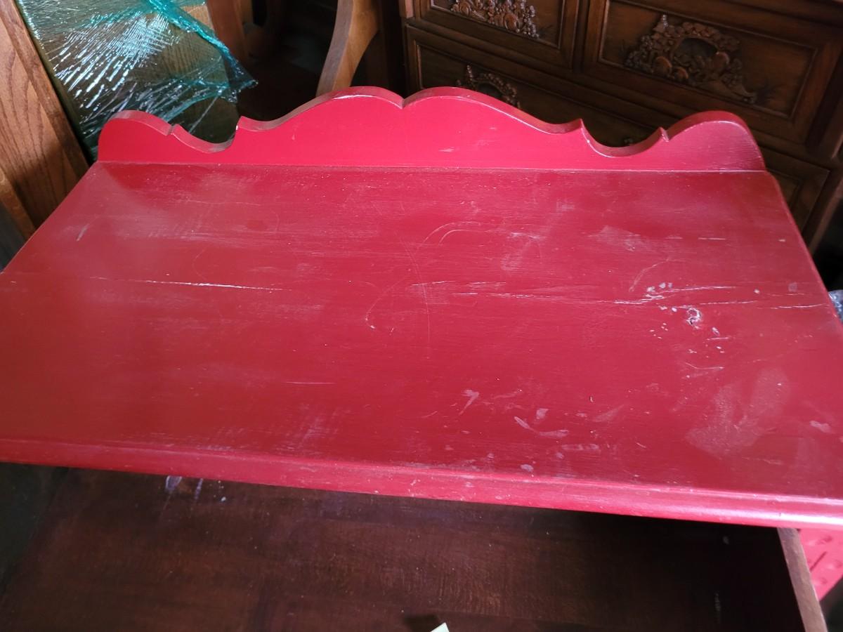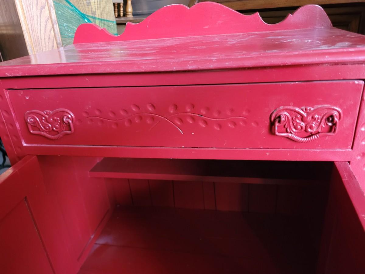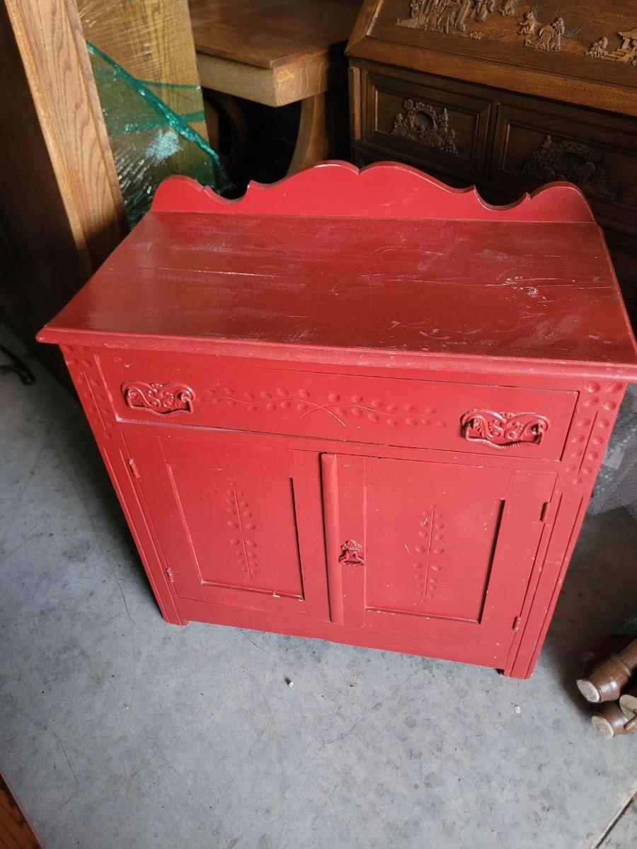 In amazing shape, 28" wide15" deep, 29" tall with interior shelves, top has small scratches on it.