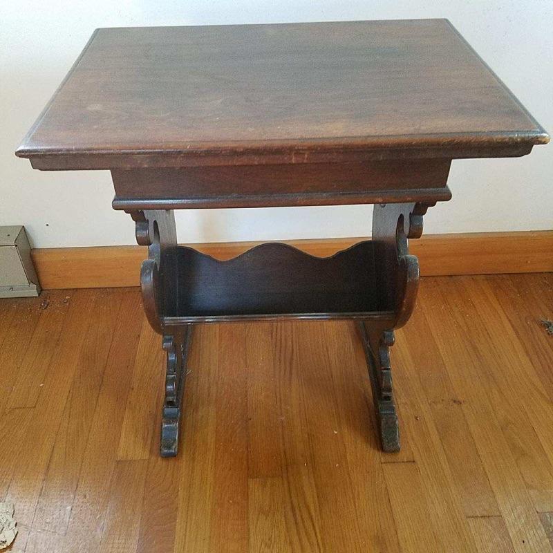 Antique Side Table/Magazine Rack with Floral Carved Design on Sides
