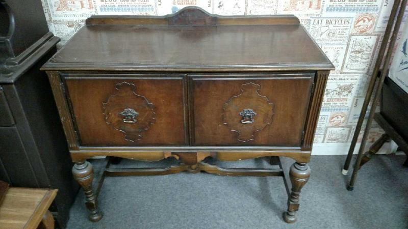 Antique Sideboard Matches Buffet Listed Earlier. In good condition. Has some age wear and scratches on finish. Apron has some laminate missing.