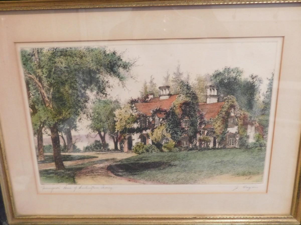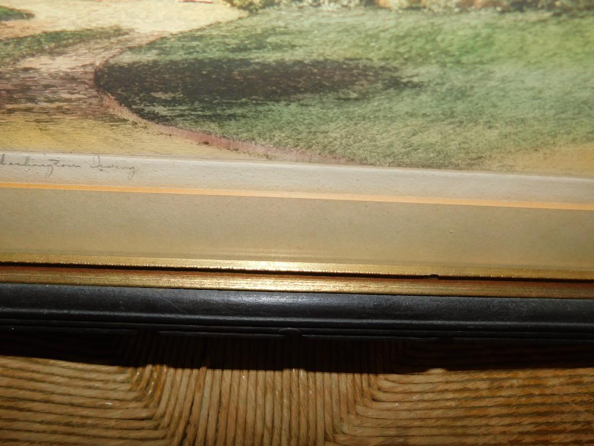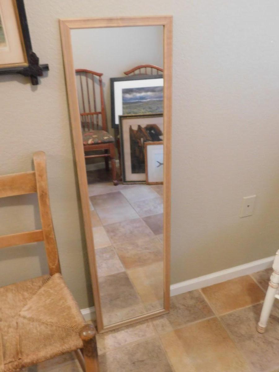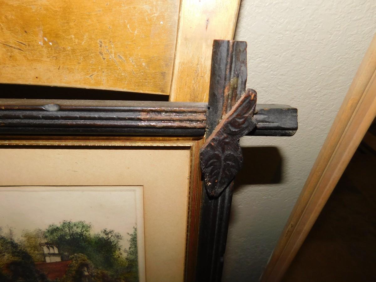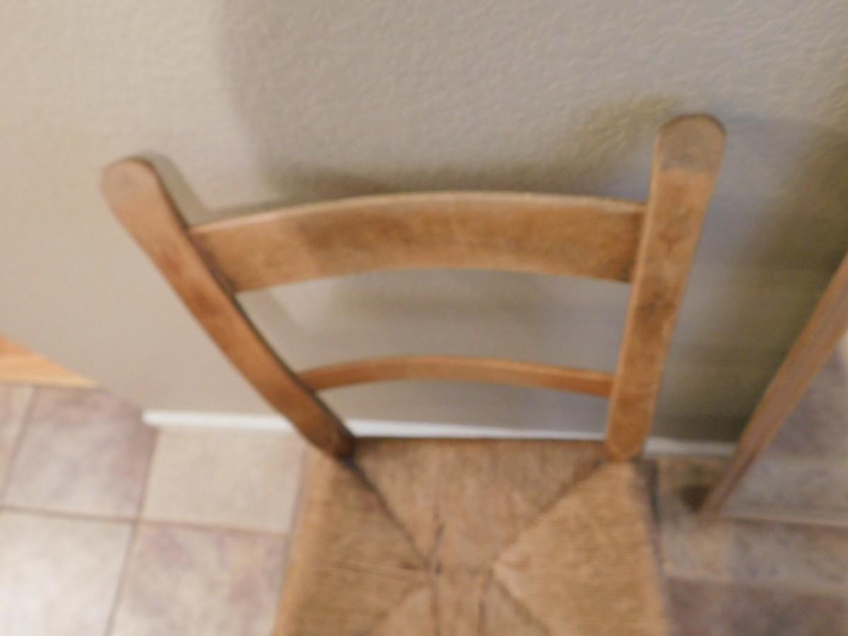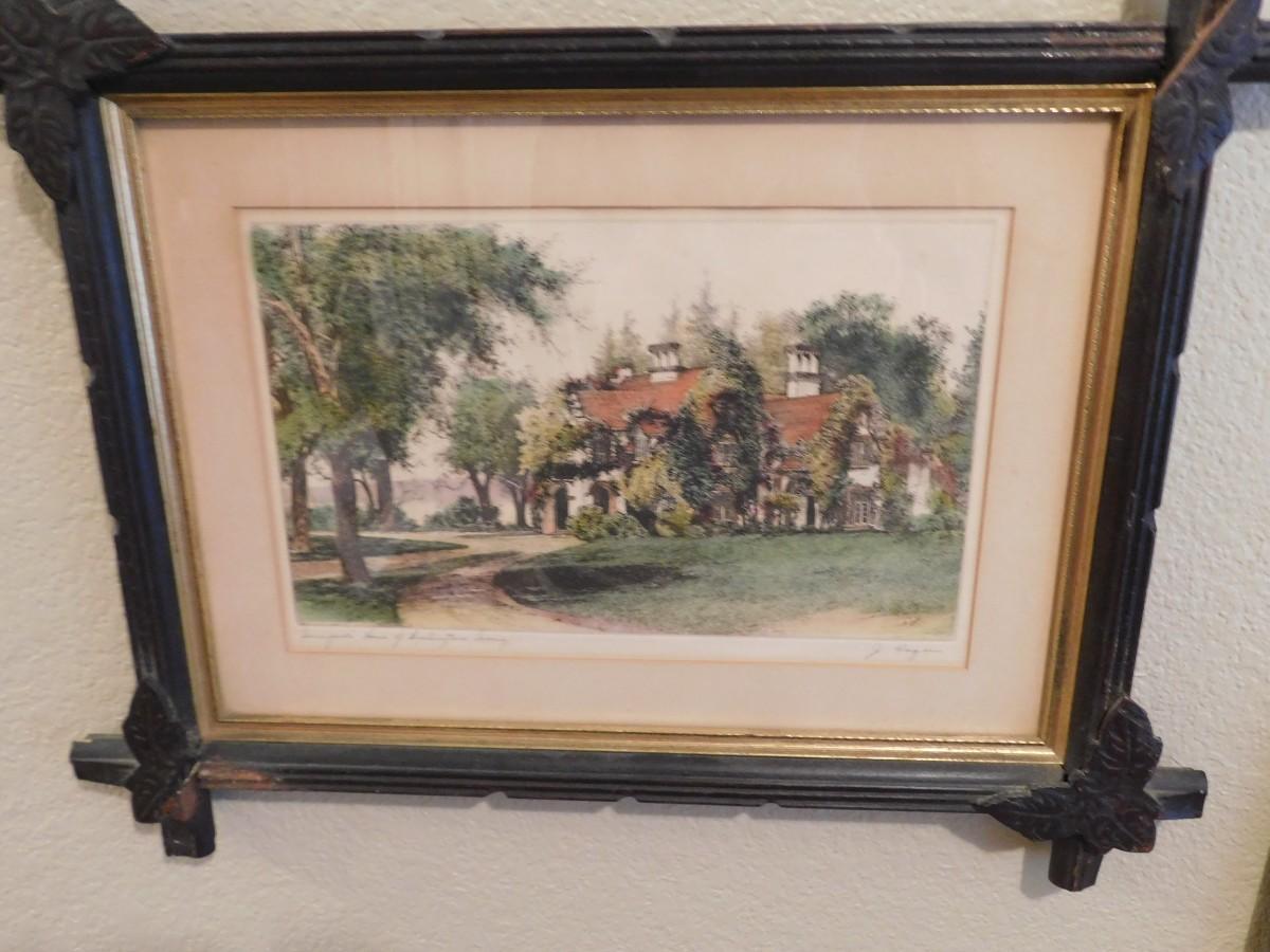 ANTIQUE SIGNED ARTWORK, CHAIR WITH A RUSH SEAT, AND A MIRROR