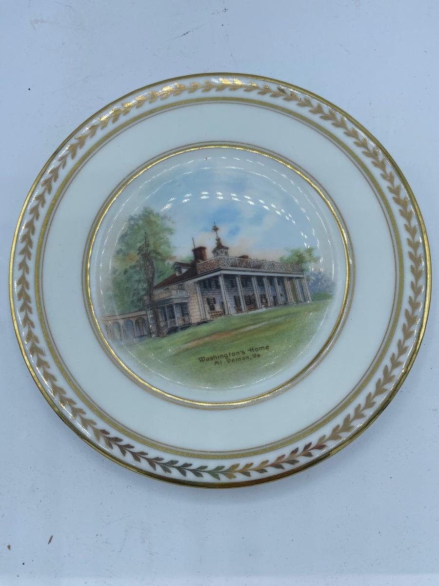 Antique Silesia Gilt Rim Porcelain Souvenir Plate MOUNT VERNON, fabulous detail