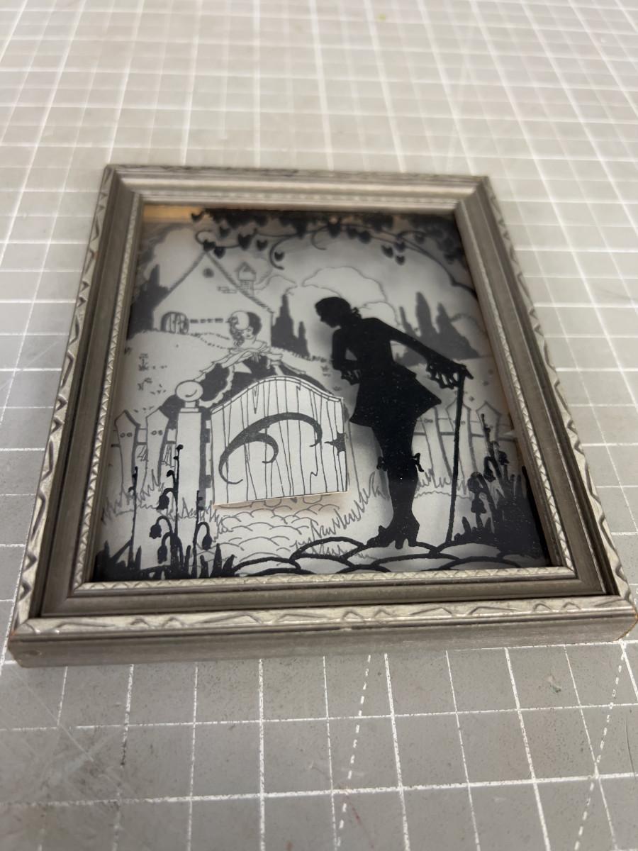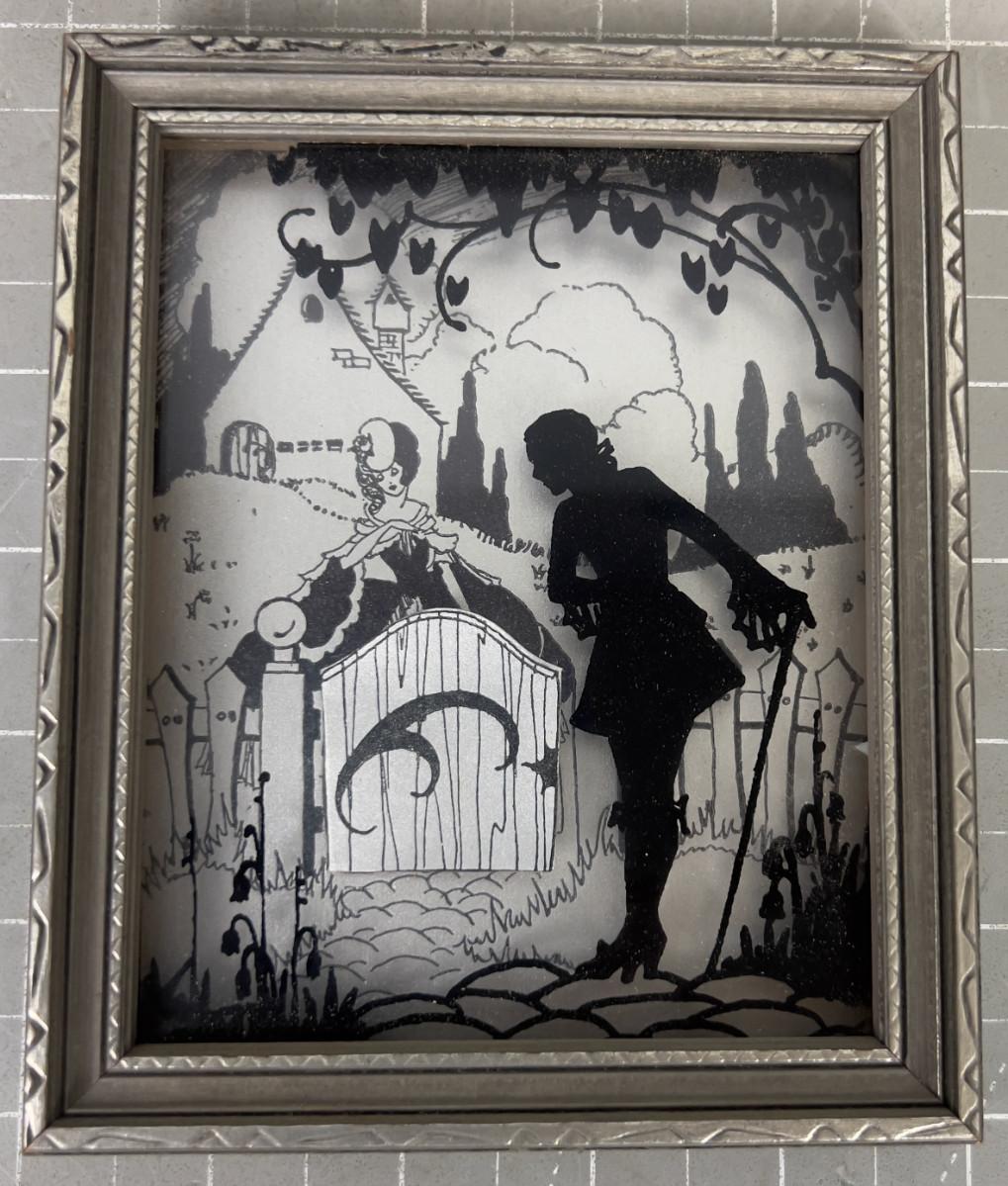 Antique Silhouette Picture Framed Titled "AT THE GATE"
