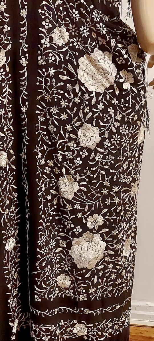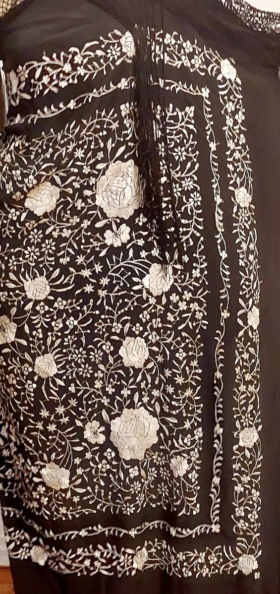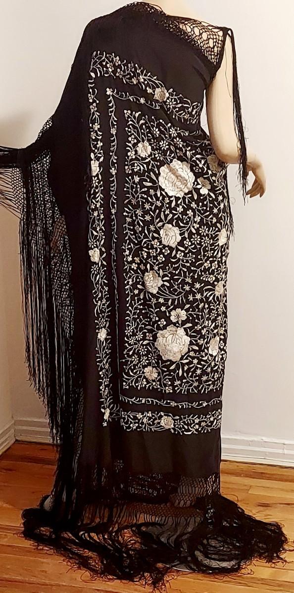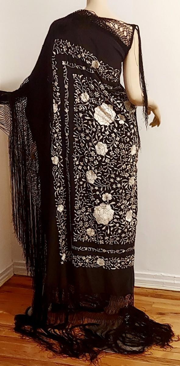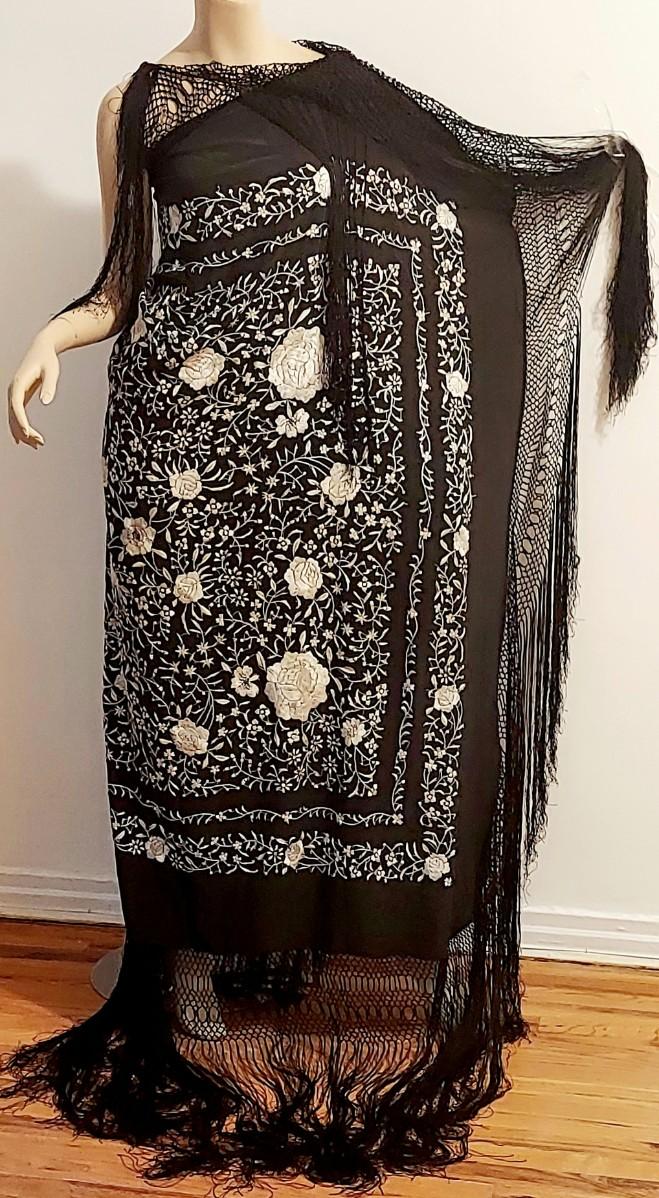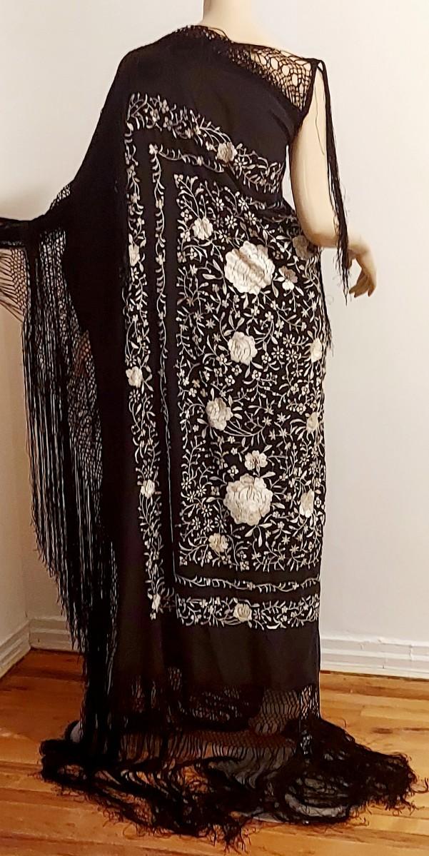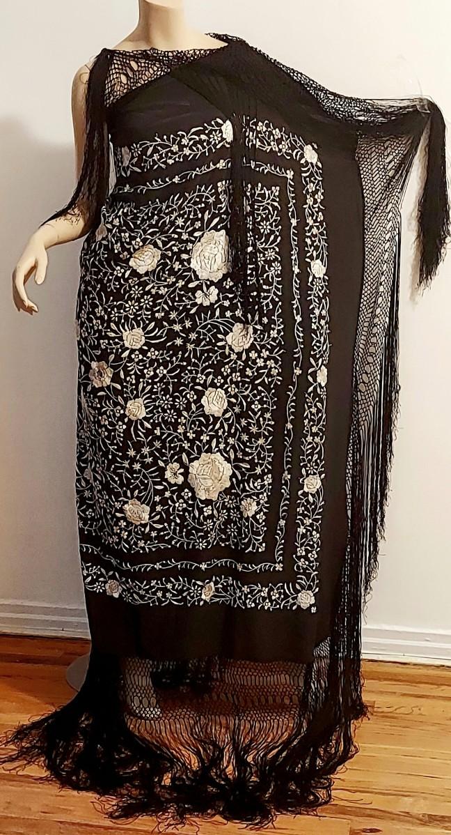 Truly Amazing this was turned into a One shoulder dress holding shoulder with a Brooch. All amazing hand Embroidery Spanish Abtique Manila.