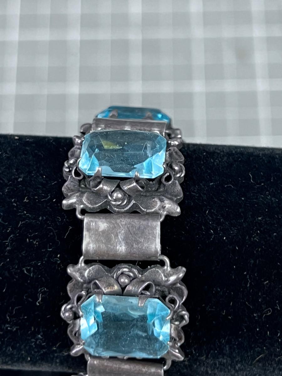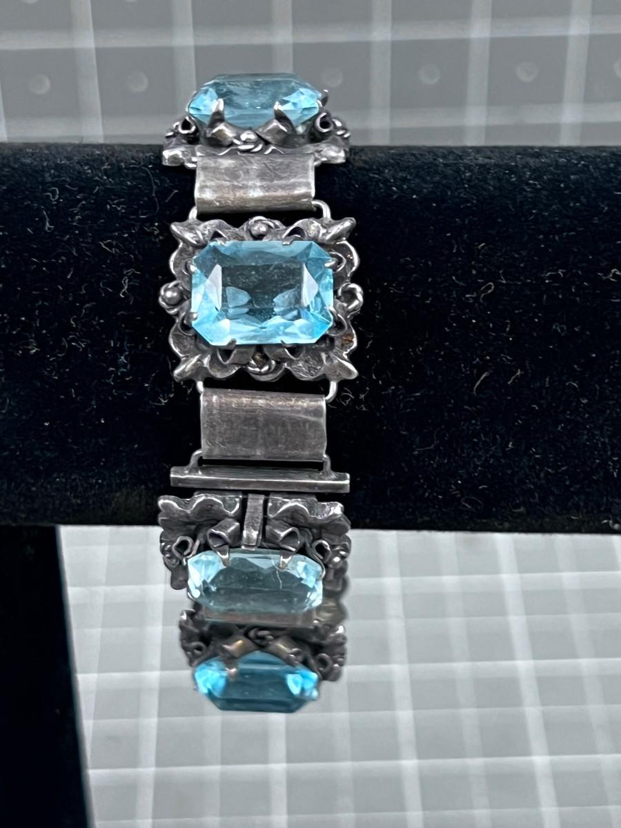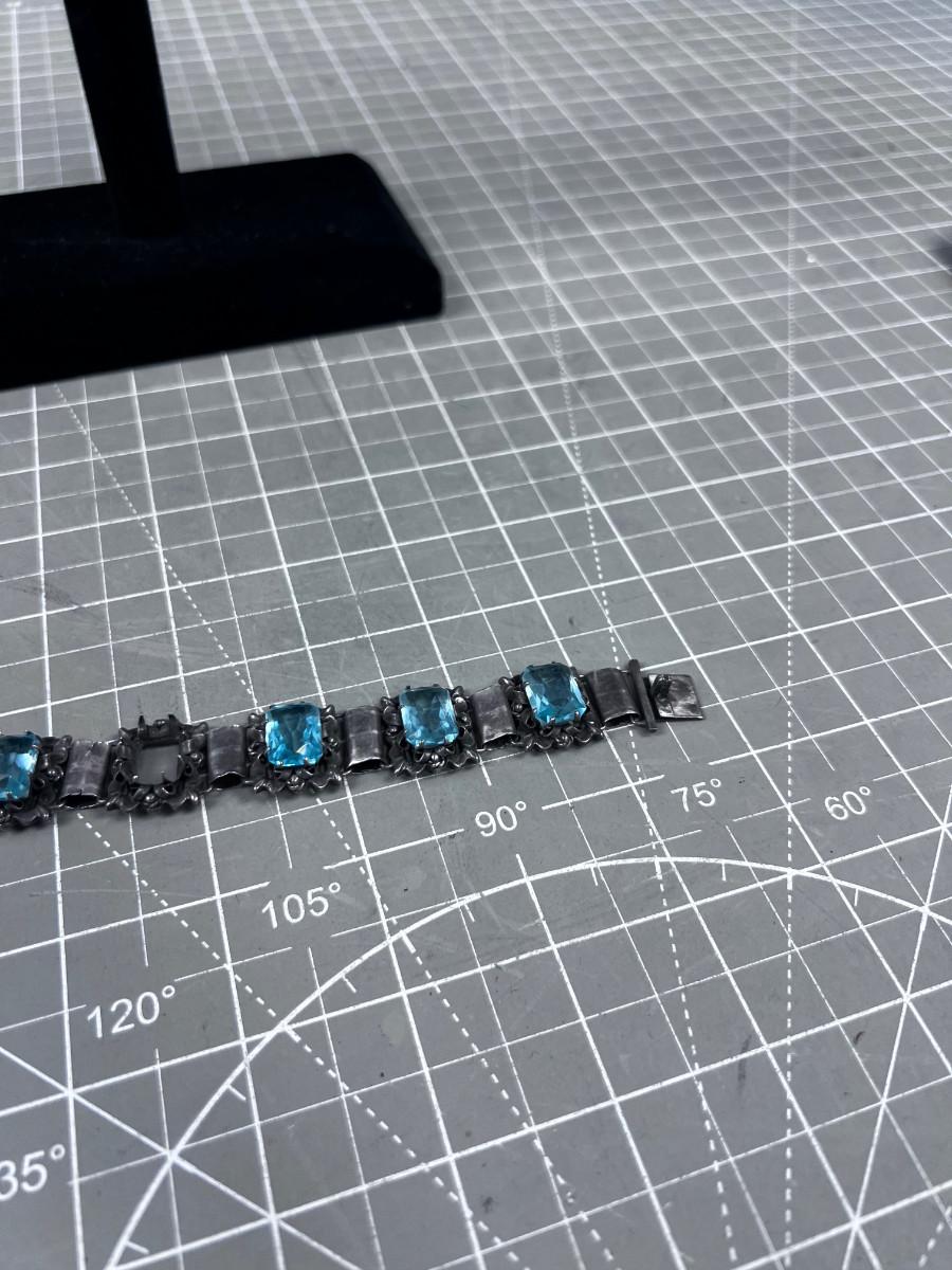 Antique Silver Bracelet with an Aqua Marine Stones.